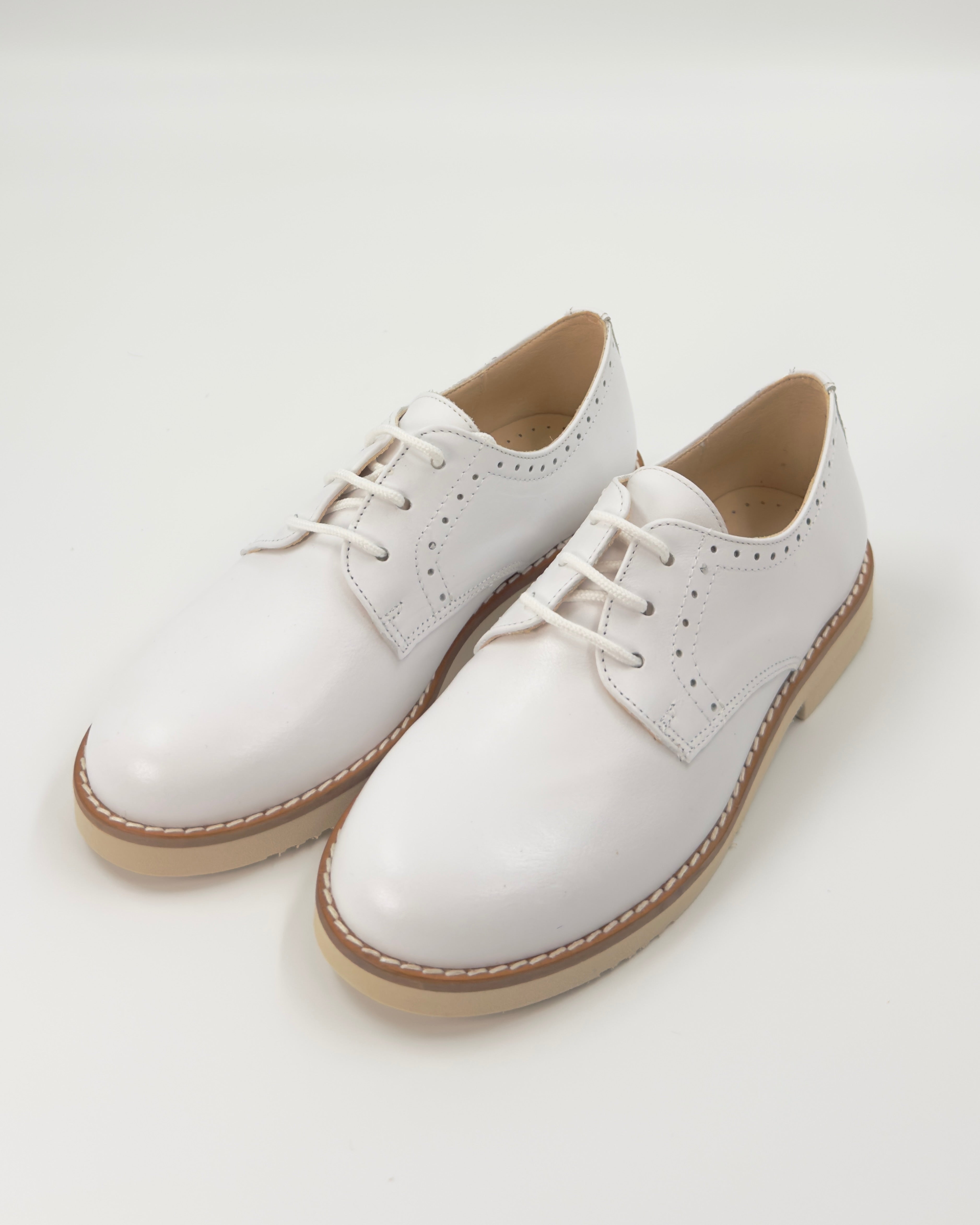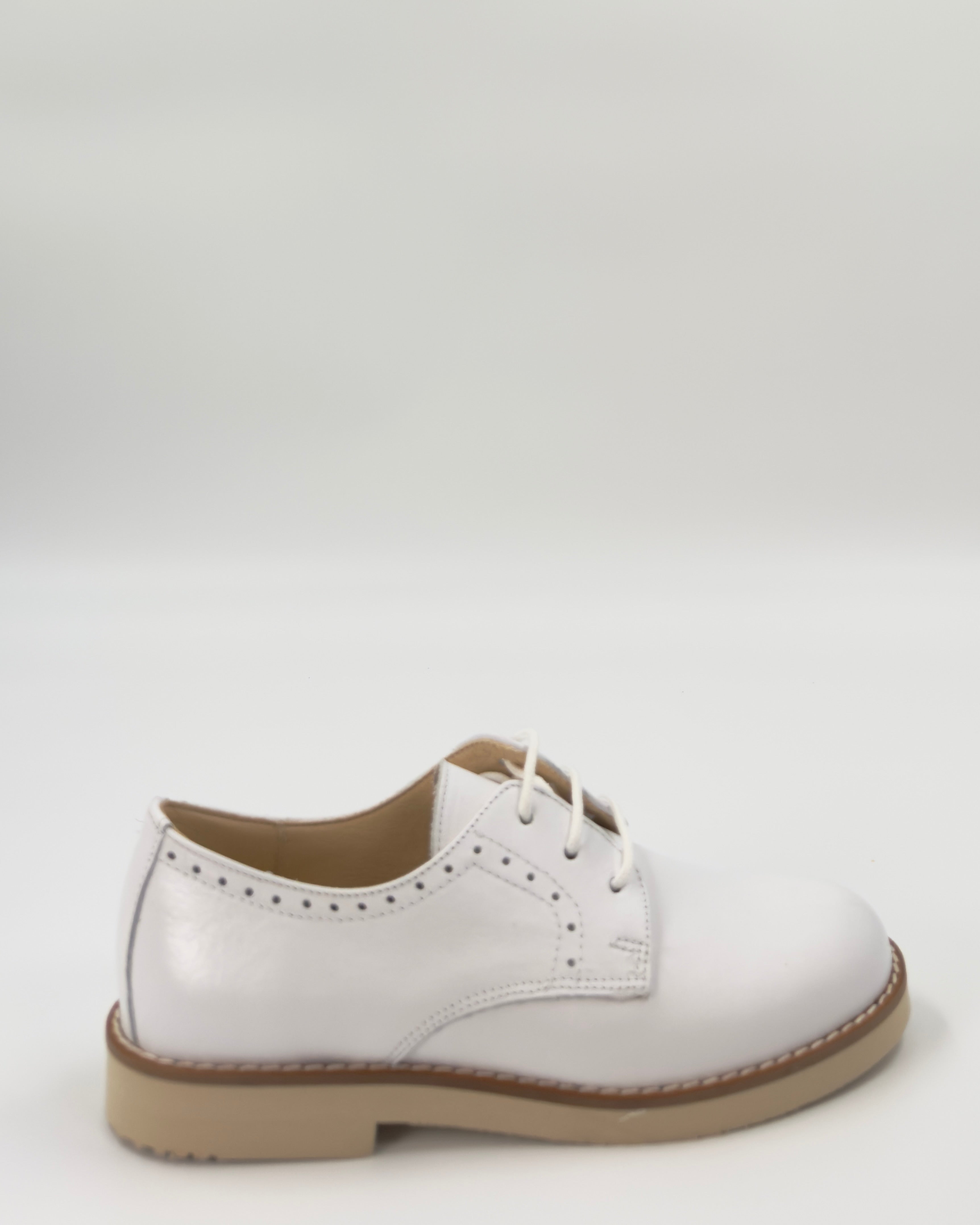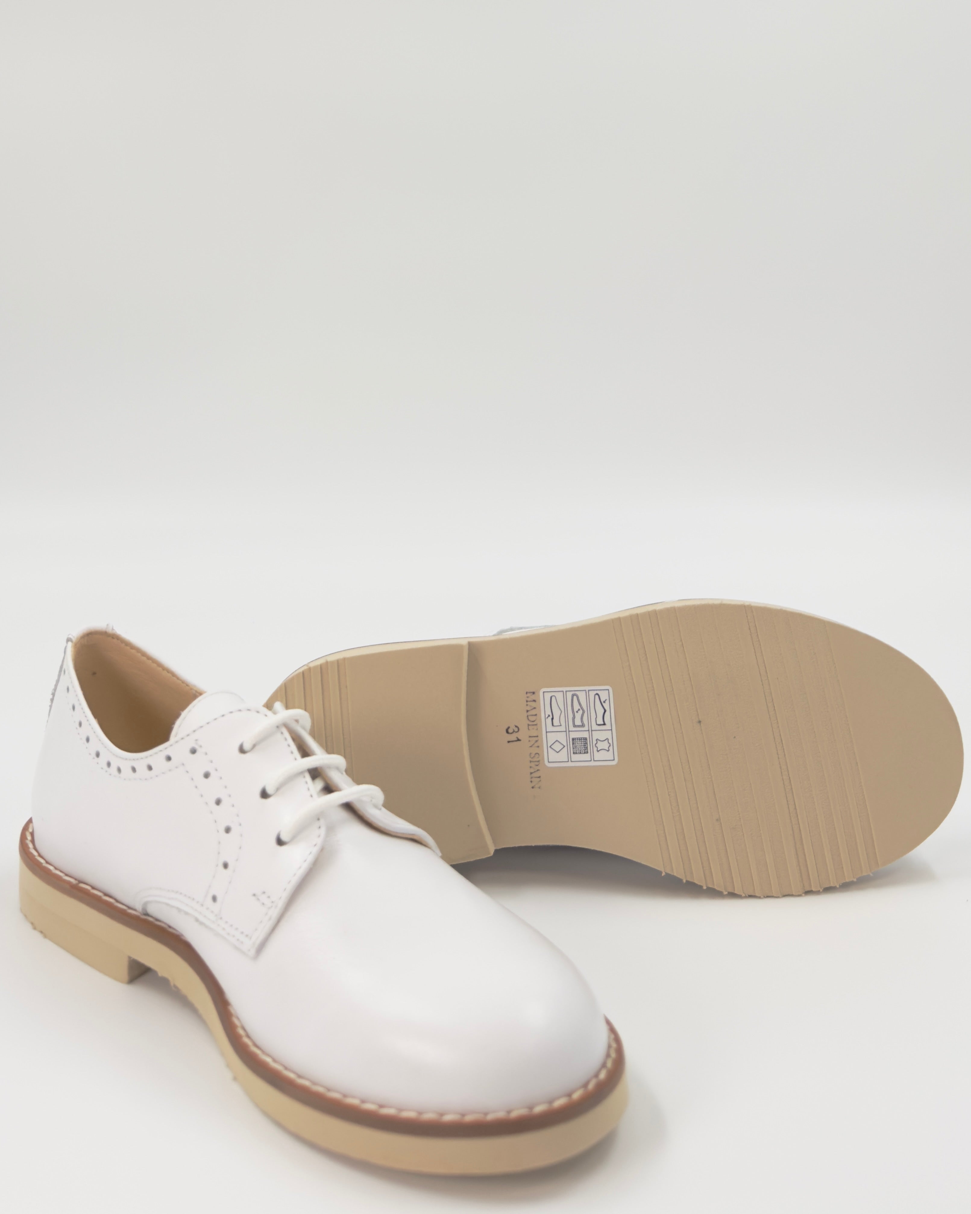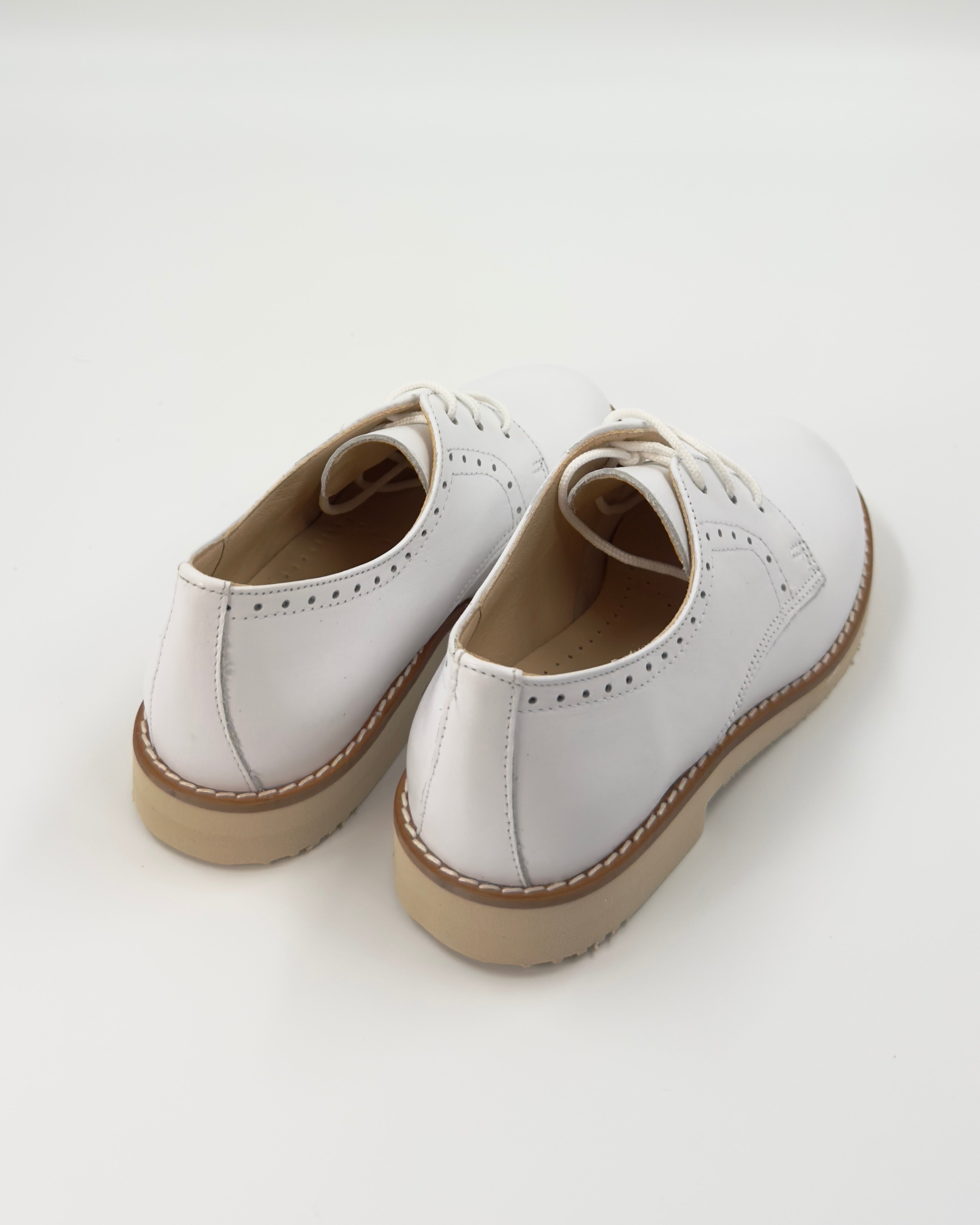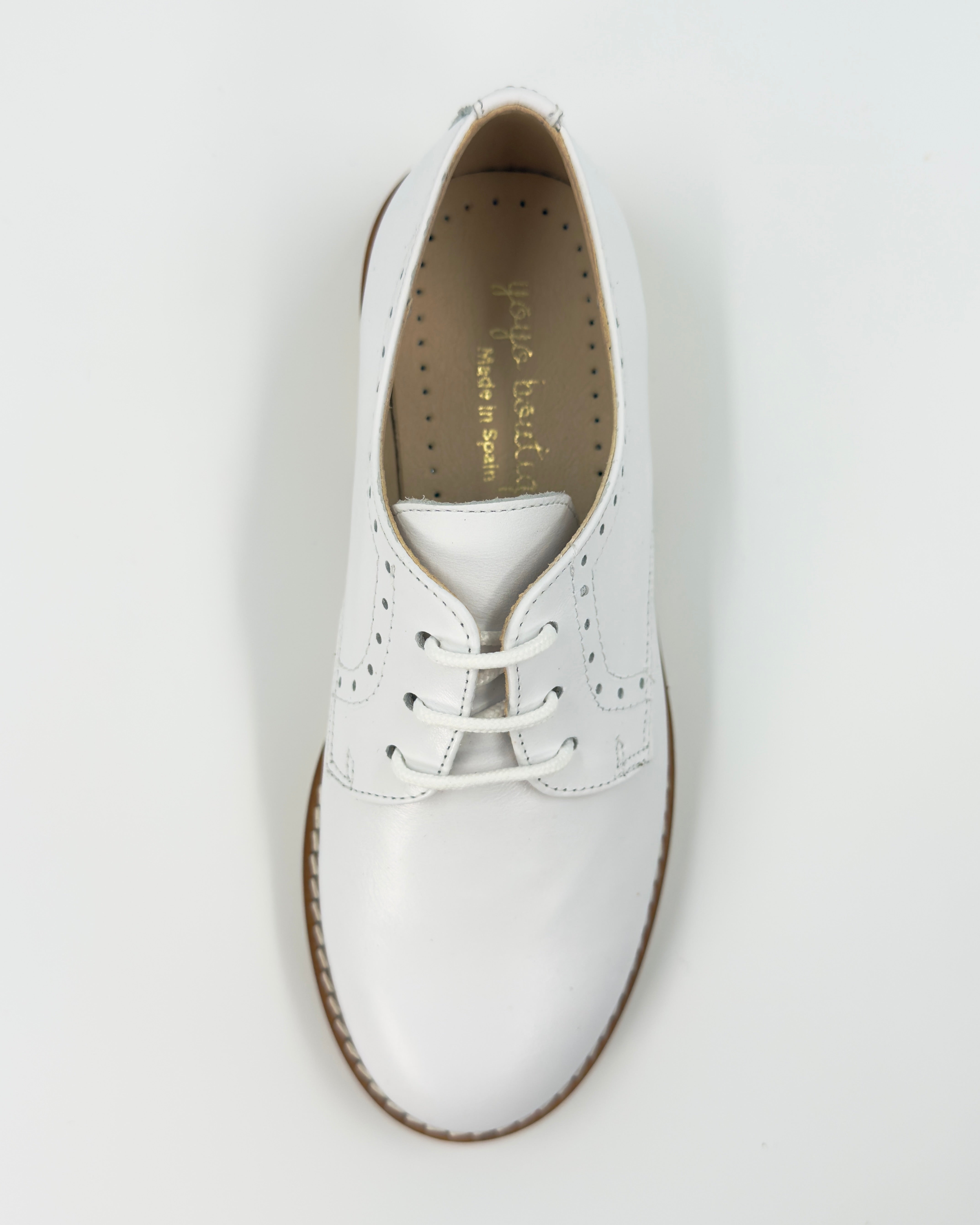 Step into timeless elegance with our White Oxford Communion Shoes for Boys, expertly handcrafted in Spain. Designed with a classic silhouette and crafted from ultra-soft "butter" leather, these shoes offer exceptional comfort for your little gentleman on his special day.