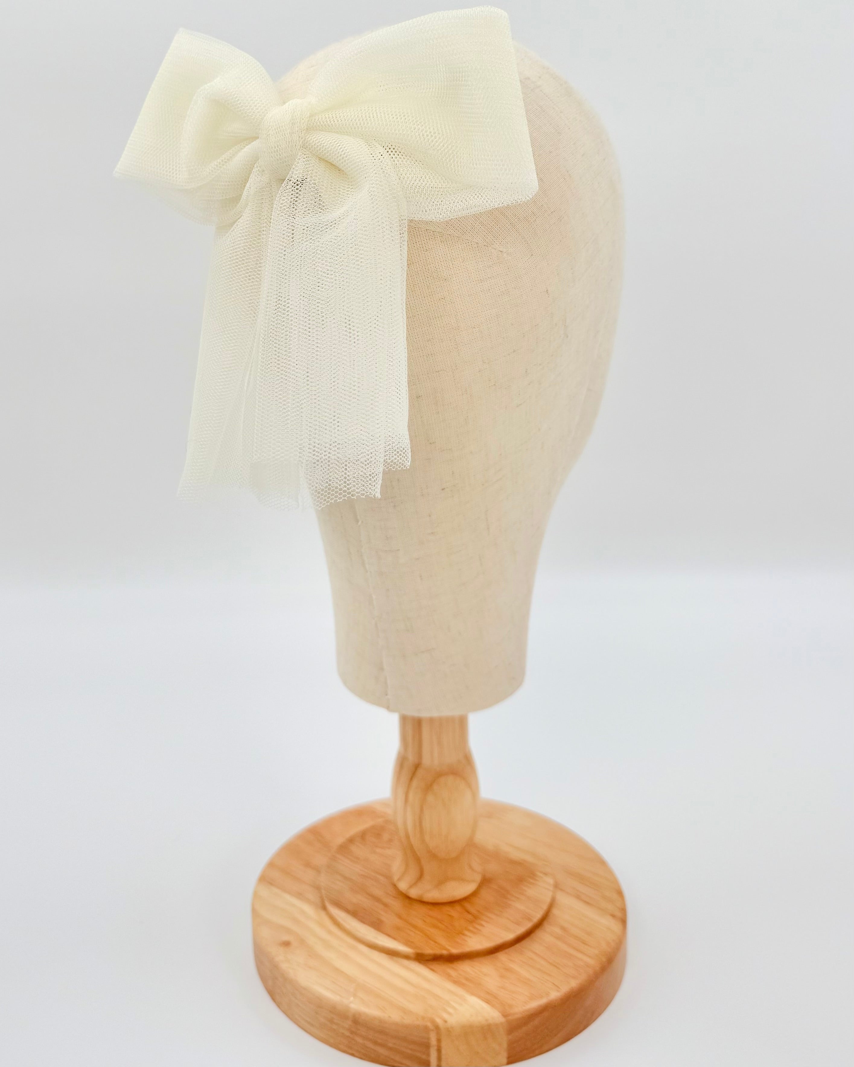 Gorgeous statement headpiece for girls, made with fabric flowers and natural details.