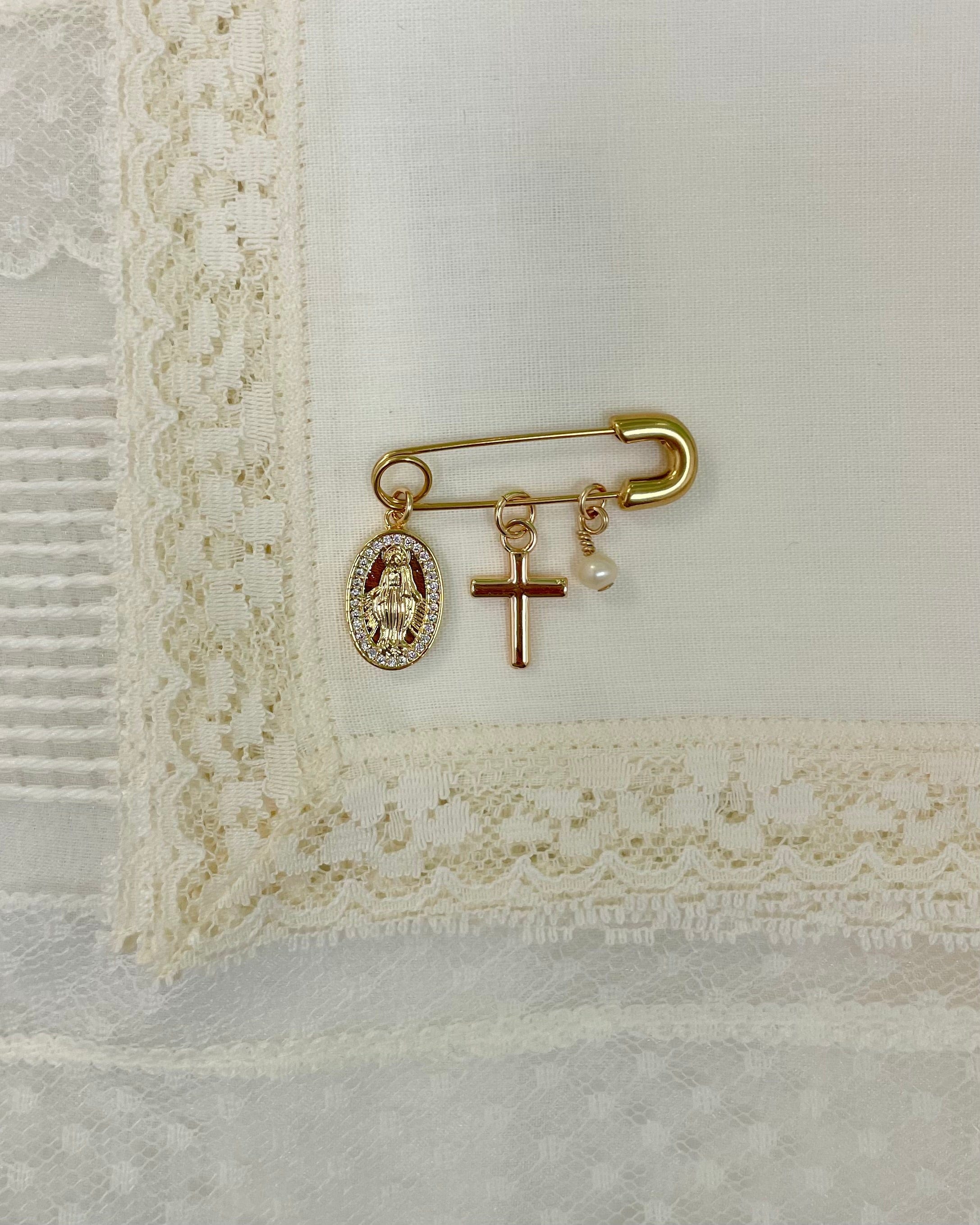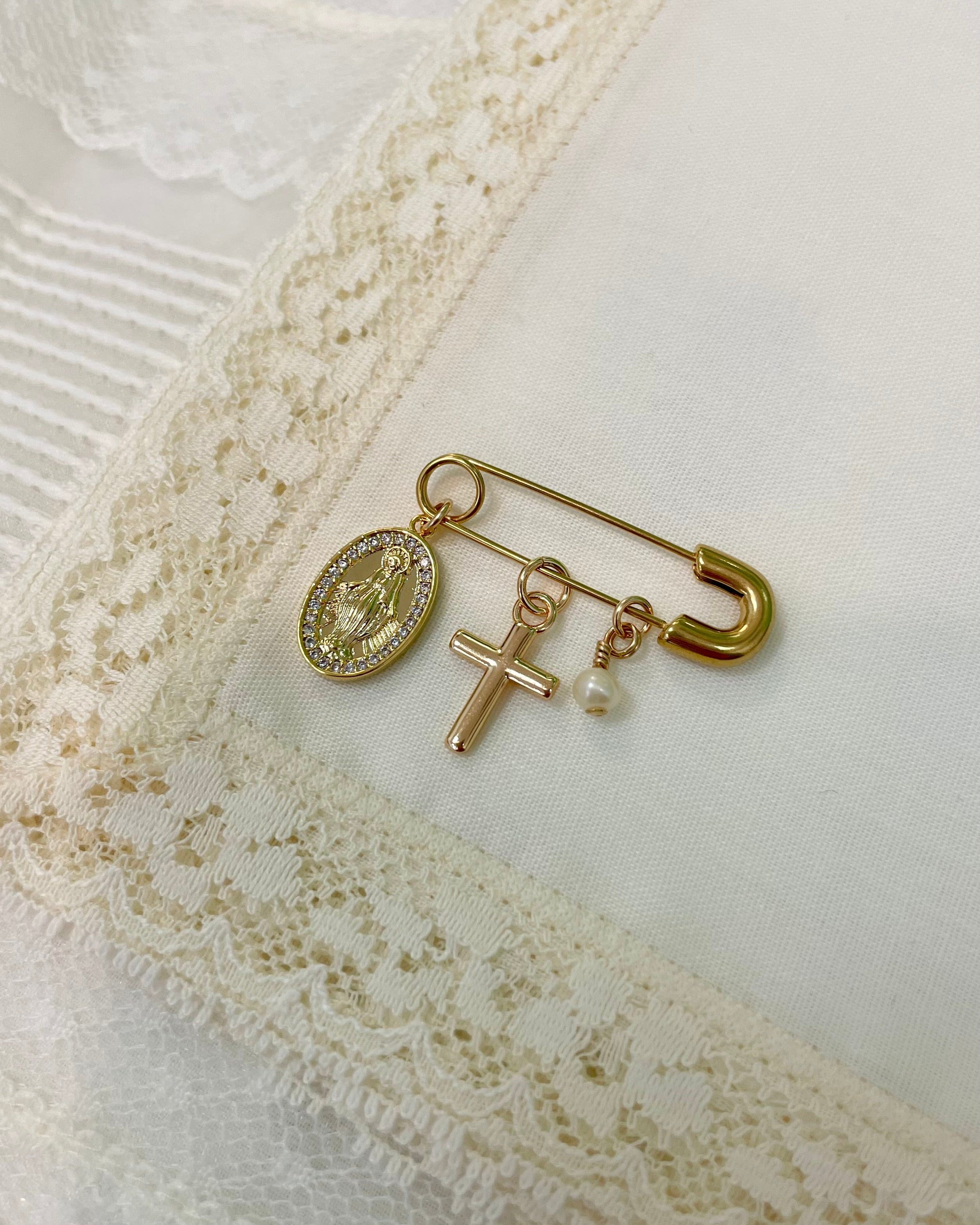 Baby Pin with Virgin of Miracles, Cross & Pearl