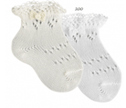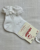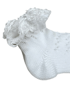 Perle openwork ankle socks with lace edging cuff and bow for baby girl.