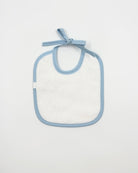 Refined and practical, this square bib is crafted from classic white piqué and finished with a soft blue trim—an elegant accessory for baby boys. The back features absorbent terry towel fabric, making it both beautiful and functional for everyday use.