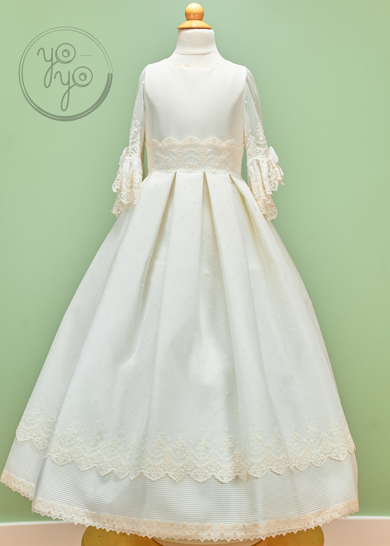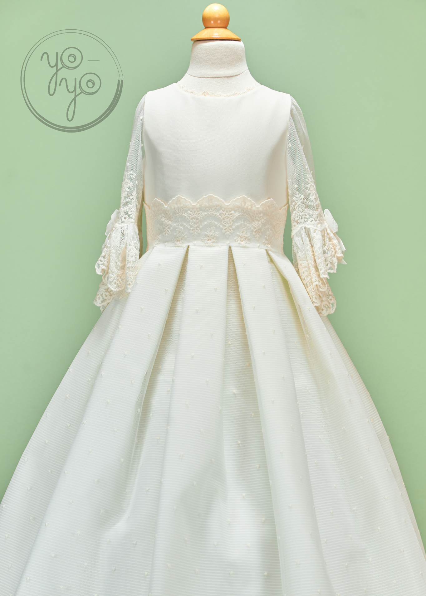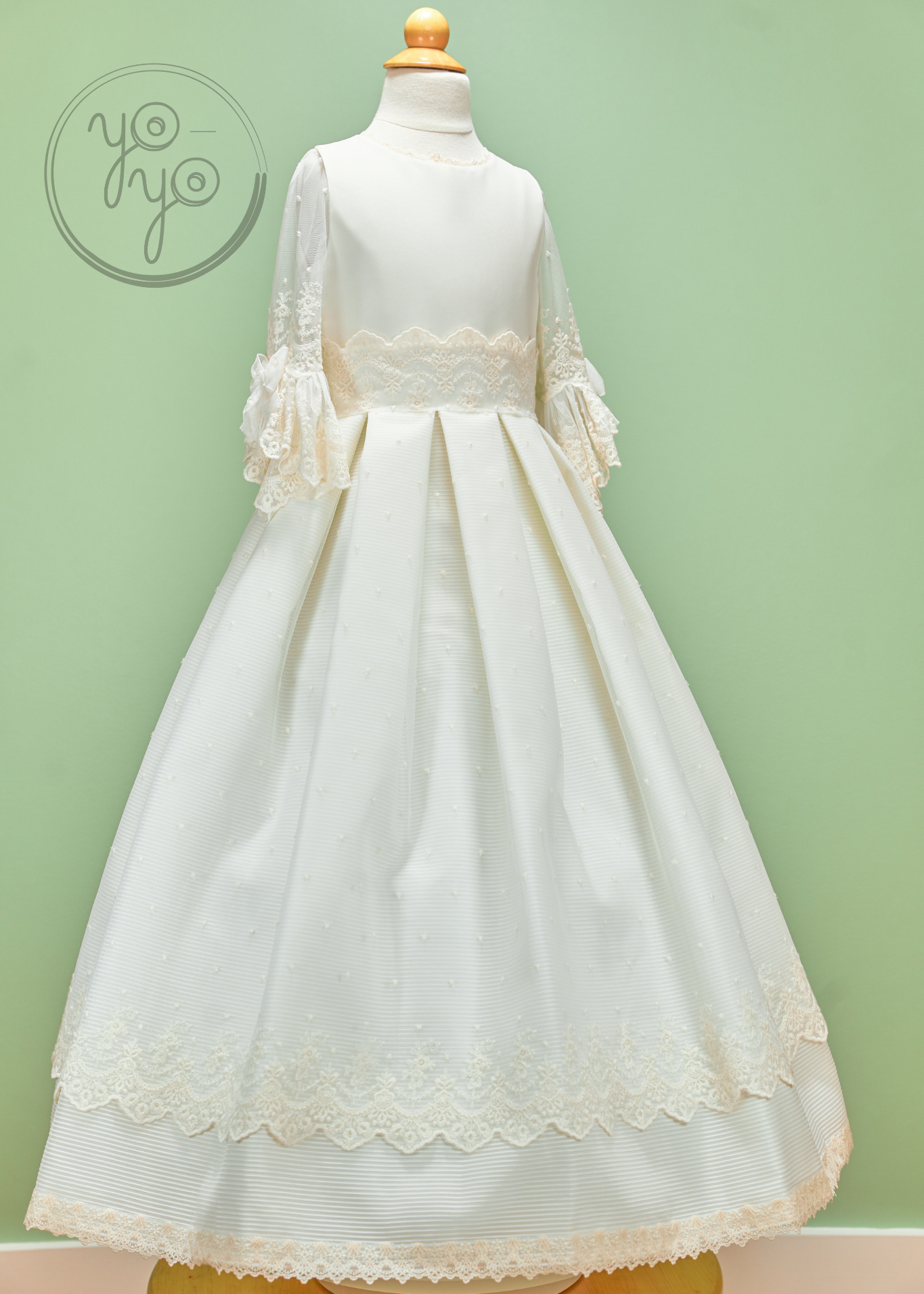 The Giselle First Communion Dress is a one-of-a-kind gown from our Deluxe Collection, designed to be both delicate and unforgettable. Crafted in luxurious off-white embroidered tulle, it combines boho style with exquisite craftsmanship.
