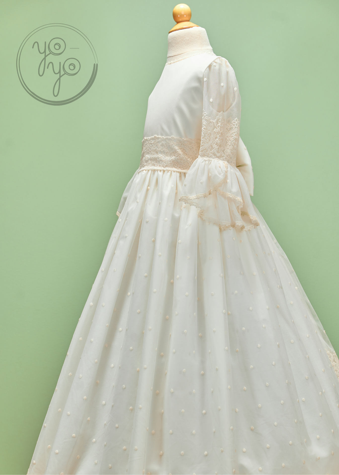 Manon is the perfect choice for girls who dream of a Communion dress that blends bohemian charm with traditional elegance.