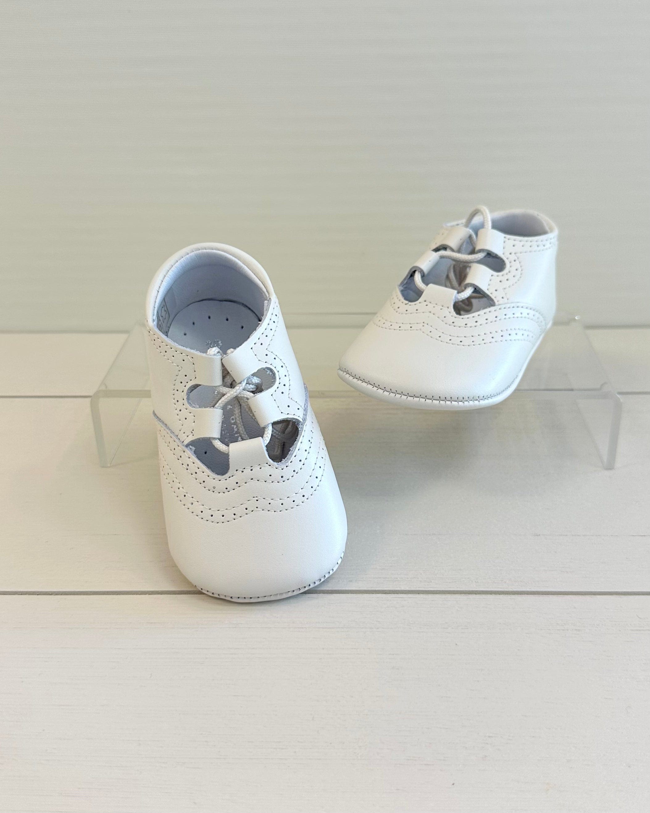 Our English Pre-Walker Shoe in Off-White is a classic and elegant choice for baby boys during their earliest milestones. Made in Spain with soft, high-quality leather, this traditional lace-up style features a tongue-free design to allow an easy, wider opening—ideal for little ones with fuller feet. Designed without a hard sole, it offers gentle flexibility and comfort for pre-walkers. Perfect for christenings, baby dedications, and other special occasions.