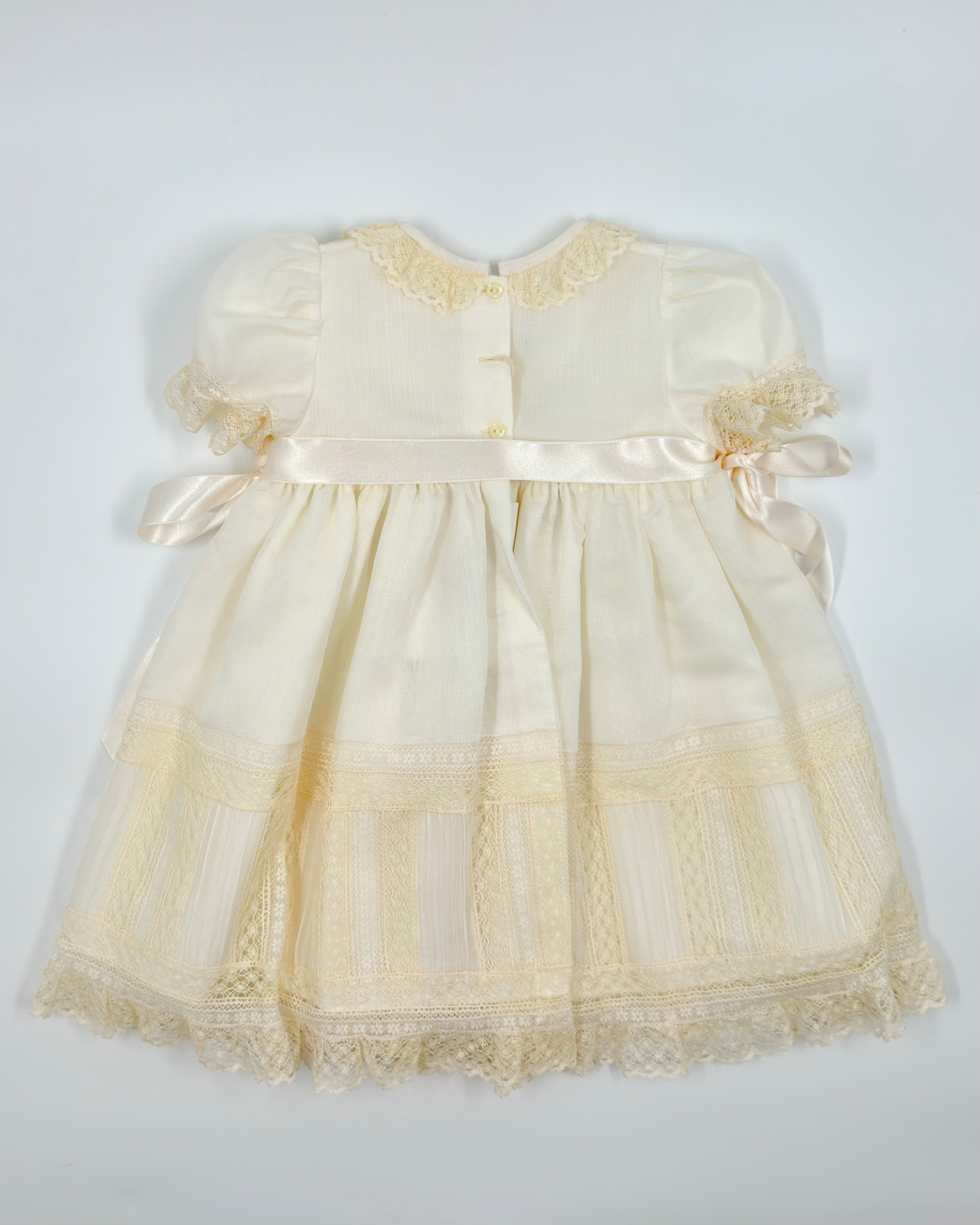 Complete with a matching bonnet, Angela is ideal for special occasions such as christenings, birthdays, and more — a truly heirloom-worthy piece.