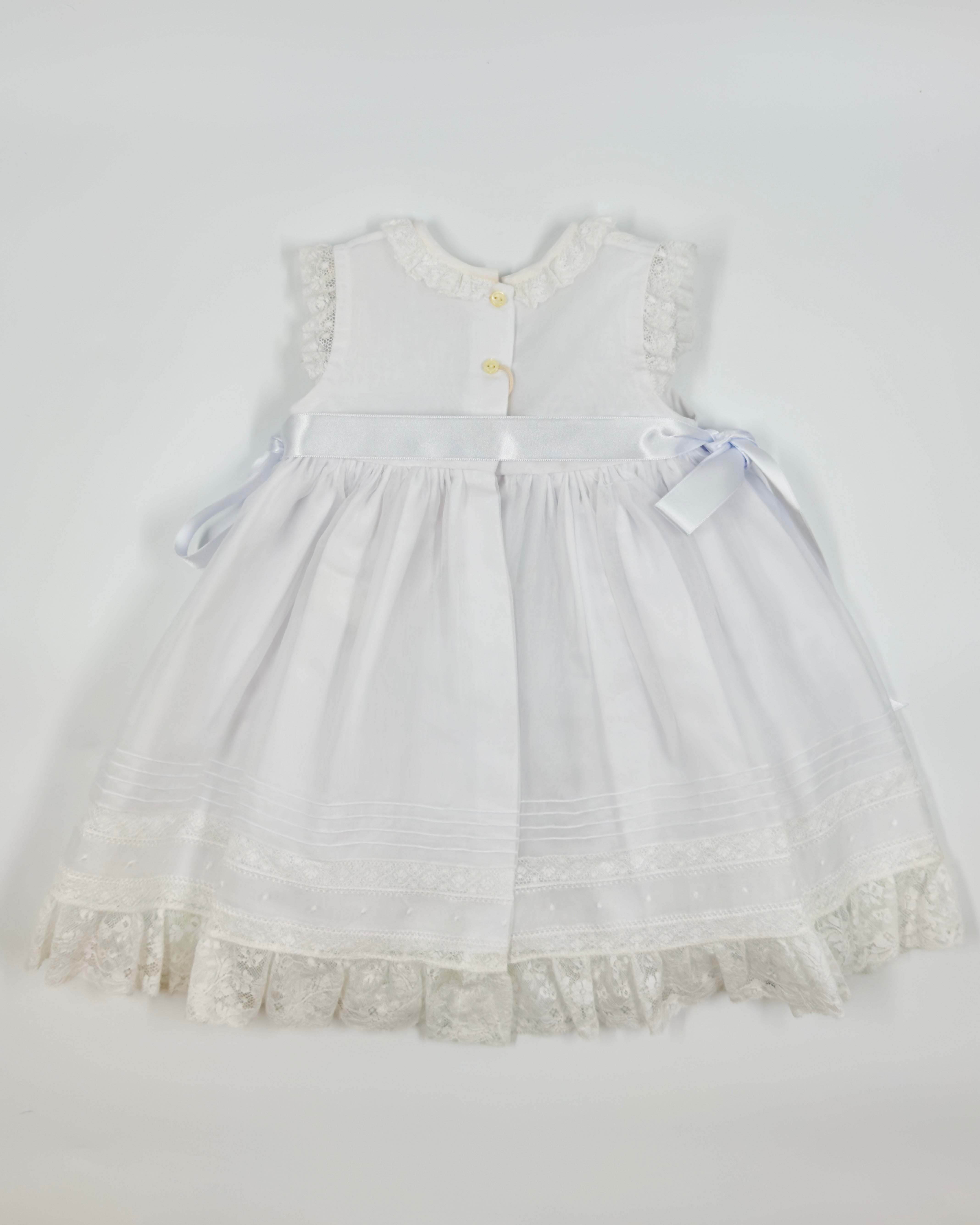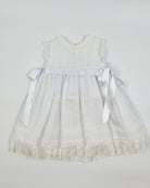 The Catalina dress is a breathtaking heirloom piece designed to make a lasting impression. Crafted from luxurious optic white Swiss organdy and adorned with delicate lace, this empire-cut dress exudes timeless elegance. With its flowing silhouette and refined details, Catalina is the perfect choice for christenings, baby presentations, and cherished family moments. It comes with a matching bonnet.