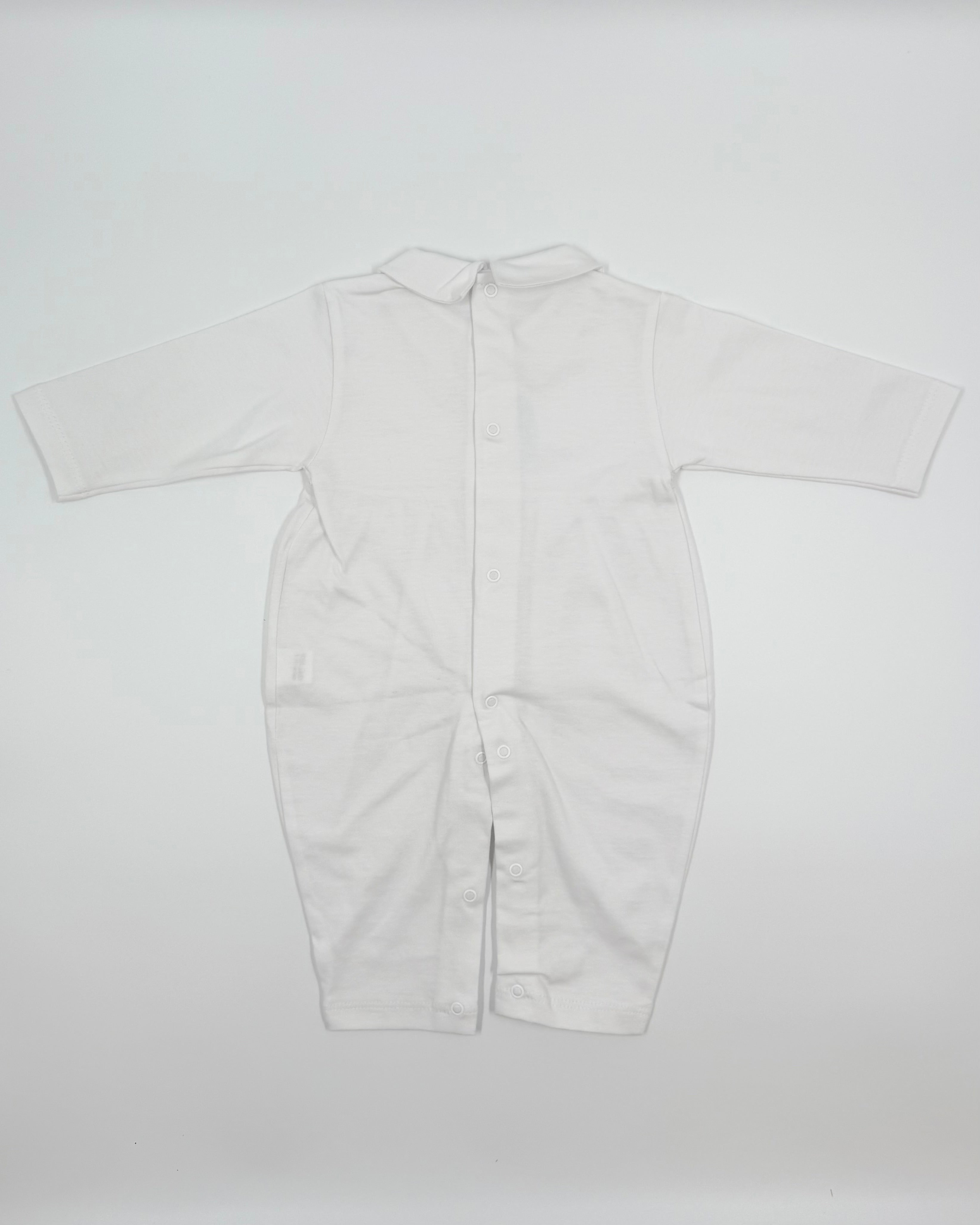 Crisp, classic, and effortlessly refined, our white polo collar onesie is a timeless essential designed to elevate your baby’s wardrobe from the very first days. Expertly made in Portugal from 100% premium cotton, it offers exceptional softness and breathability—perfect for delicate newborn skin.