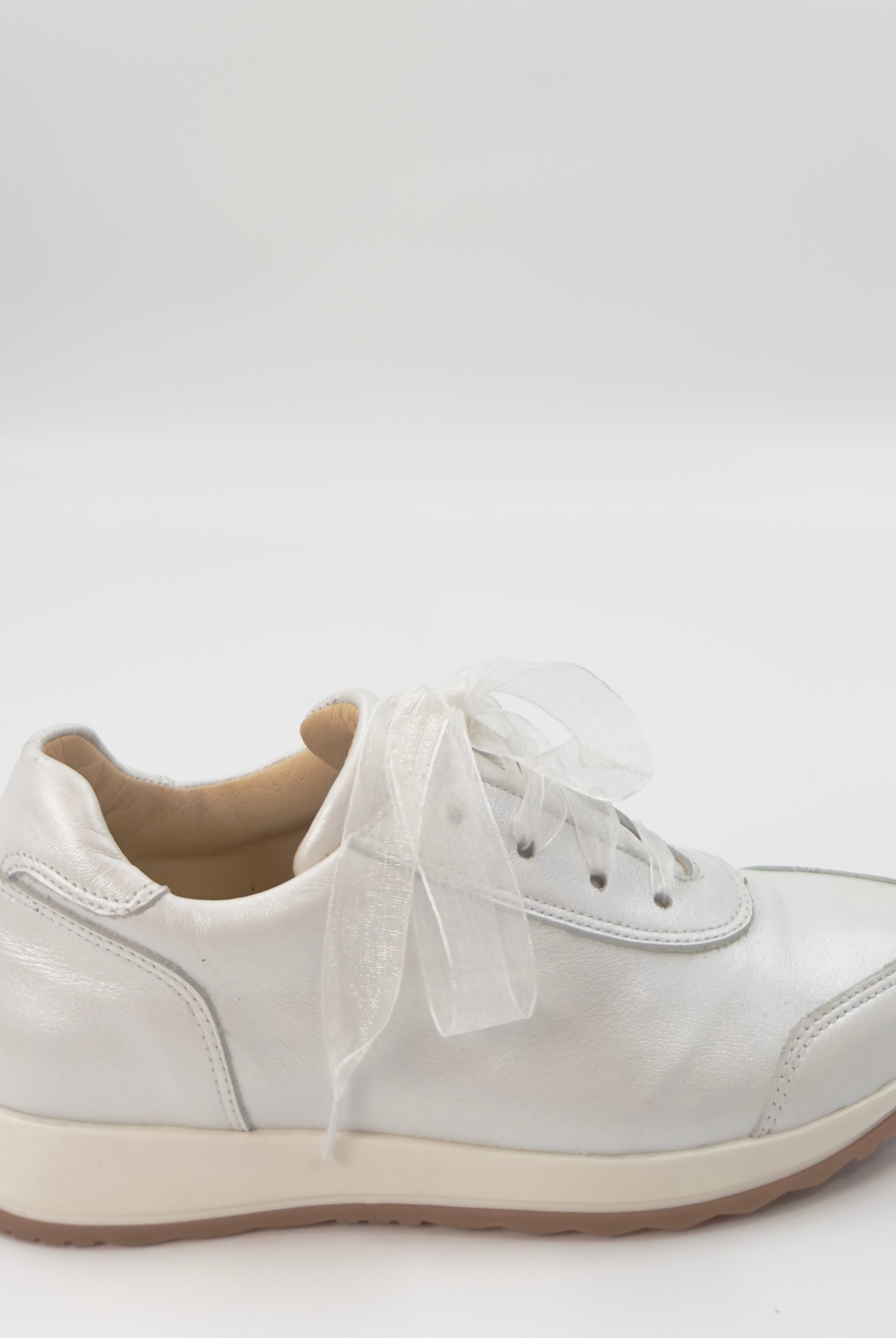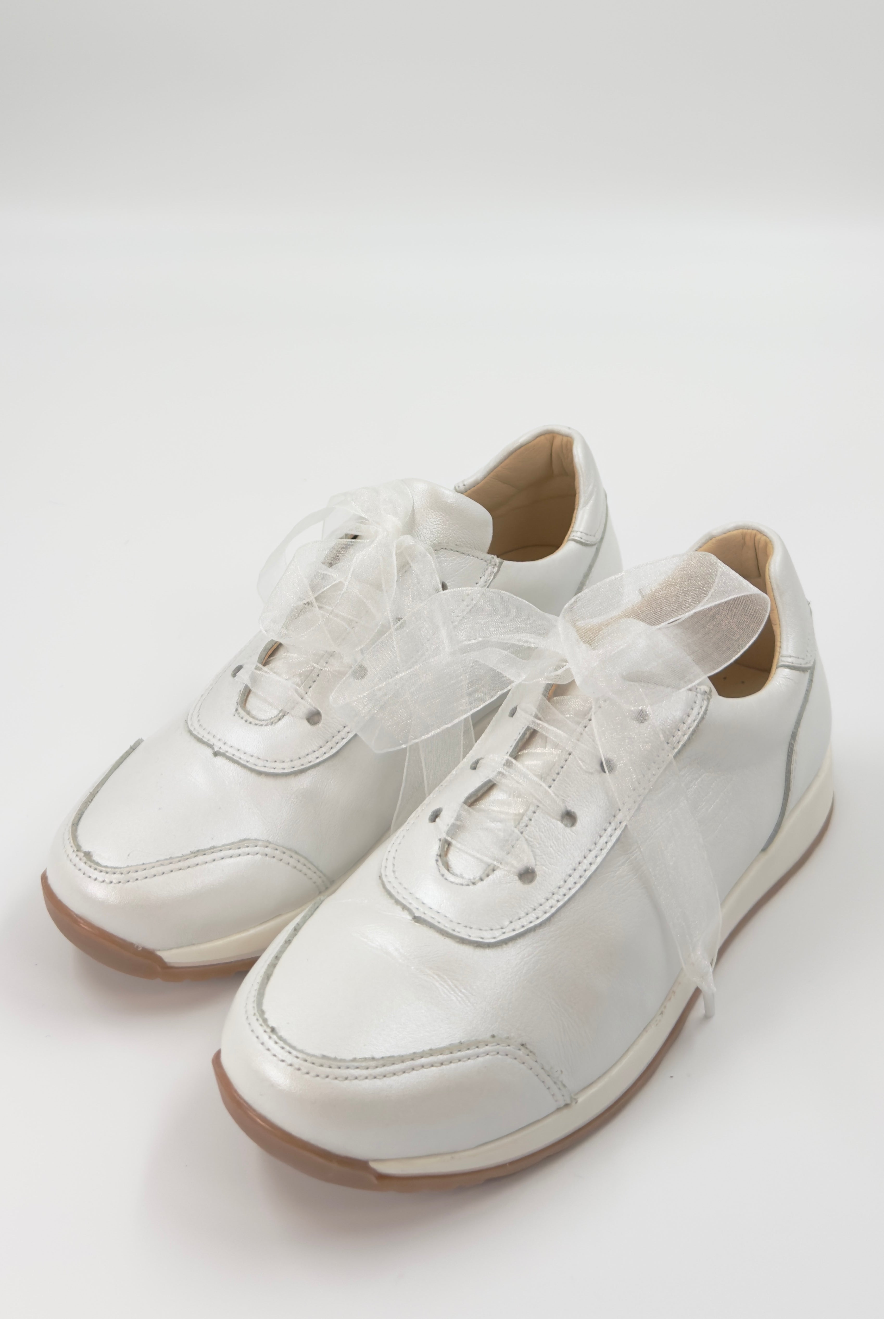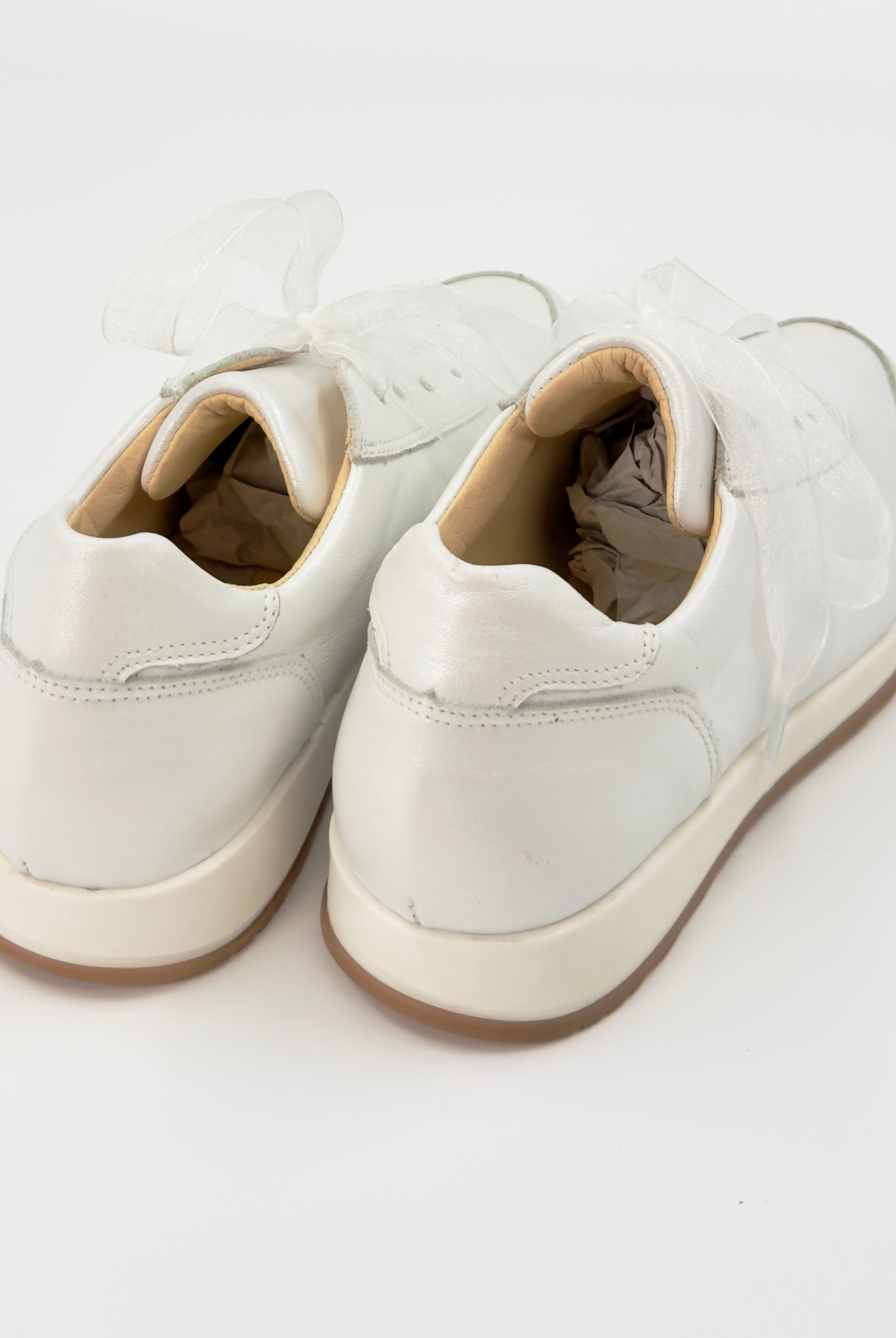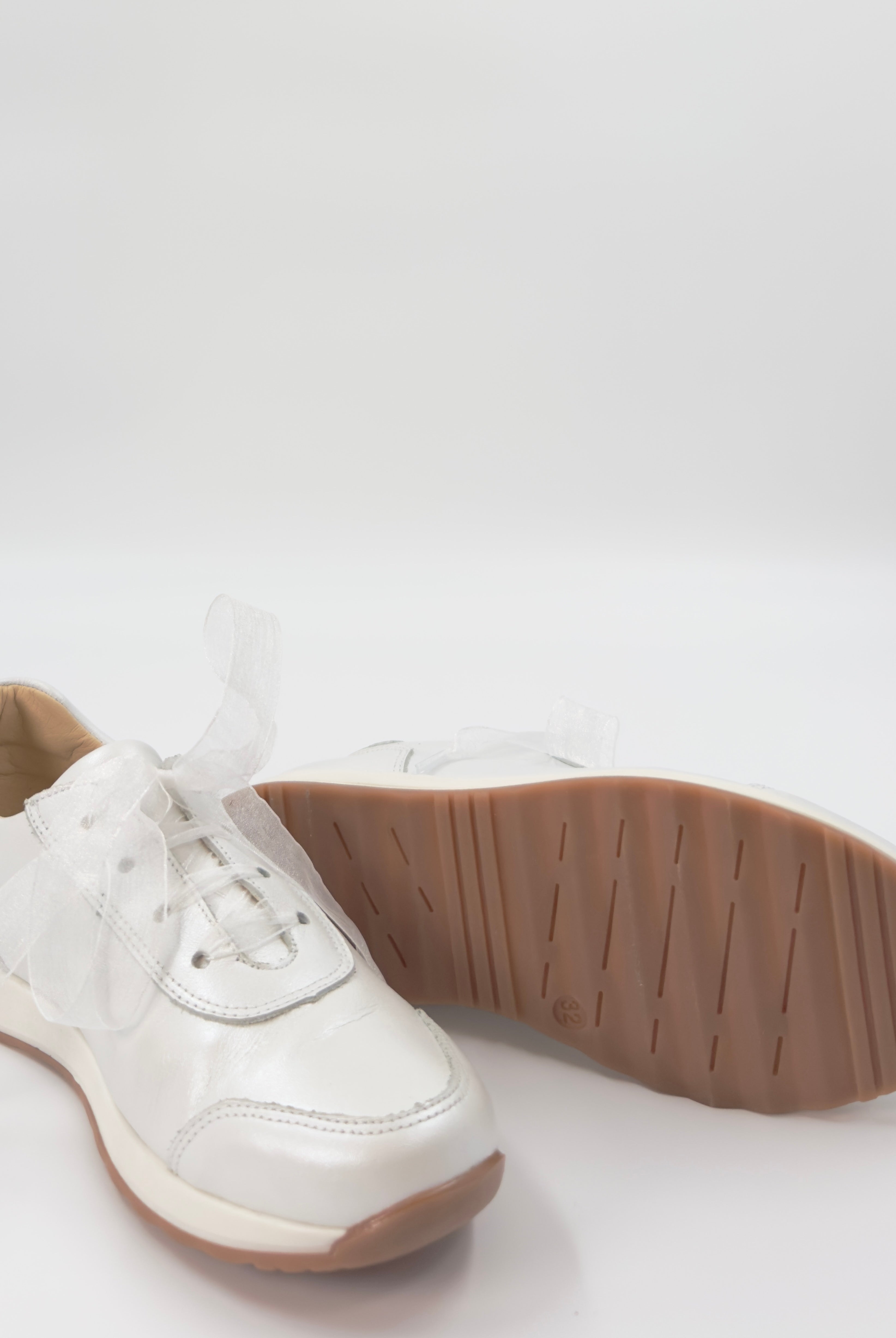 The highlight of this design is its spectacular back—scalloped and accented with delicate lacework in a harmonious pattern, making it a true statement piece. The chest is adorned with a vertical lace detail, while the waist features a soft tulle sash that ties into a flowing draped bow at the back.