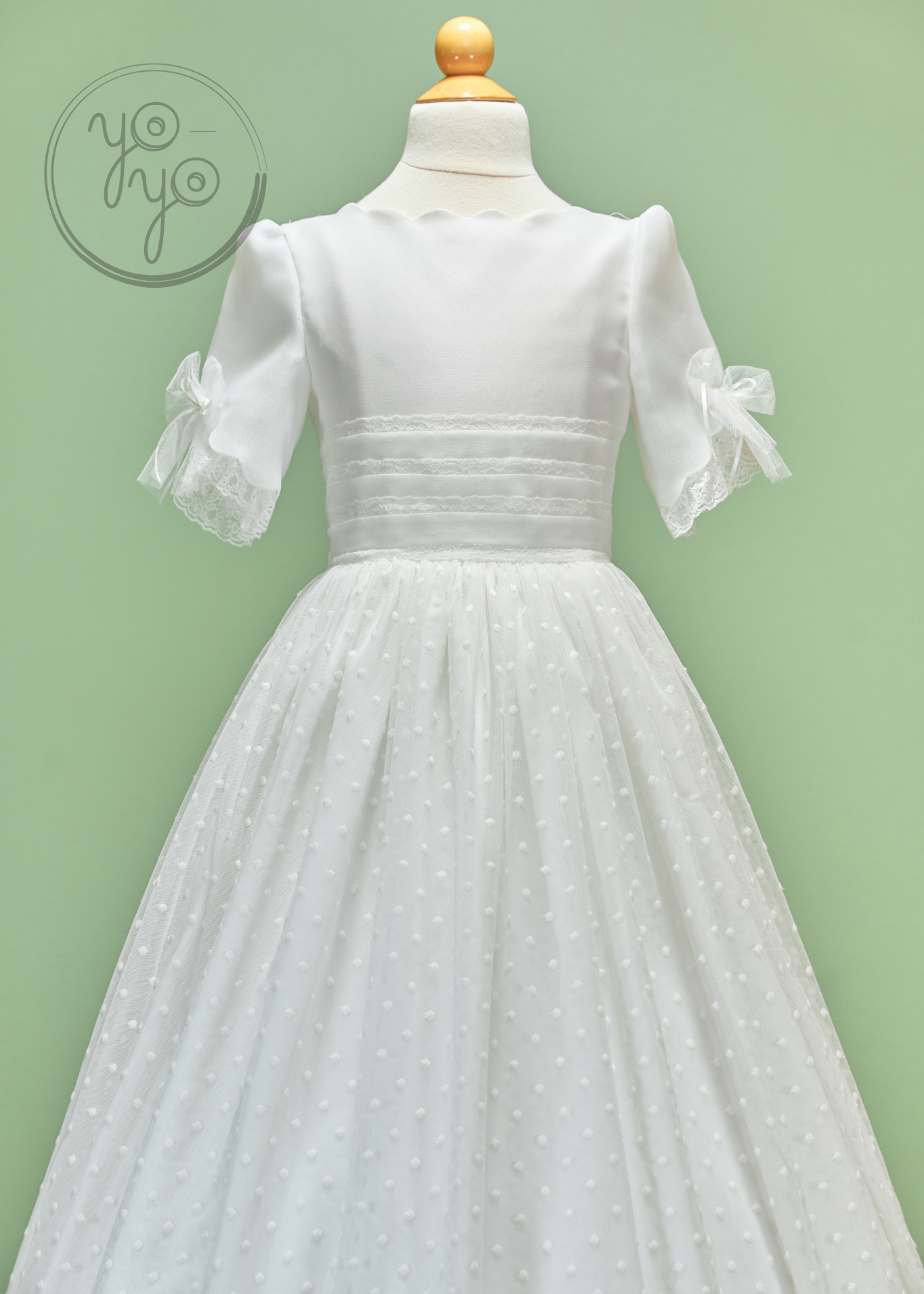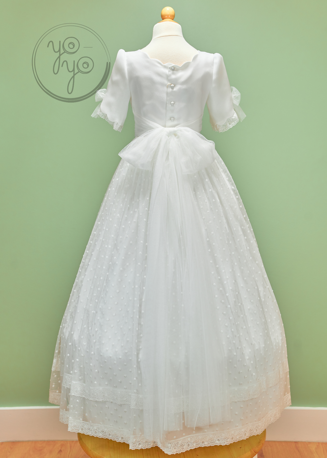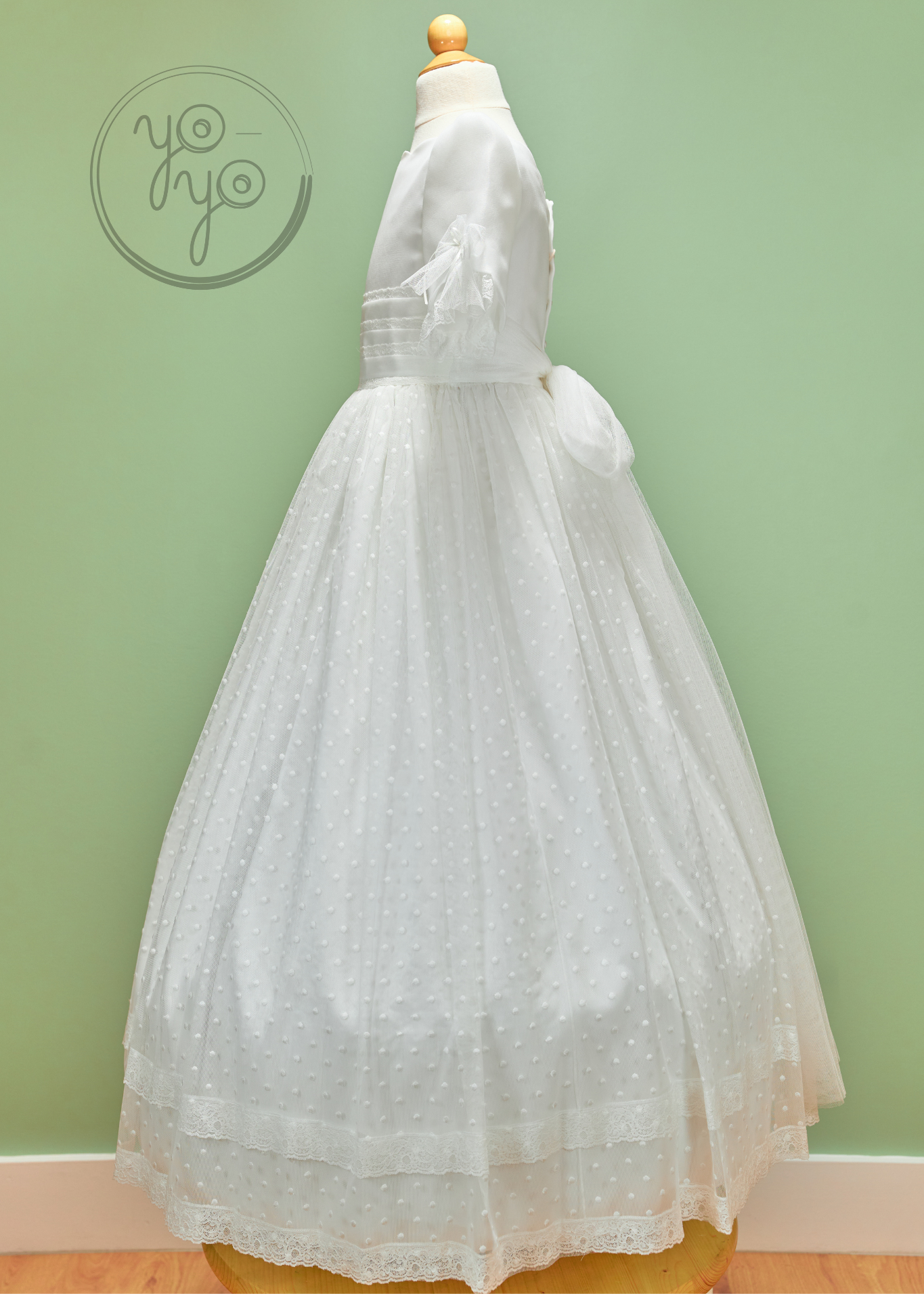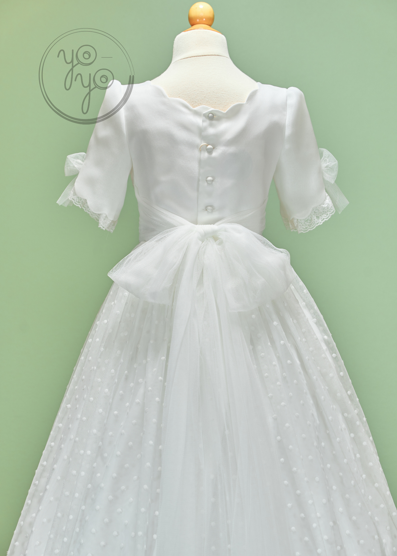 With its mix of timeless structure and bohemian details, Cala is the perfect gown for the girl who wants a Communion dress that feels both unique and memorable.