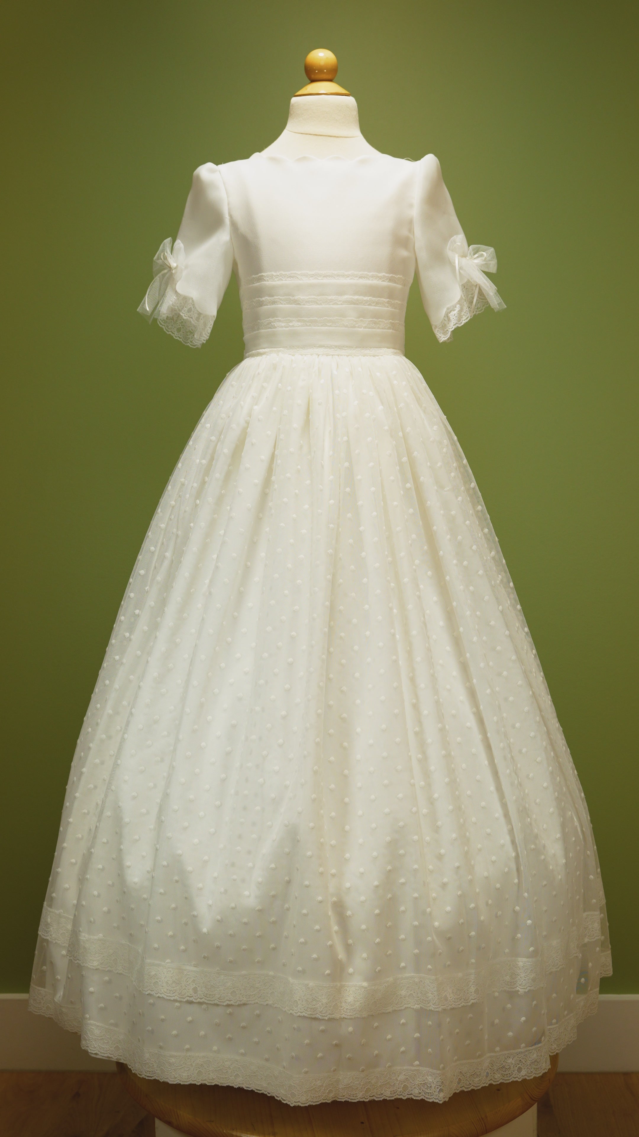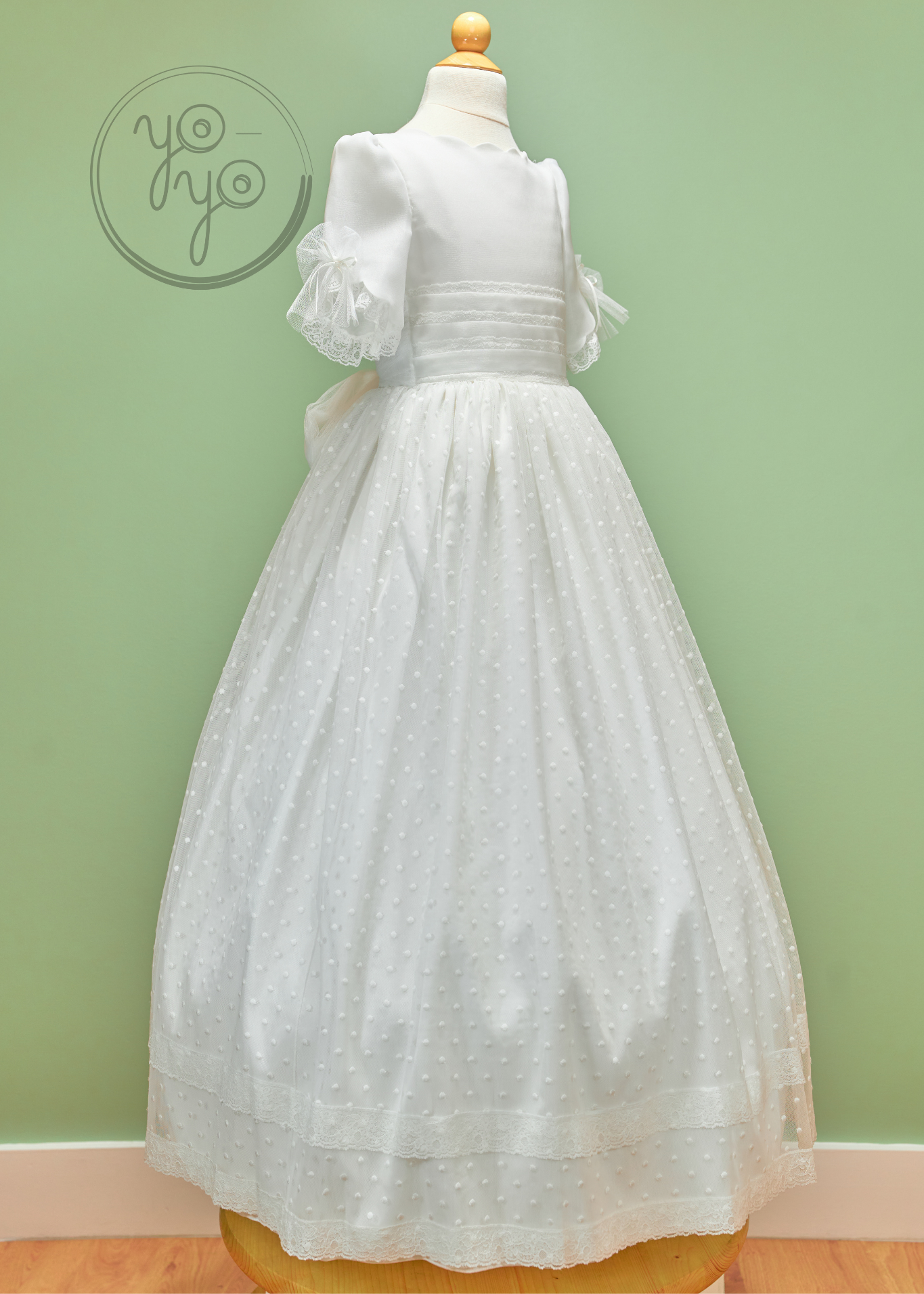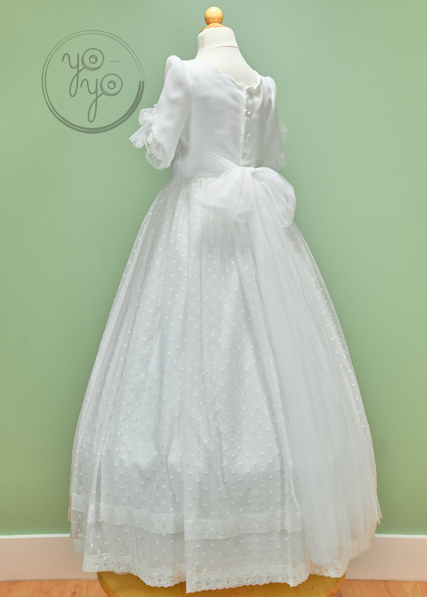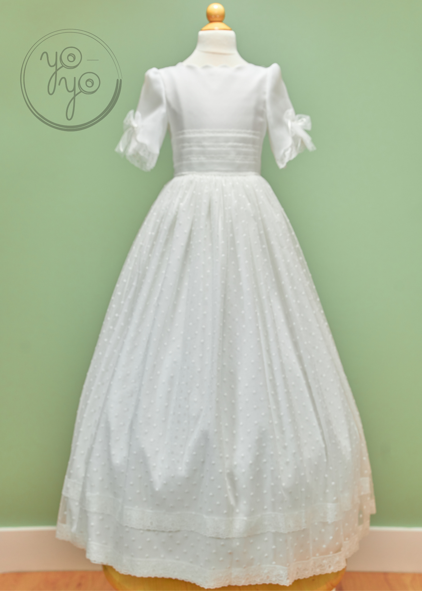 With its mix of timeless structure and bohemian details, Cala is the perfect gown for the girl who wants a Communion dress that feels both unique and memorable.