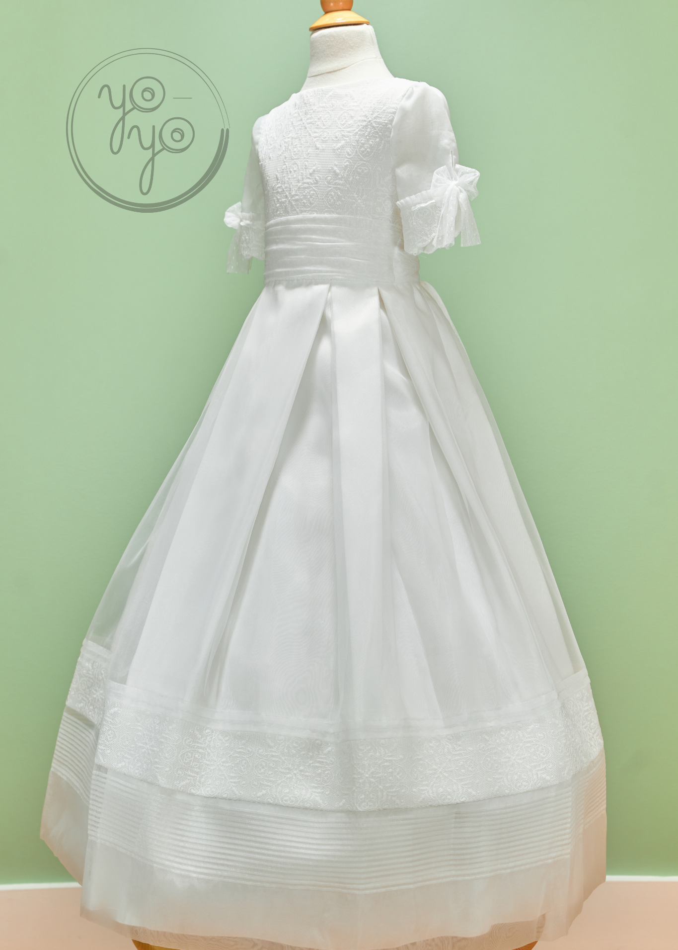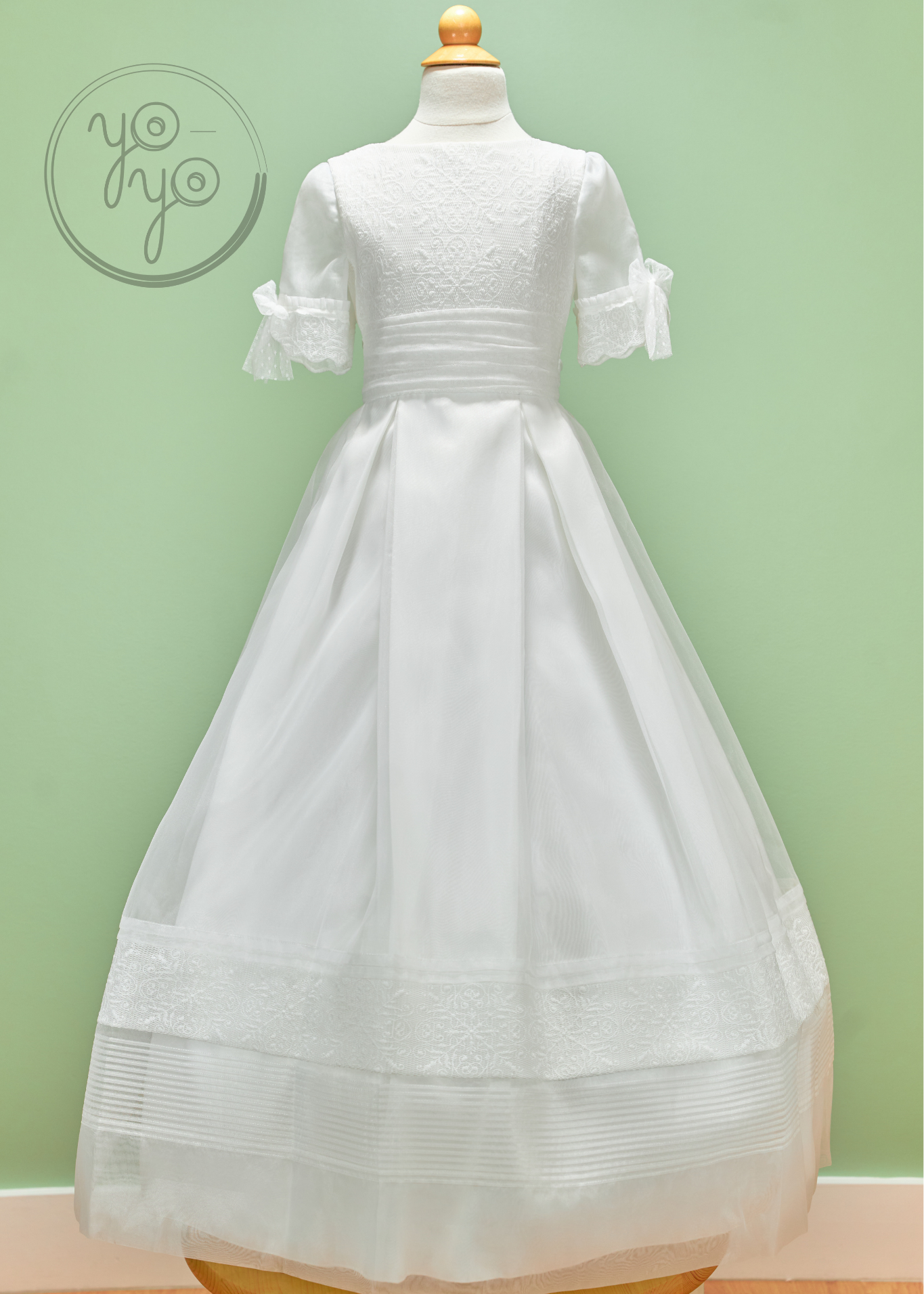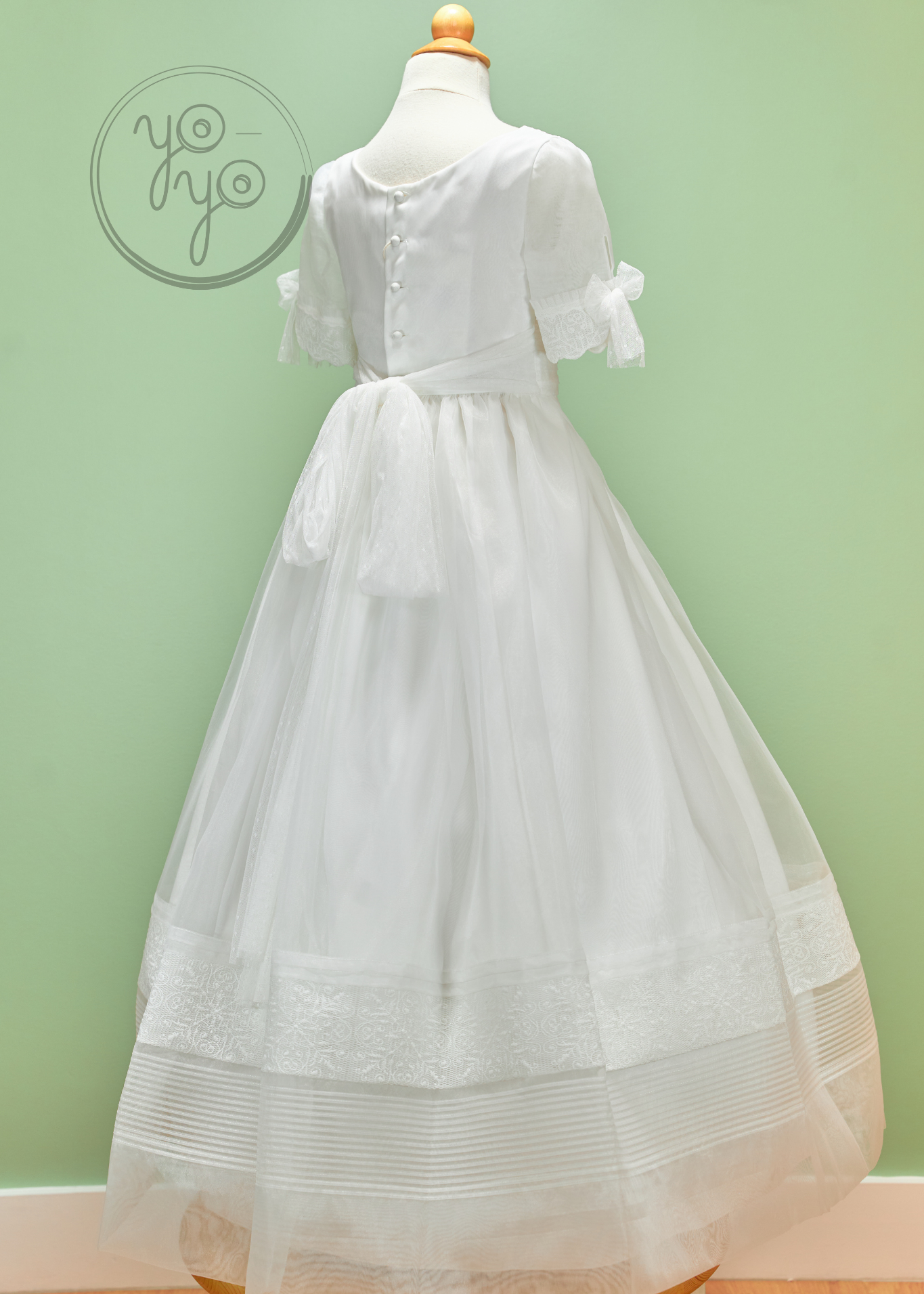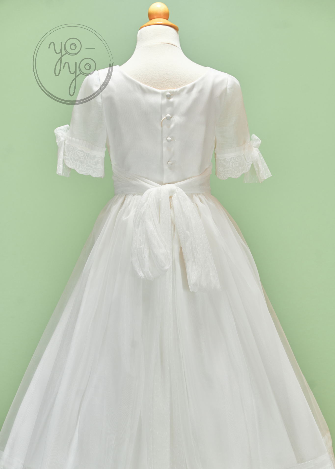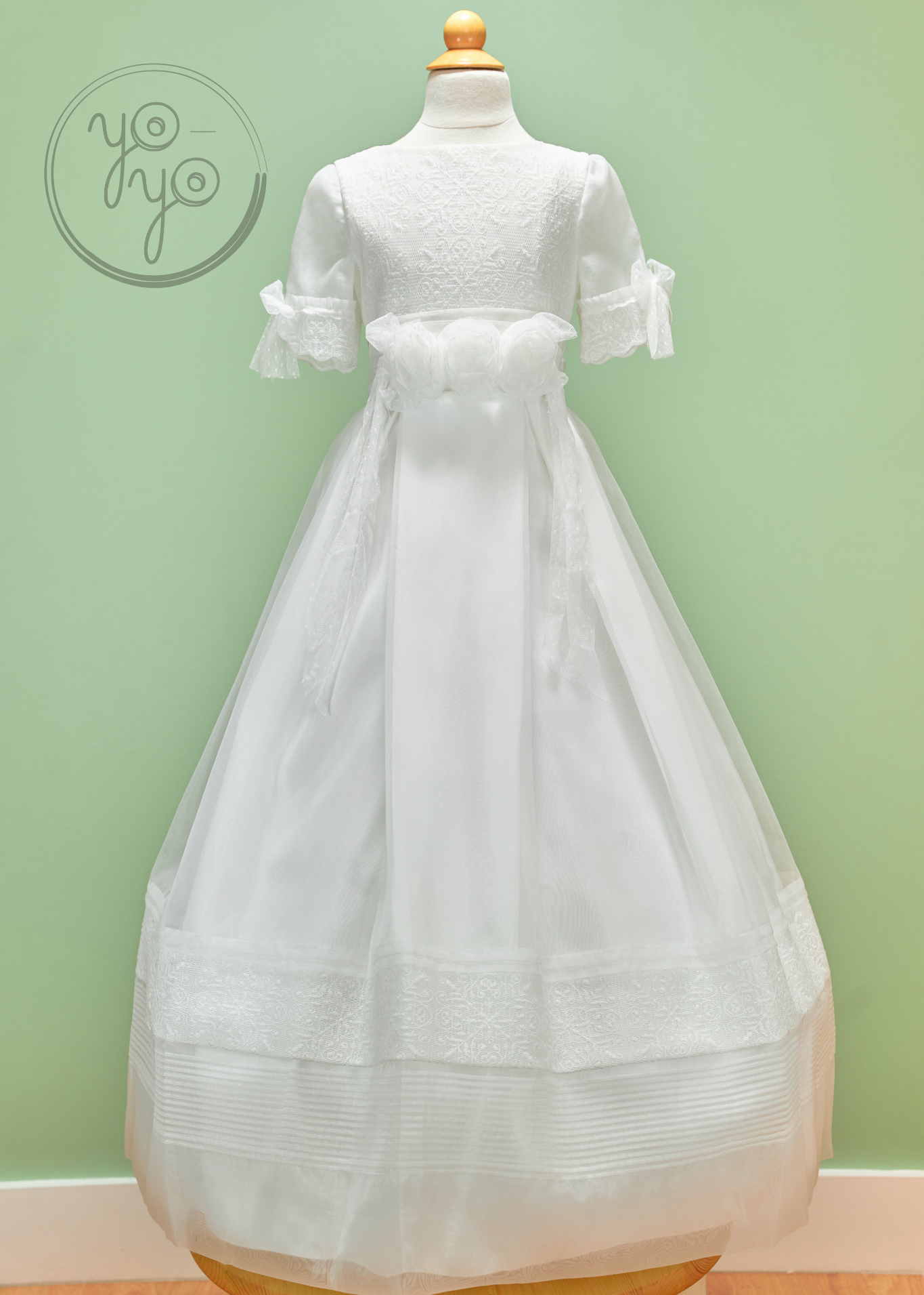 Camomila is an elegant design for families seeking a dress that combines traditional beauty with delicate, romantic details.