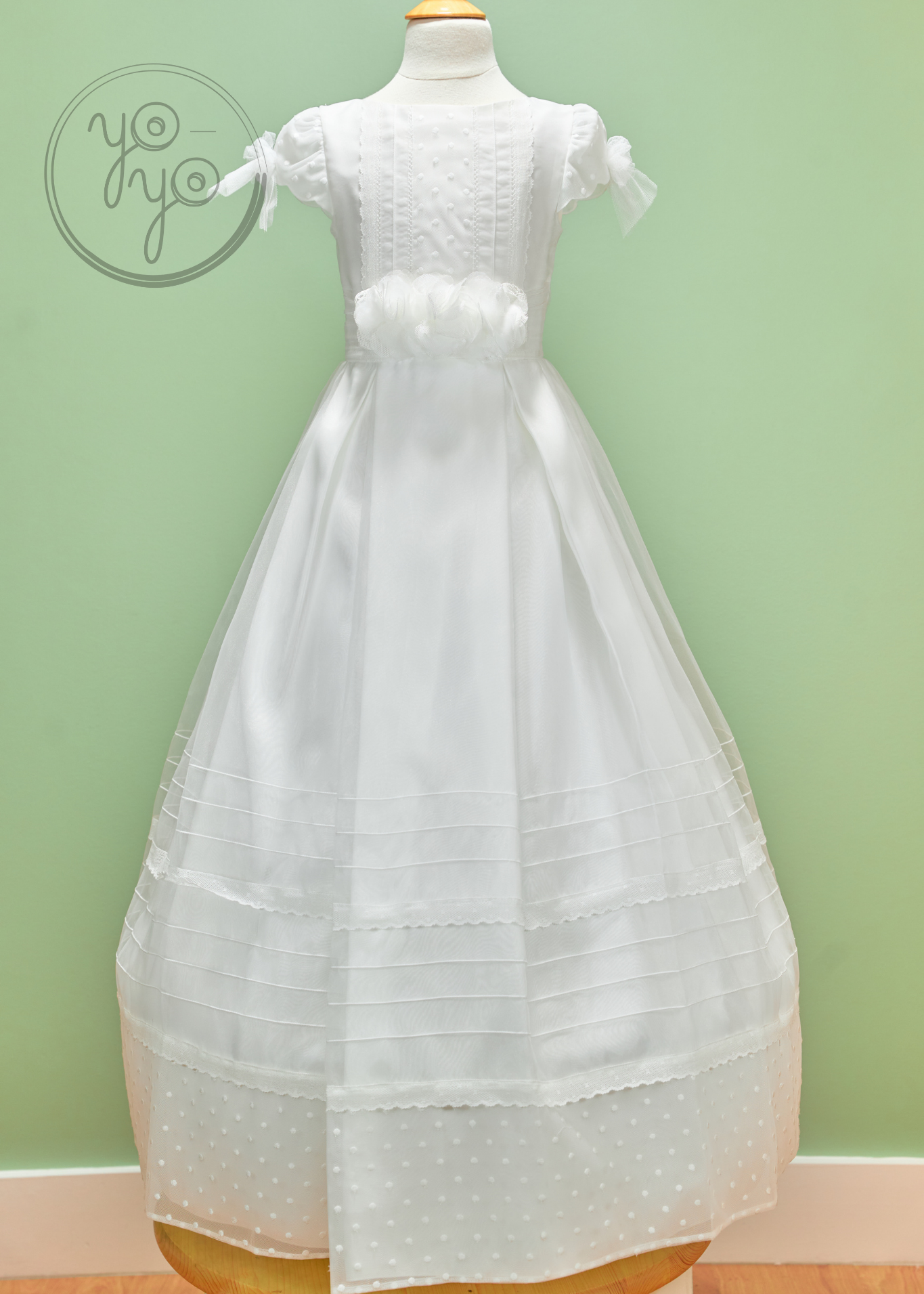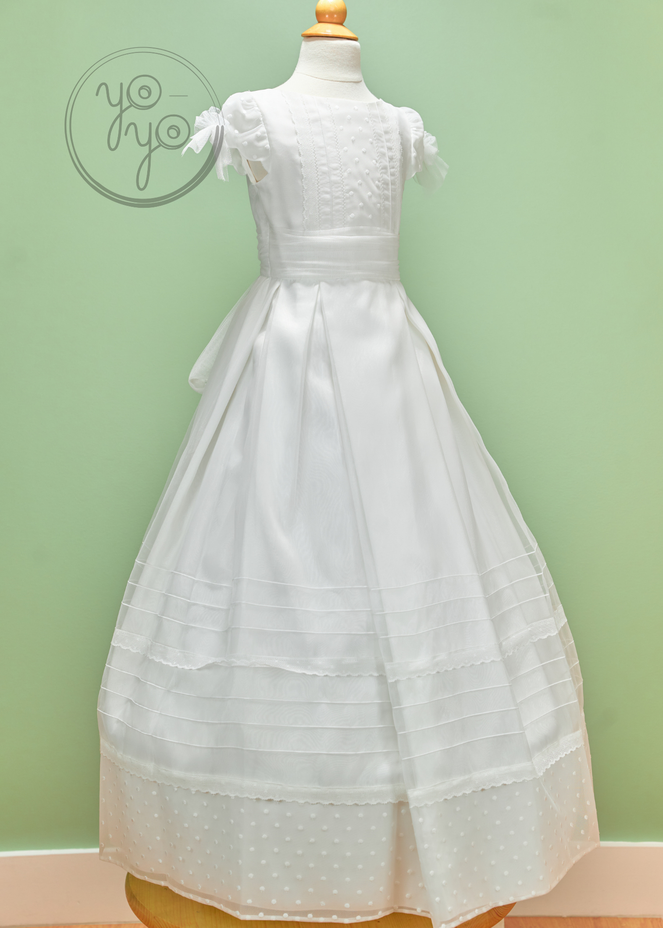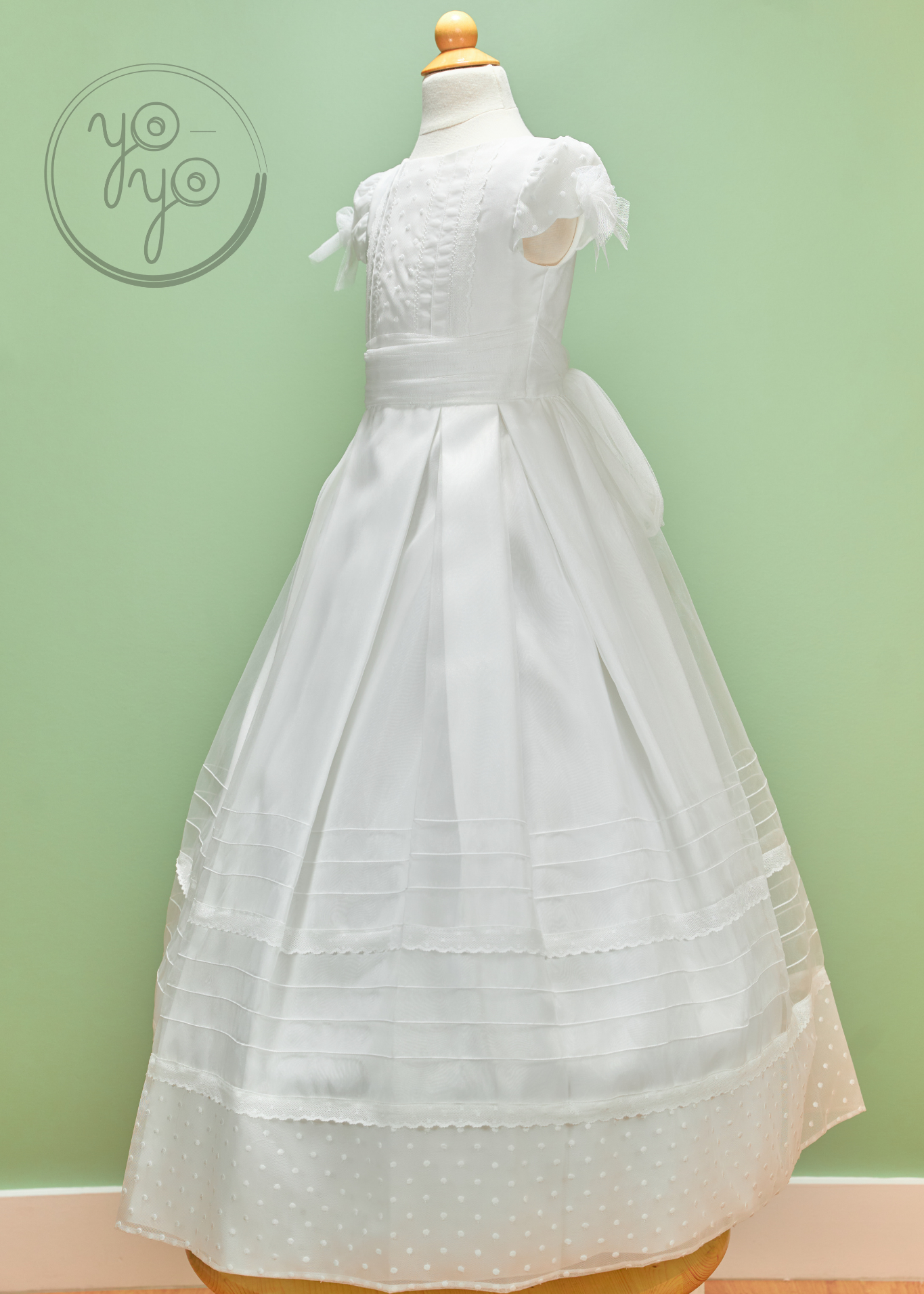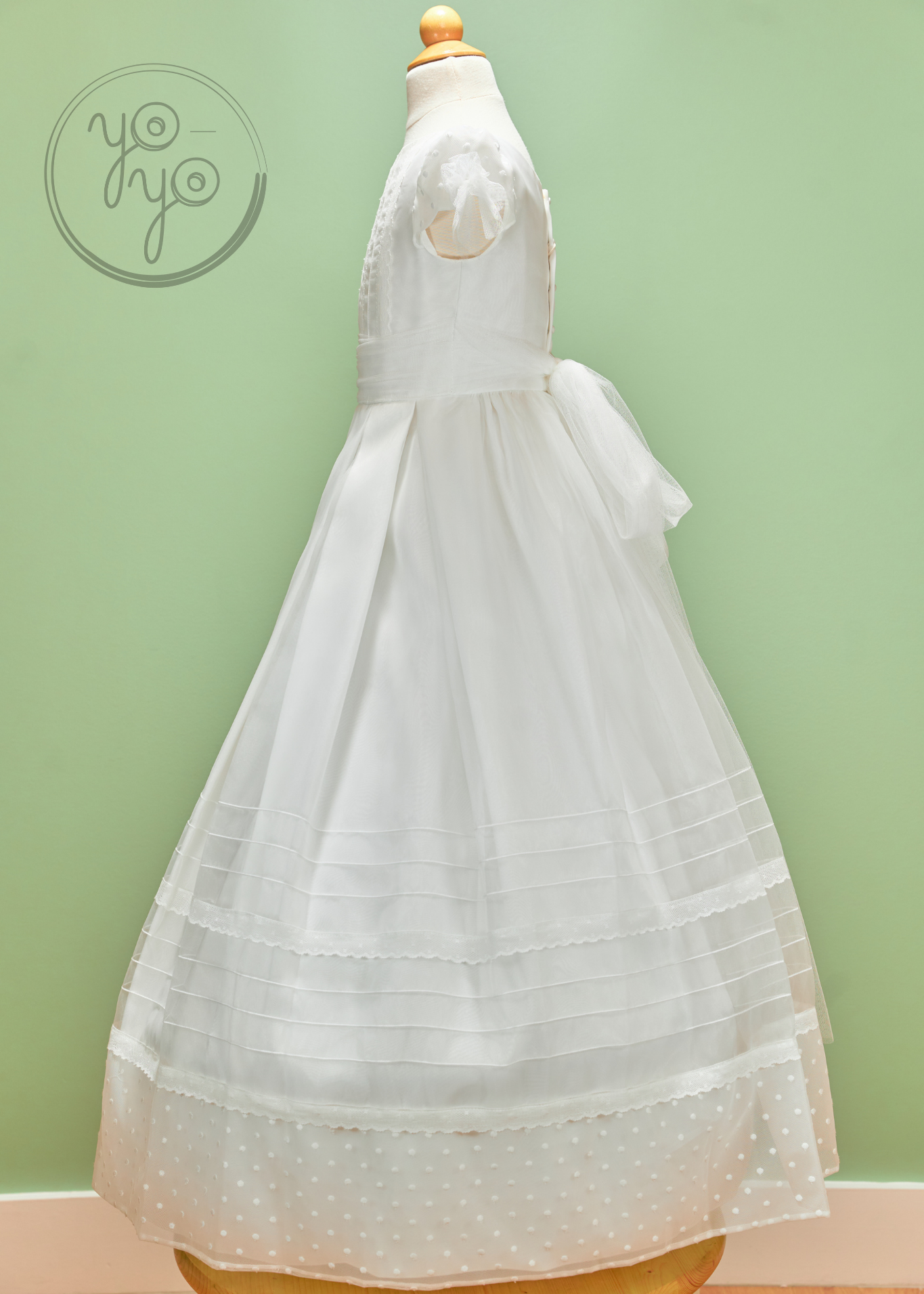 The Gardenia First Communion Dress is a beautiful balance of tradition and modern elegance. Made in lightweight off-white organza, this gown is timeless, airy, and ideal for her special day.