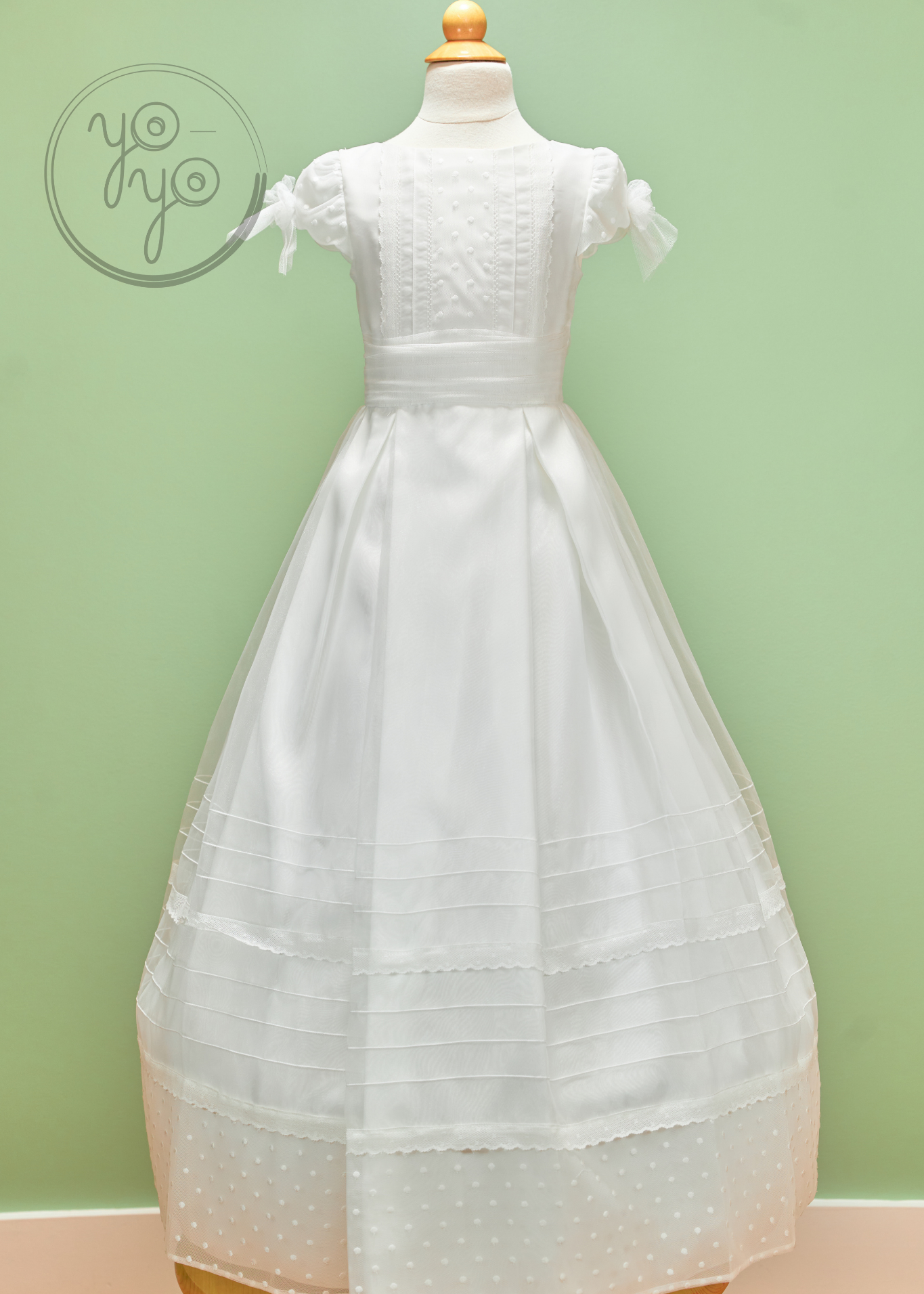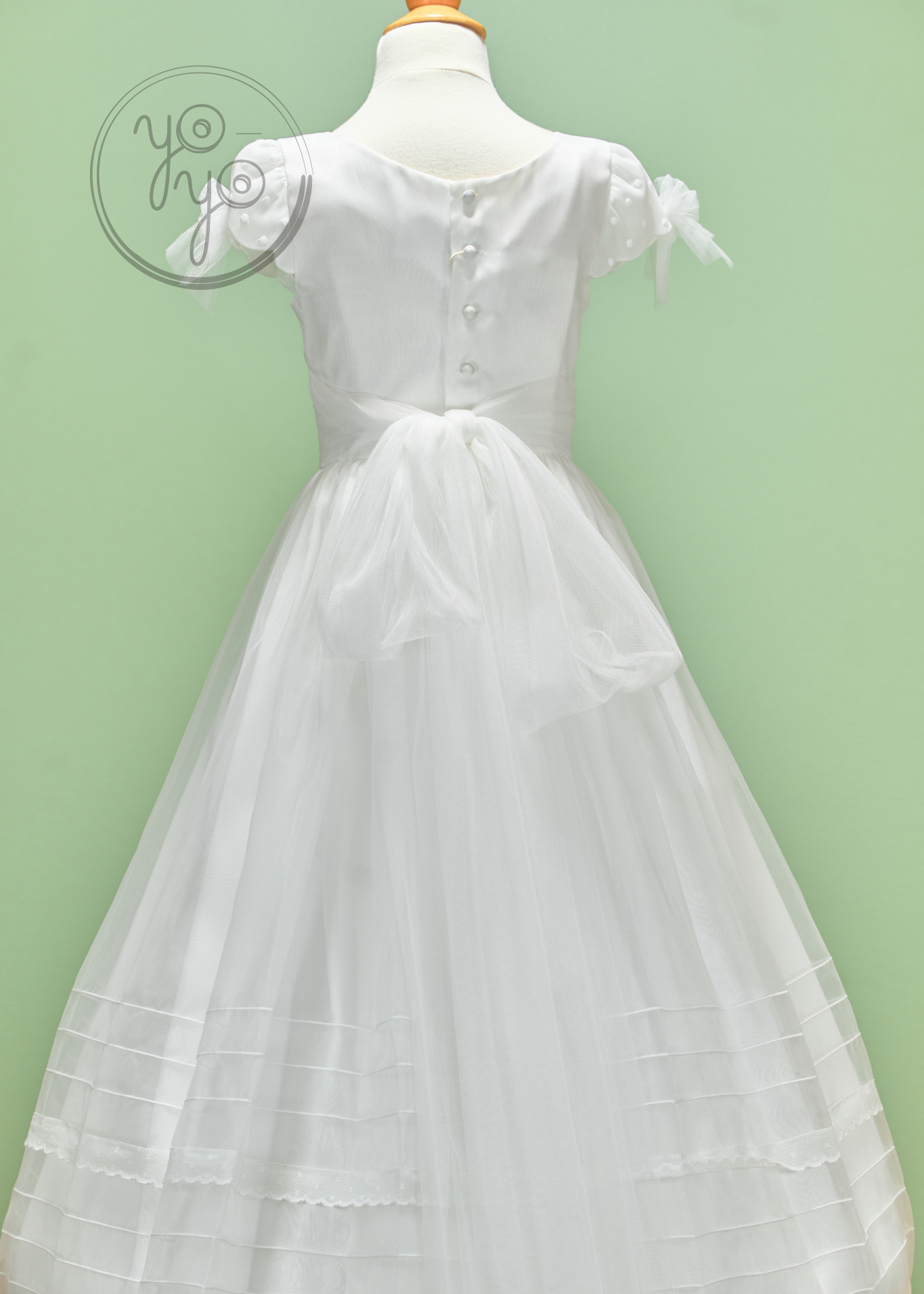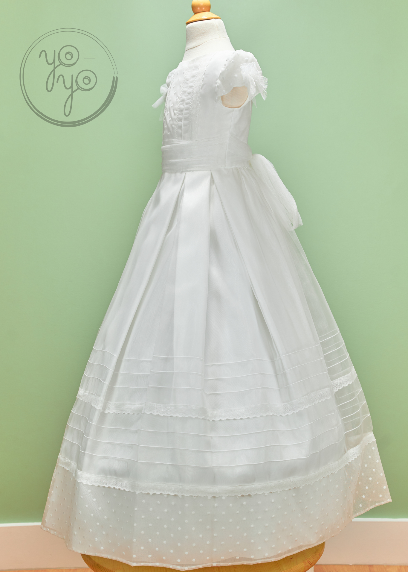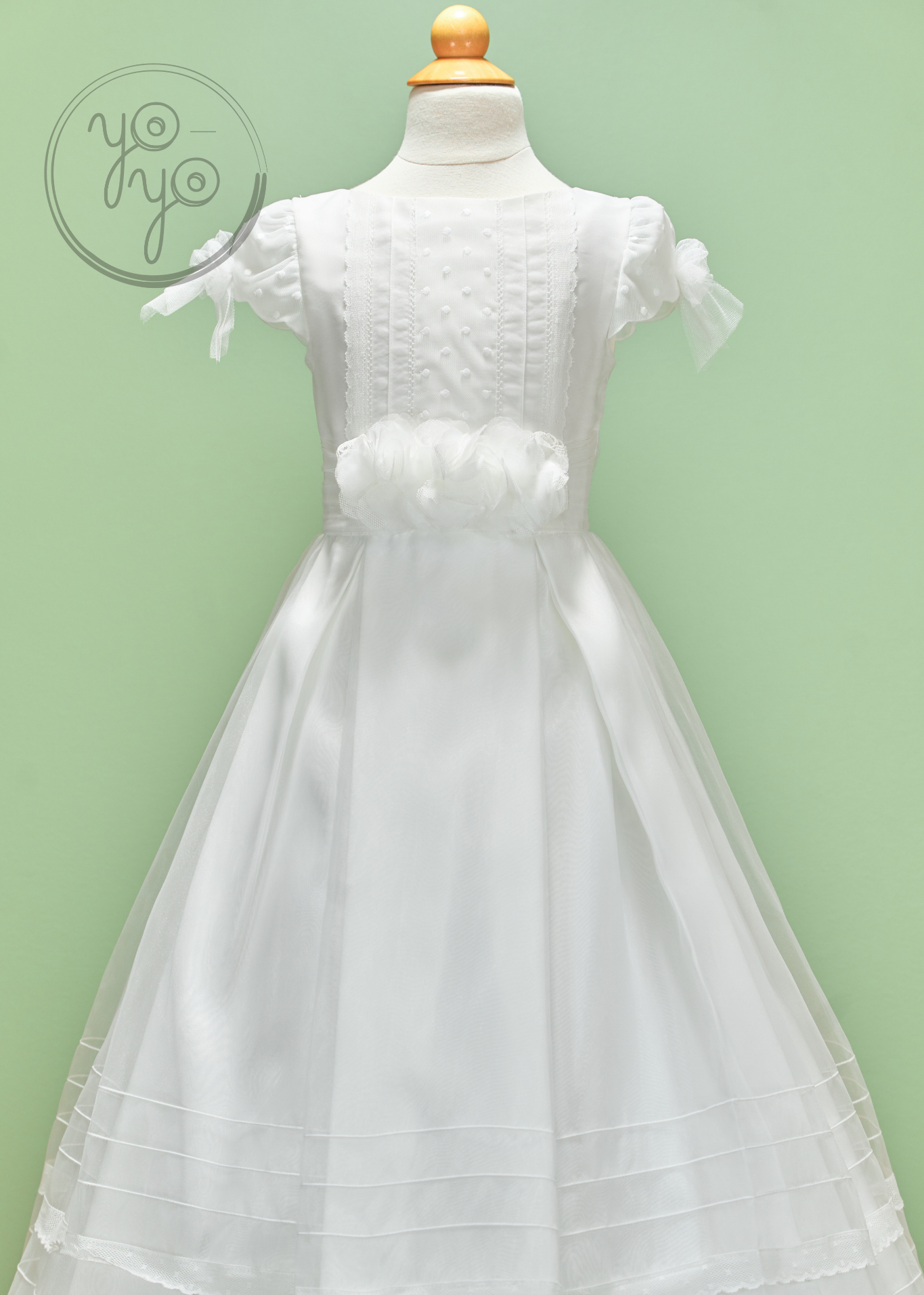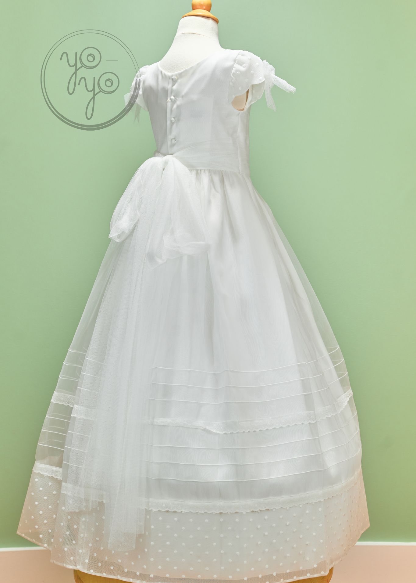The Gardenia First Communion Dress is a beautiful balance of tradition and modern elegance. Made in lightweight off-white organza, this gown is timeless, airy, and ideal for her special day.
