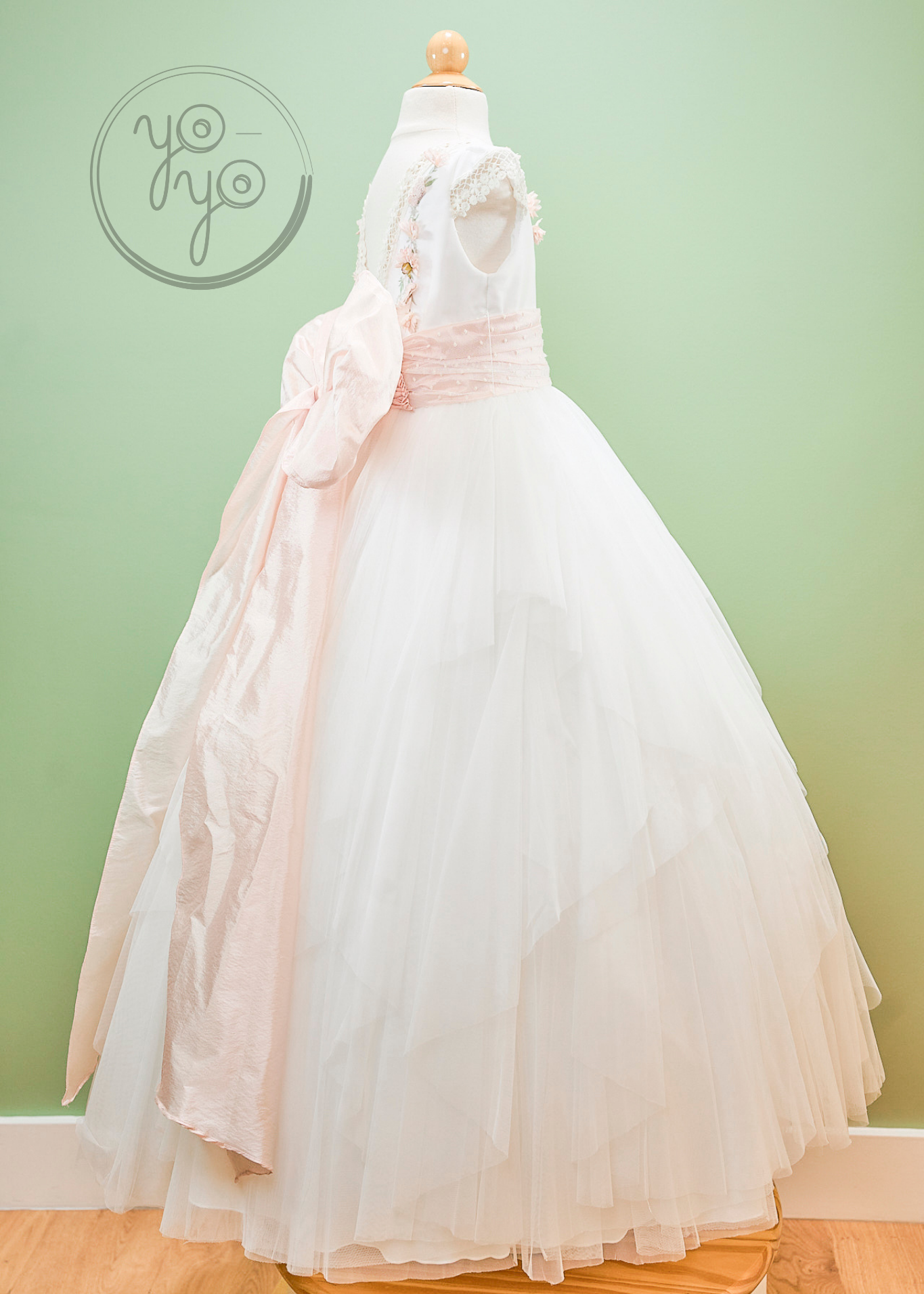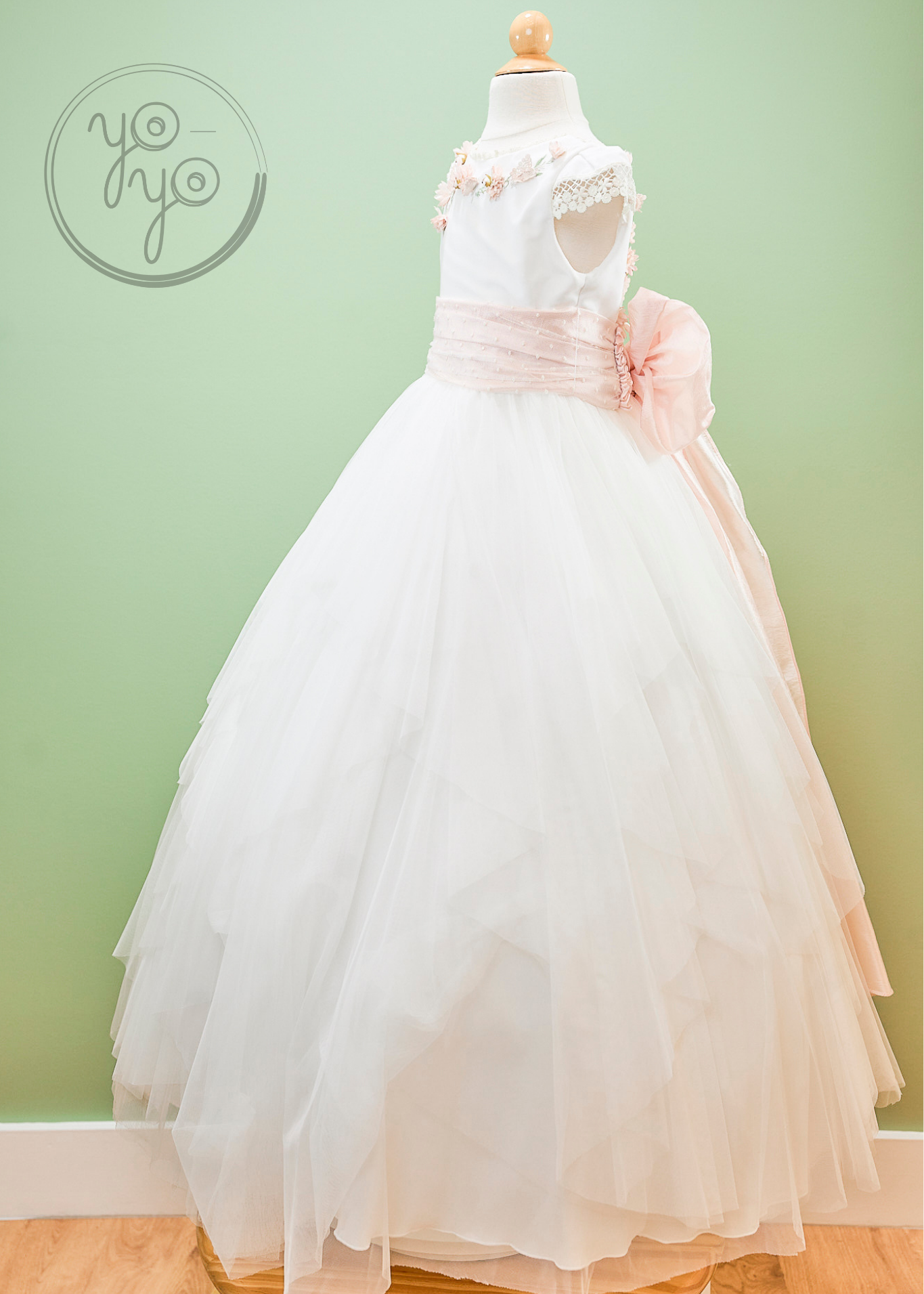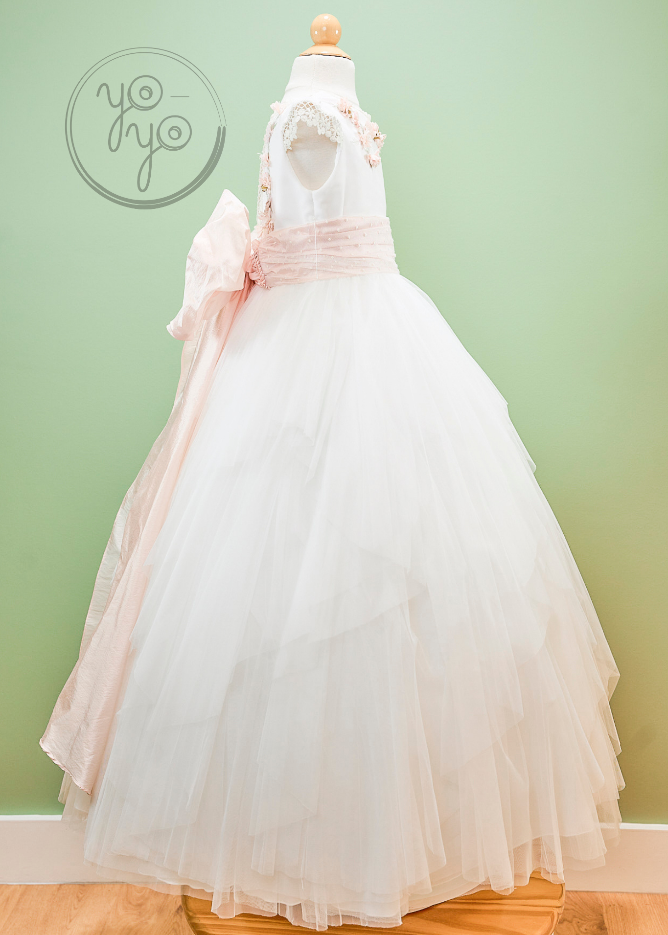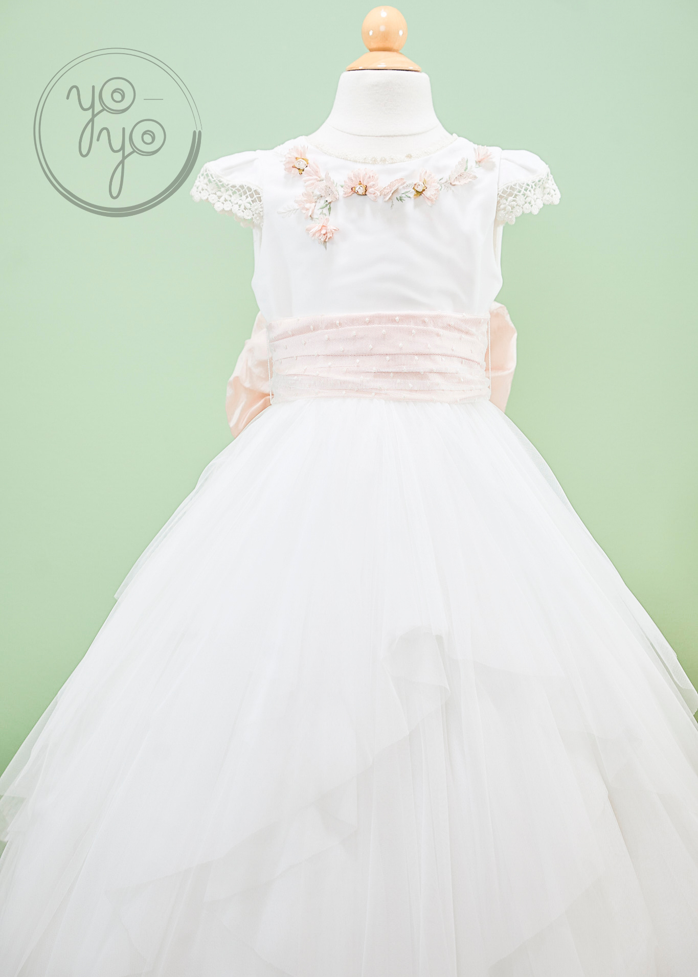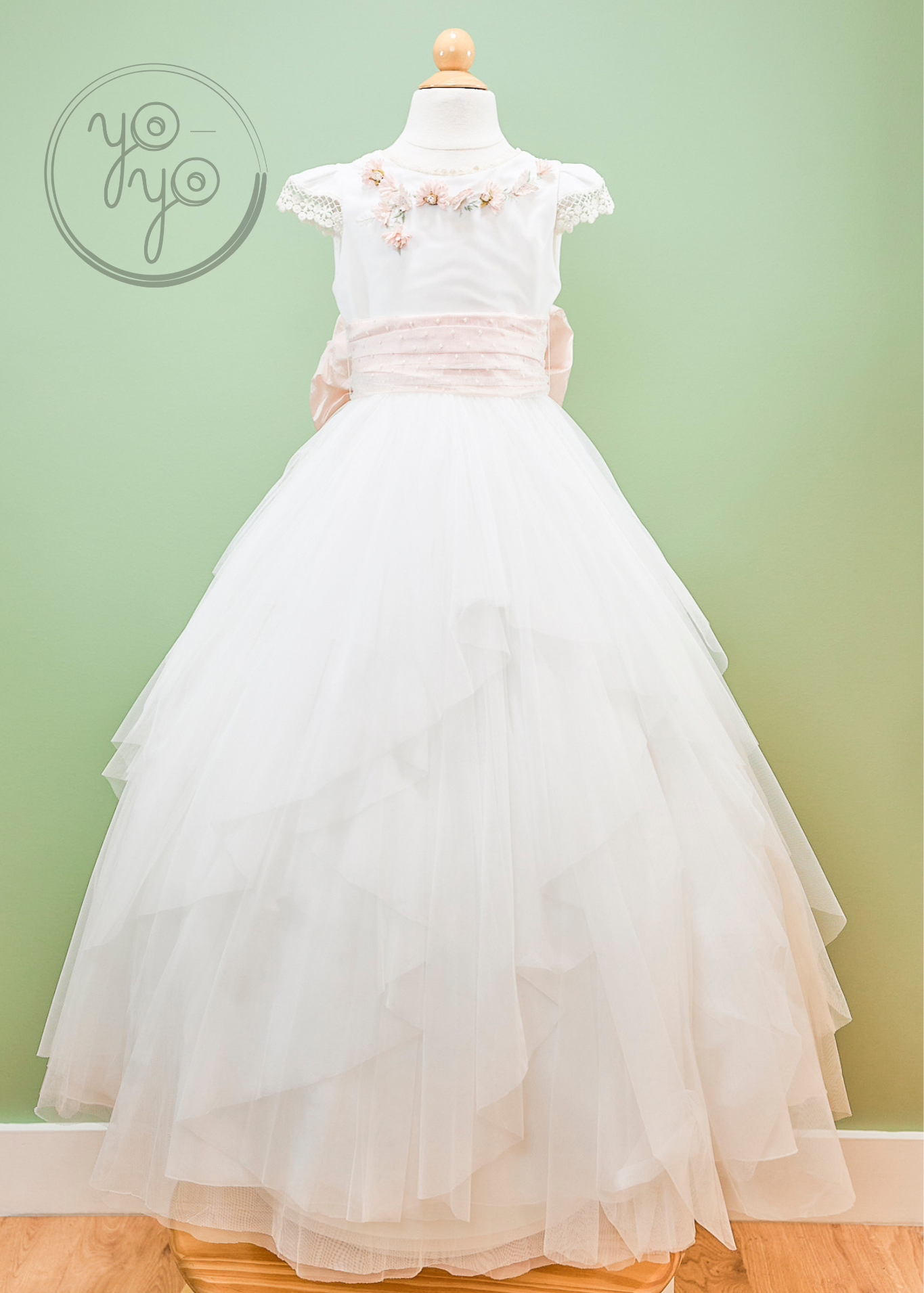 The Giulia Dress is a romantic and unique design, perfect for First Communion or any special occasion. The skirt is crafted from layers of soft French tulle, creating a graceful, airy silhouette that moves beautifully with every step.