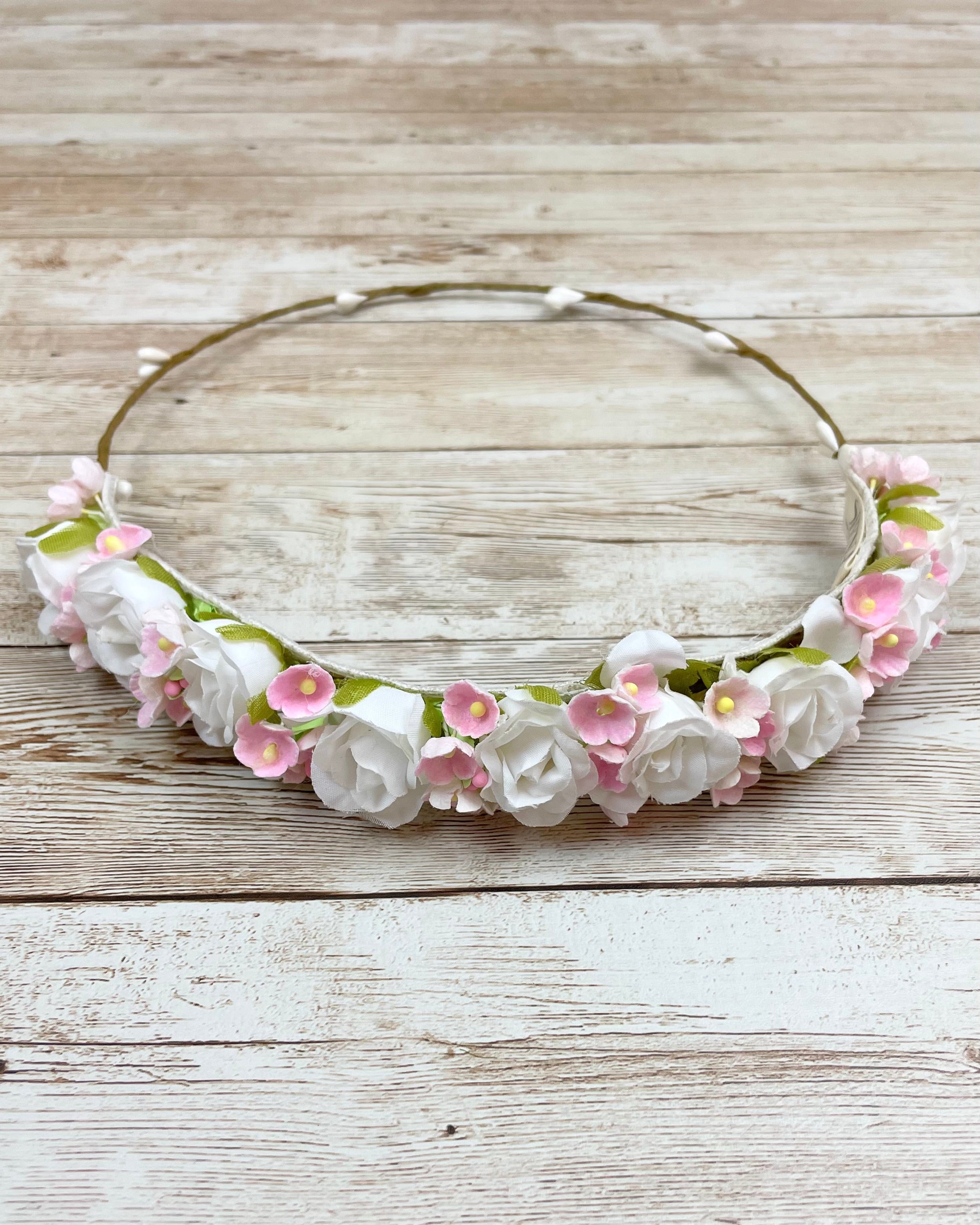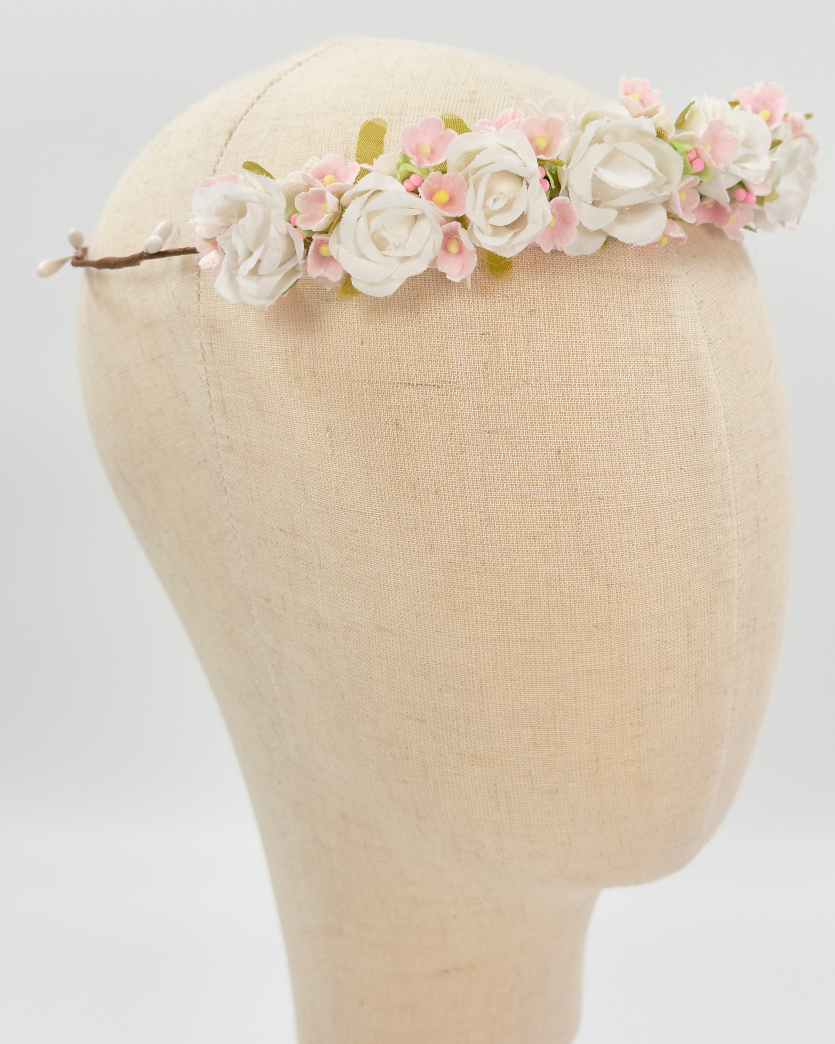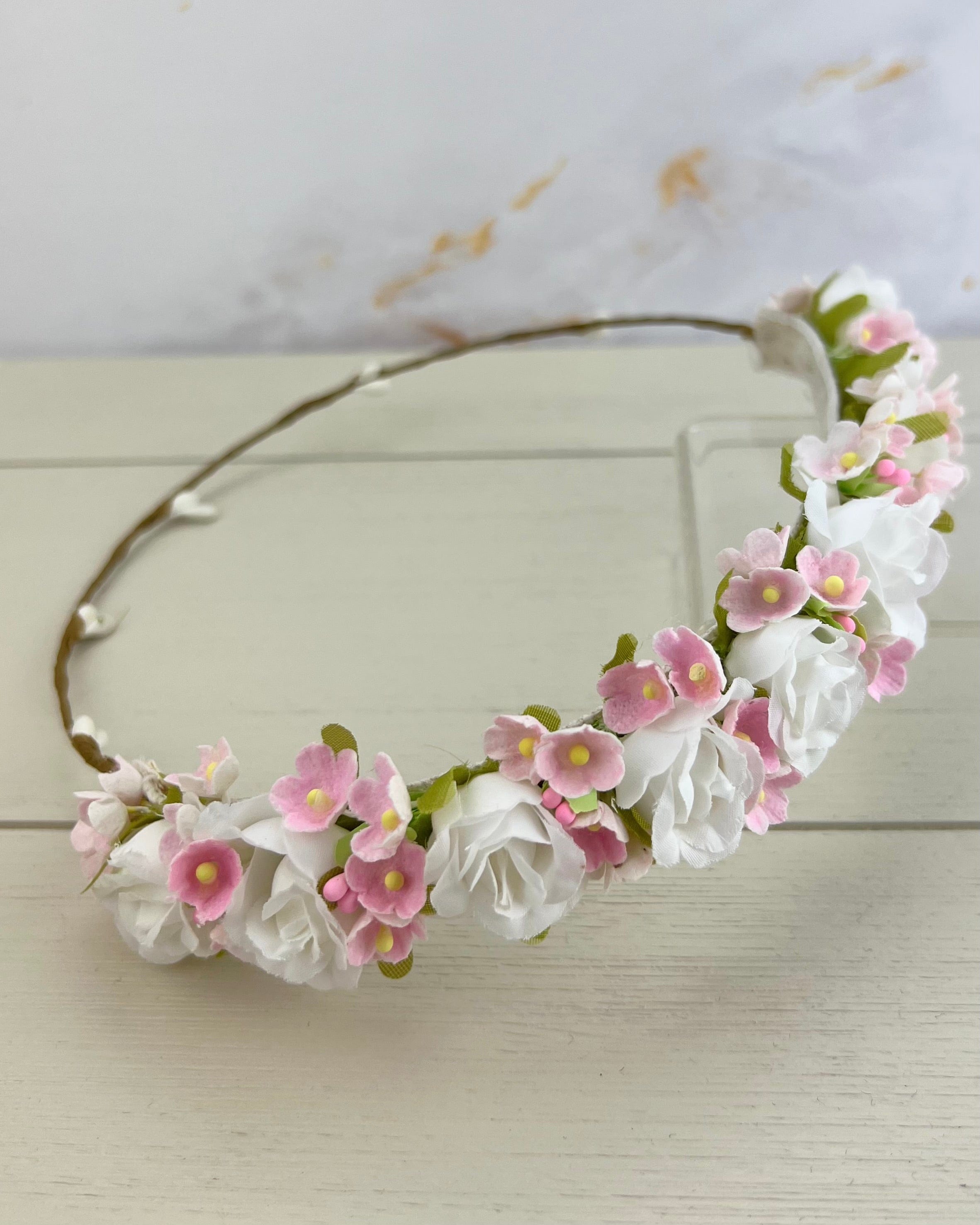 Beautiful and unique half flower crown for girls. Special headpiece made with handmade flowers, ideal to wear during special occasions.