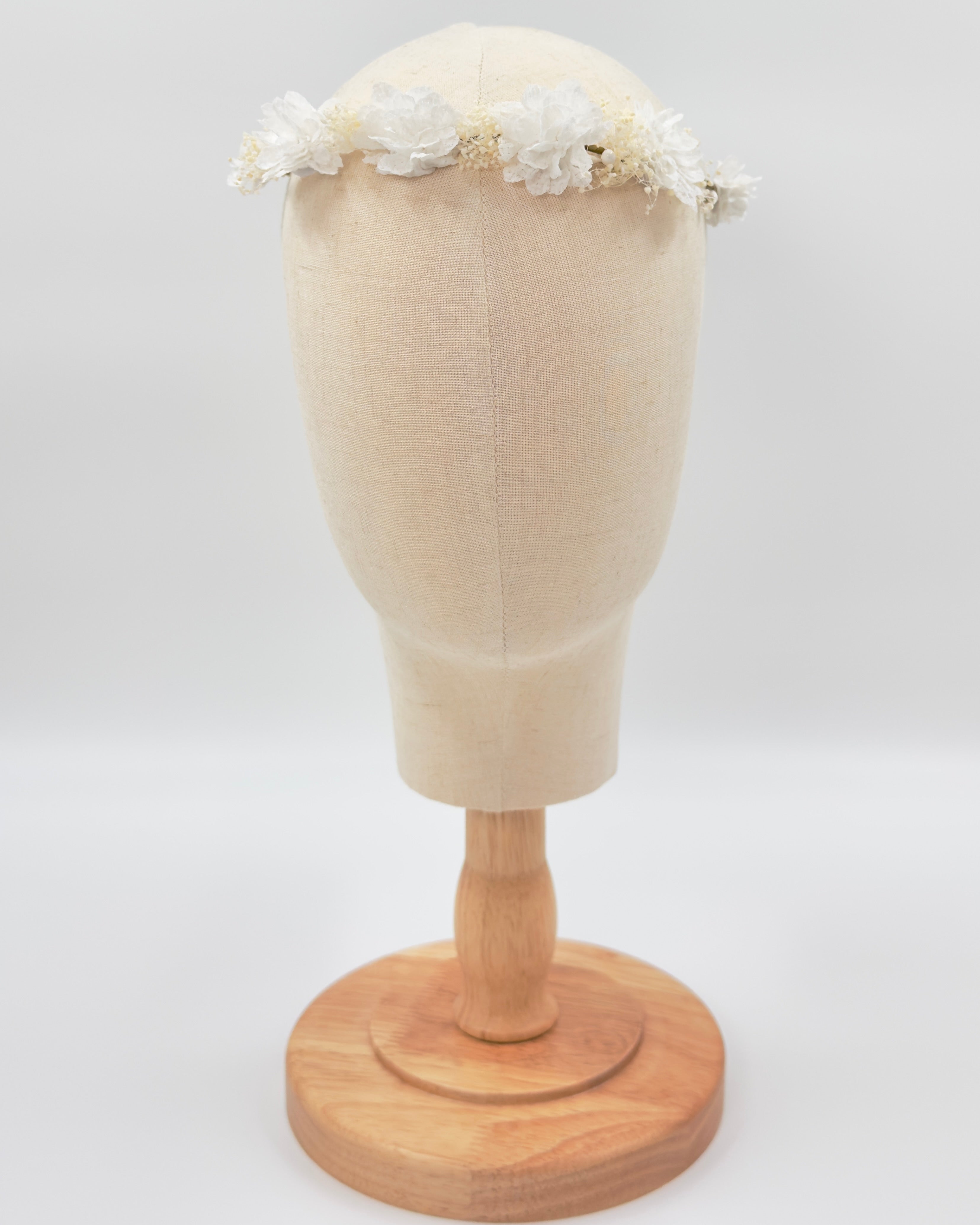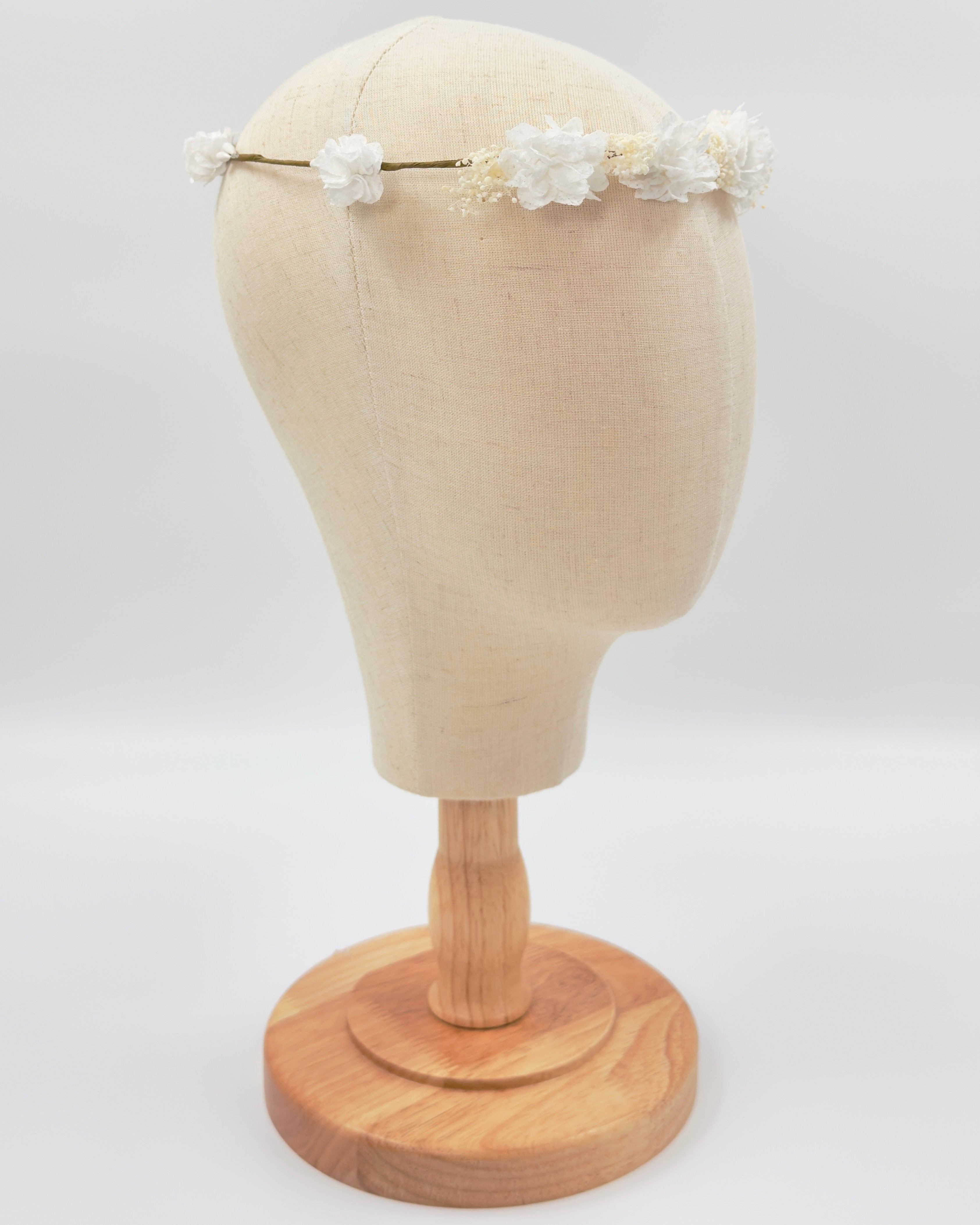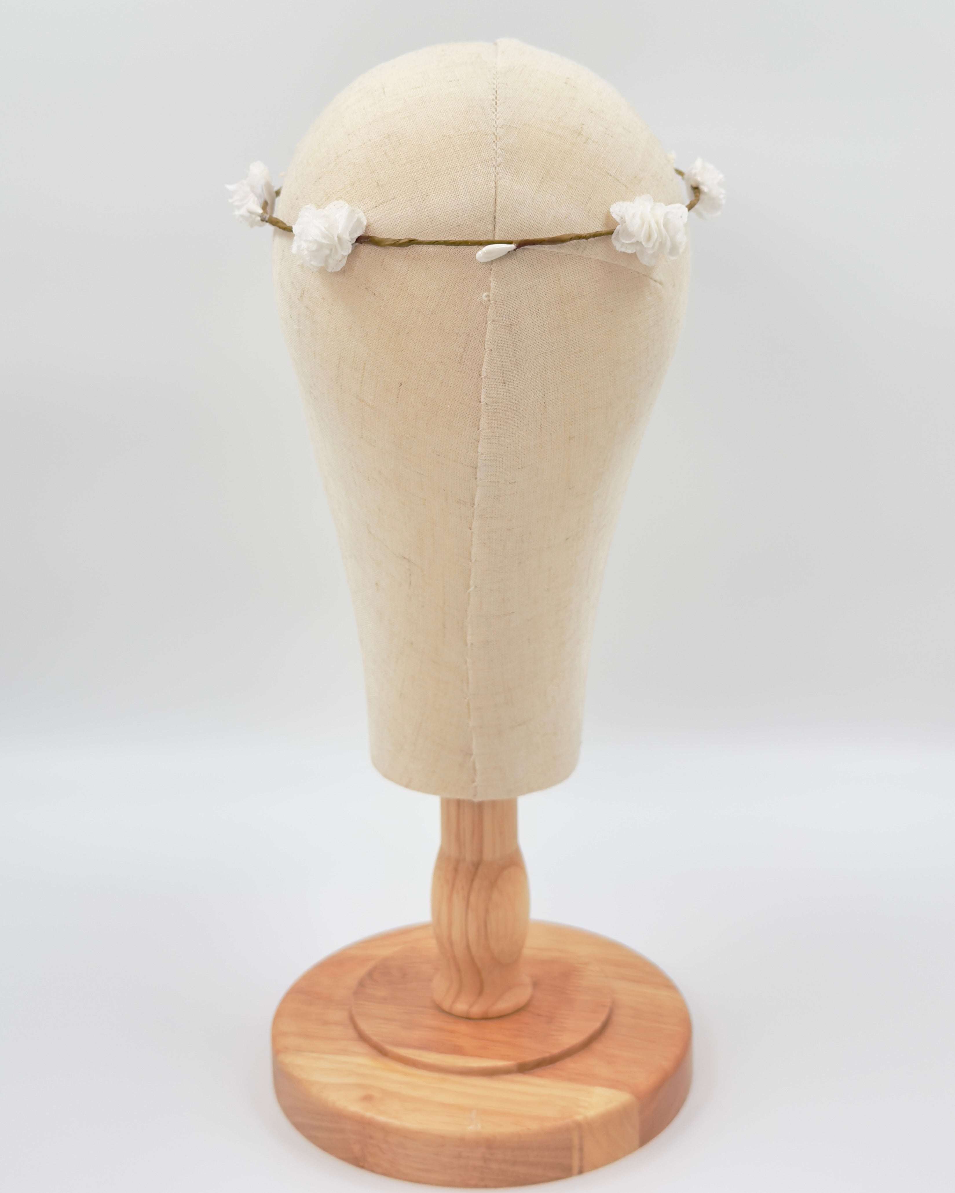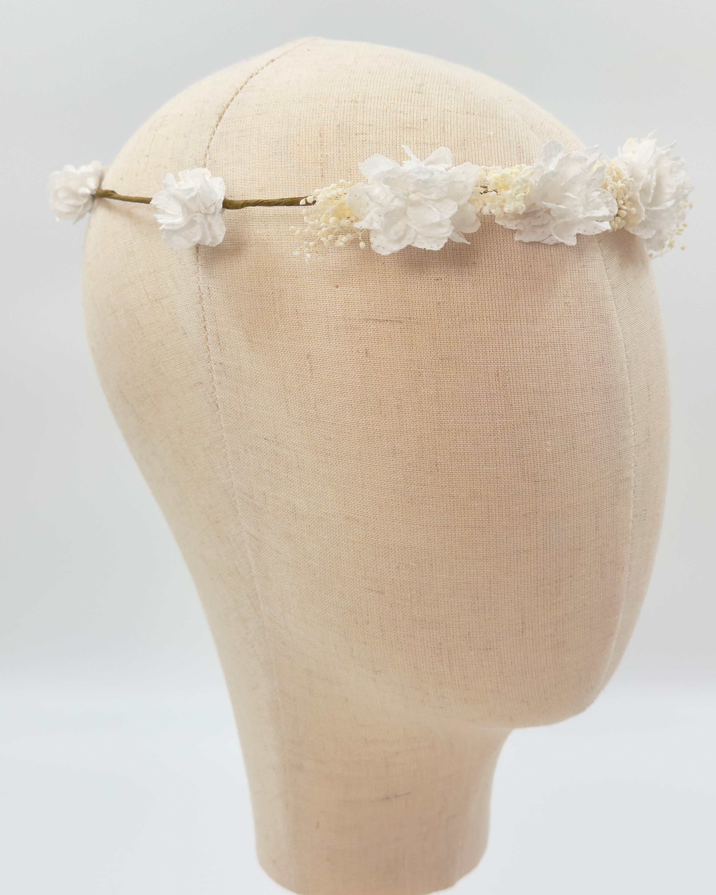 Gorgeous statement headpiece for girls, made with fabric flowers and natural details.