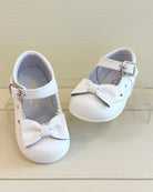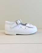 This White Mary Jane Shoe is a sweet and classic choice for little girls to wear on christenings, weddings, or other special occasions. Made in Spain from soft, high-quality leather, it features a charming bow on the front and delicate cut-out designs across the vamp. The flexible rubber sole ensures comfort and support, making it both practical and beautiful for memorable moments.
