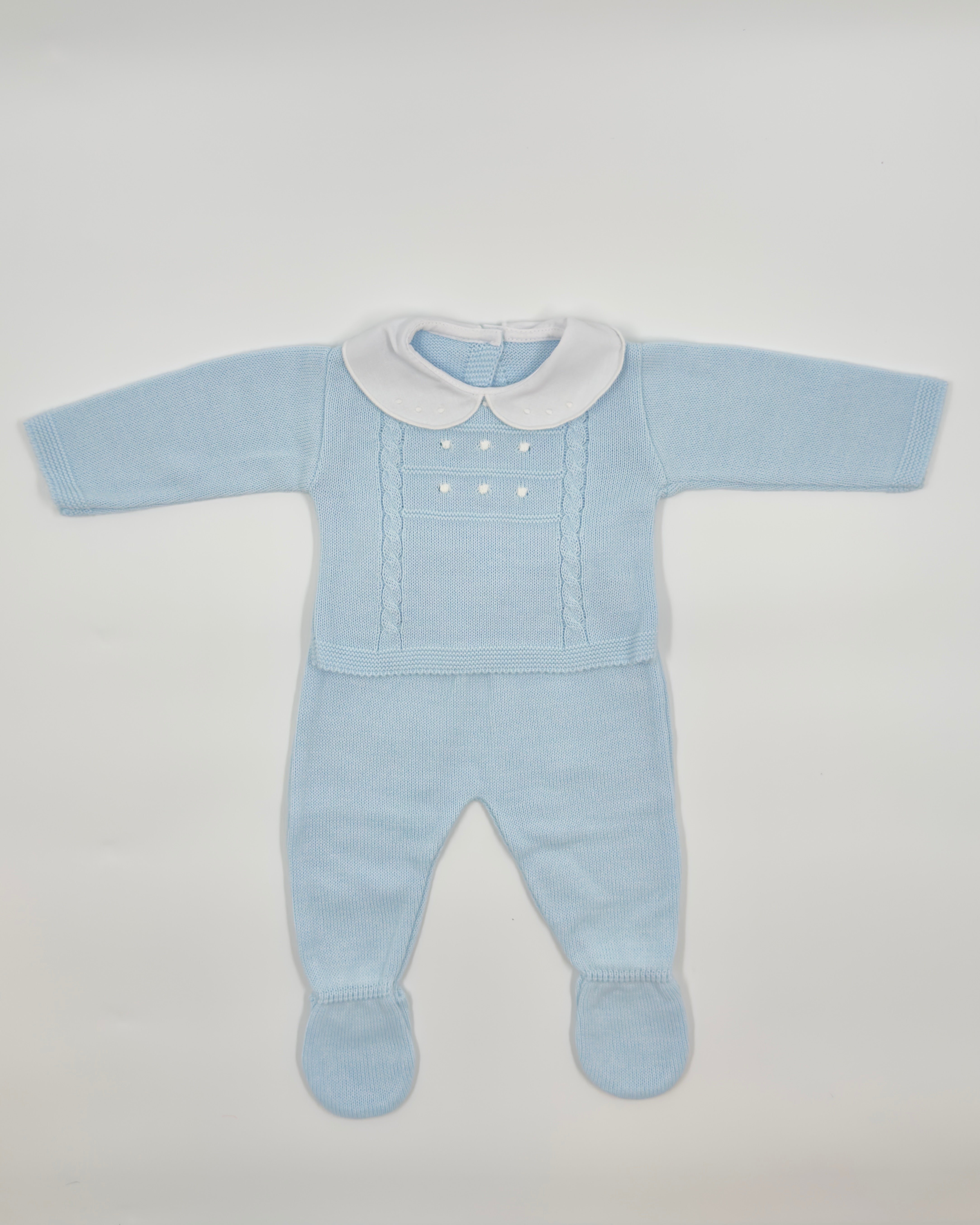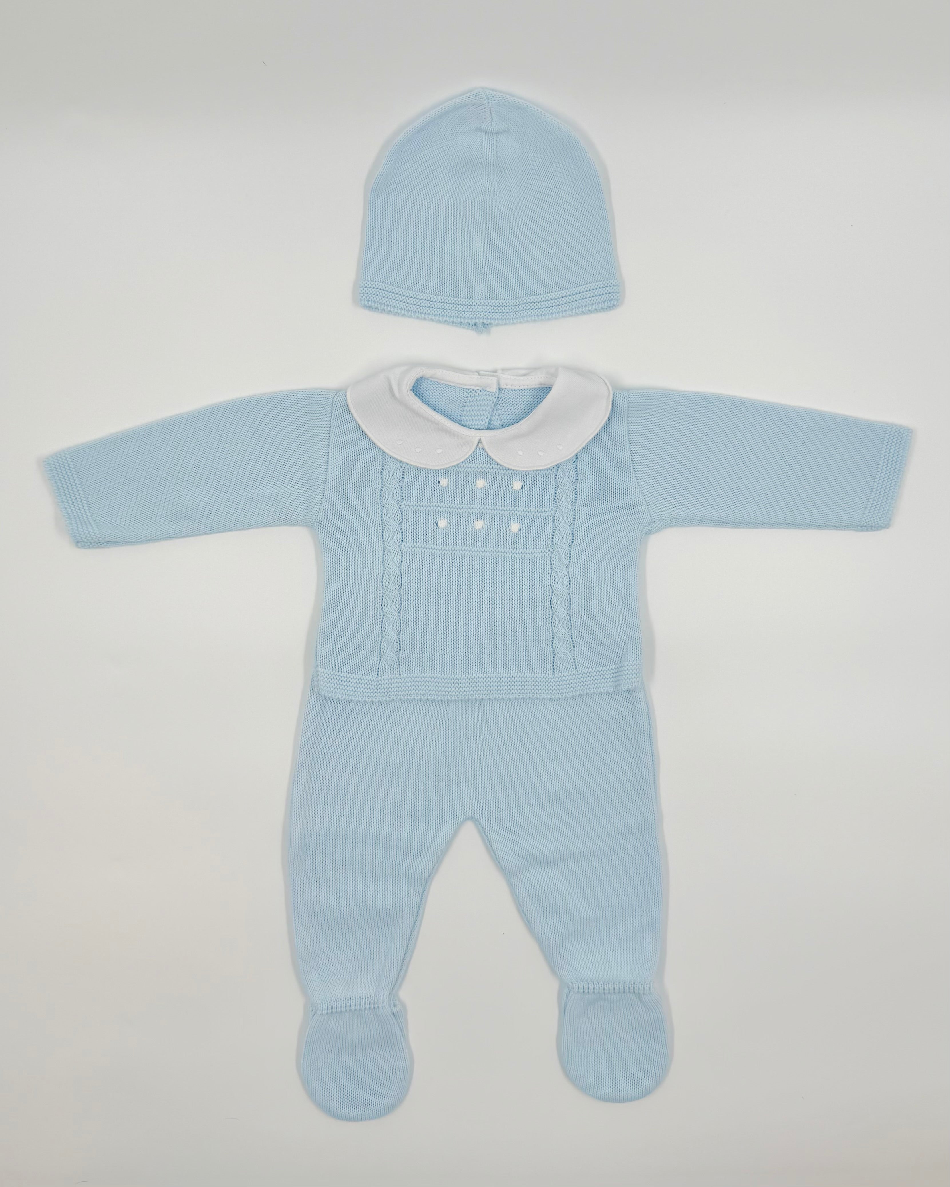 Baby Blue & Collar Newborn Knitted Outfit