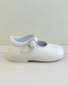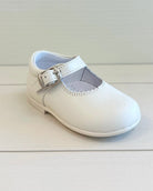 This Mary Jane Shoe in Off-White is a timeless and elegant option for little girls, perfect for special occasions and formal celebrations. Expertly handcrafted in Spain from soft, high-quality leather, it features a classic strap design and a flexible rubber sole for all-day comfort and support. Ideal for Christenings, weddings, and parties, this versatile shoe pairs beautifully with any dressy outfit.