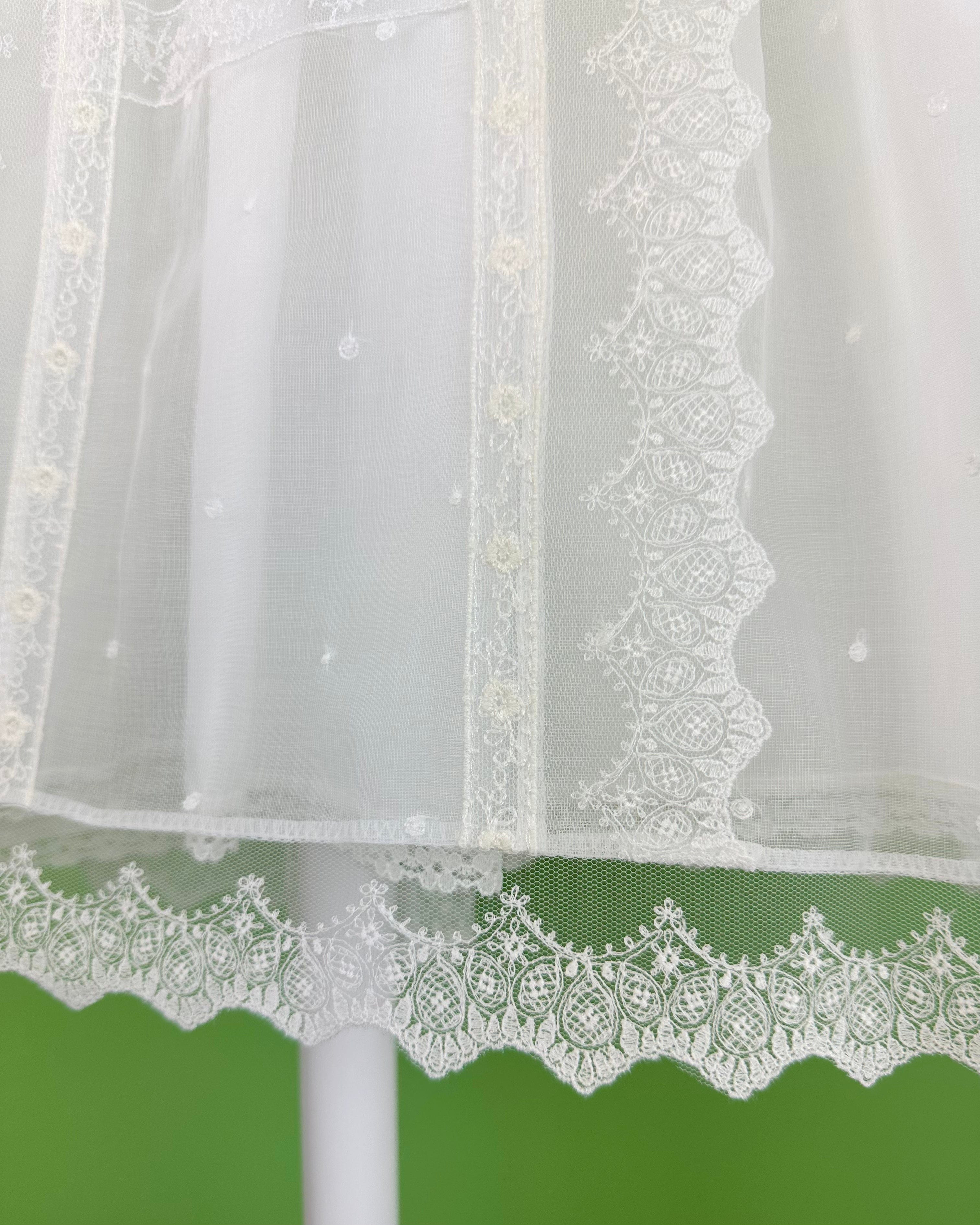 The Samantha dress is a timeless and elegant choice for baby girls, designed to make special moments even more memorable. Crafted from soft white organza with subtle polka dots and delicate lace accents, it features a classic silhouette that’s both graceful and refined. Complete with a matching bonnet, Samantha is perfect for christenings, birthdays, and other cherished occasions.