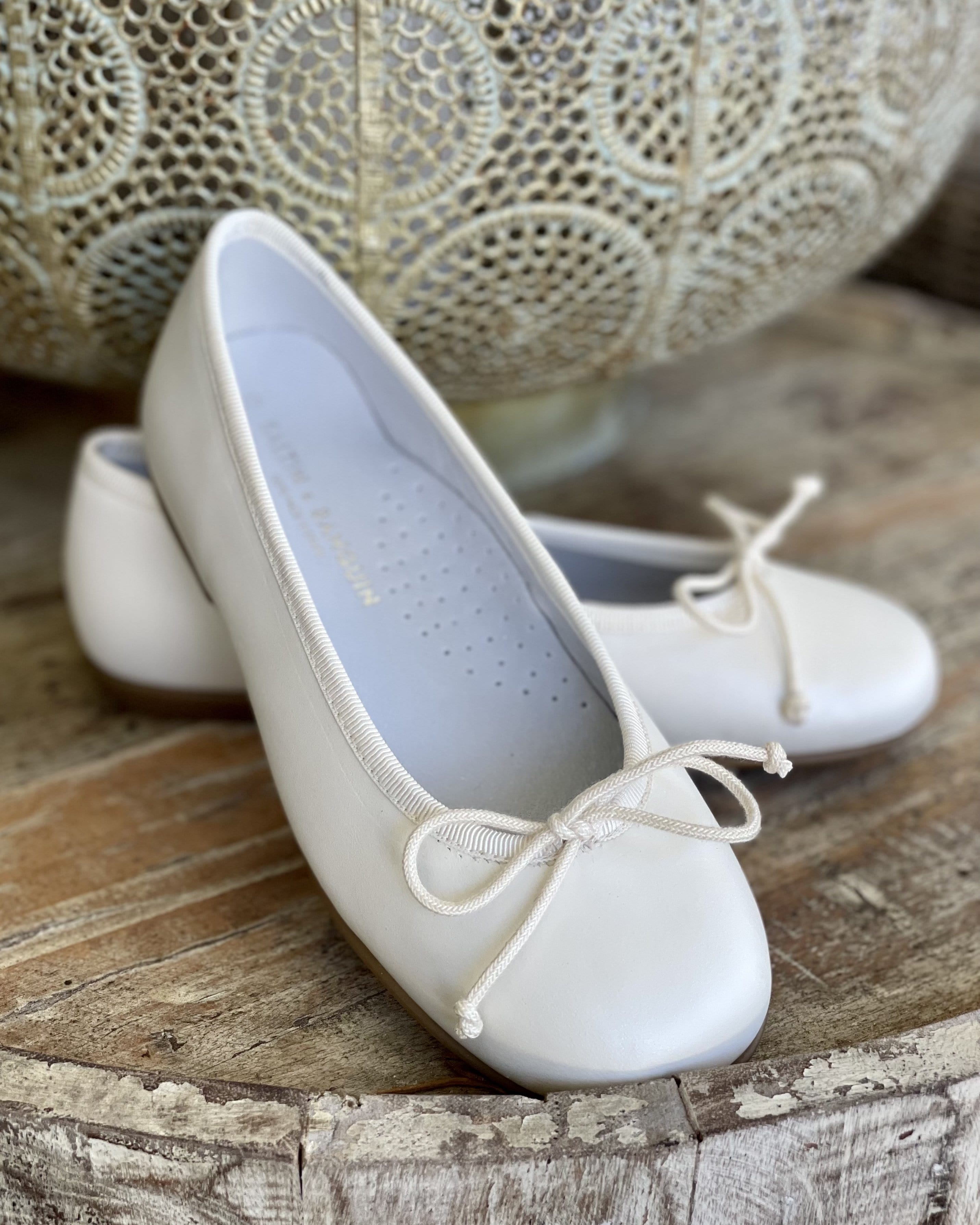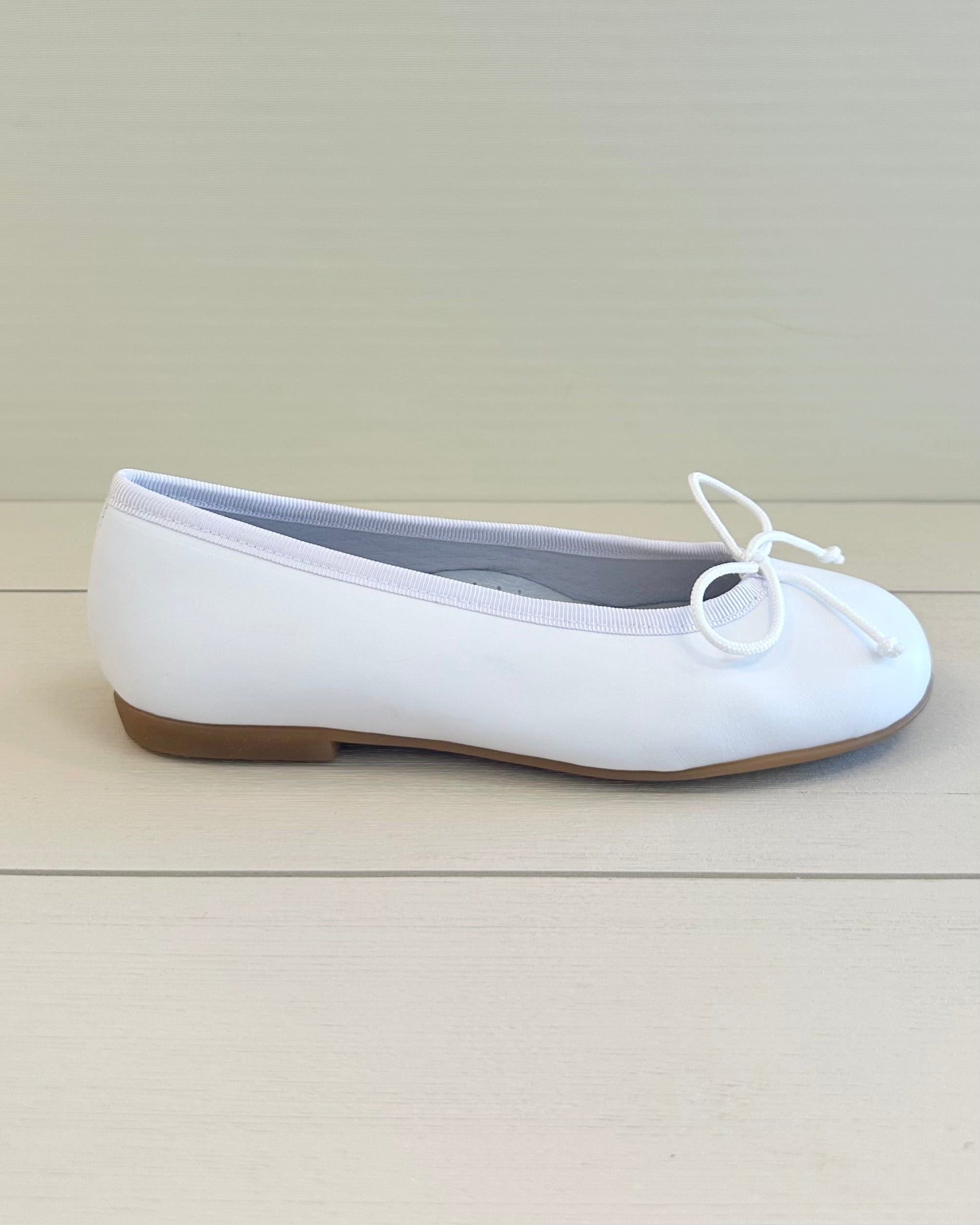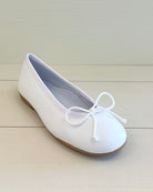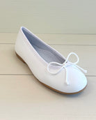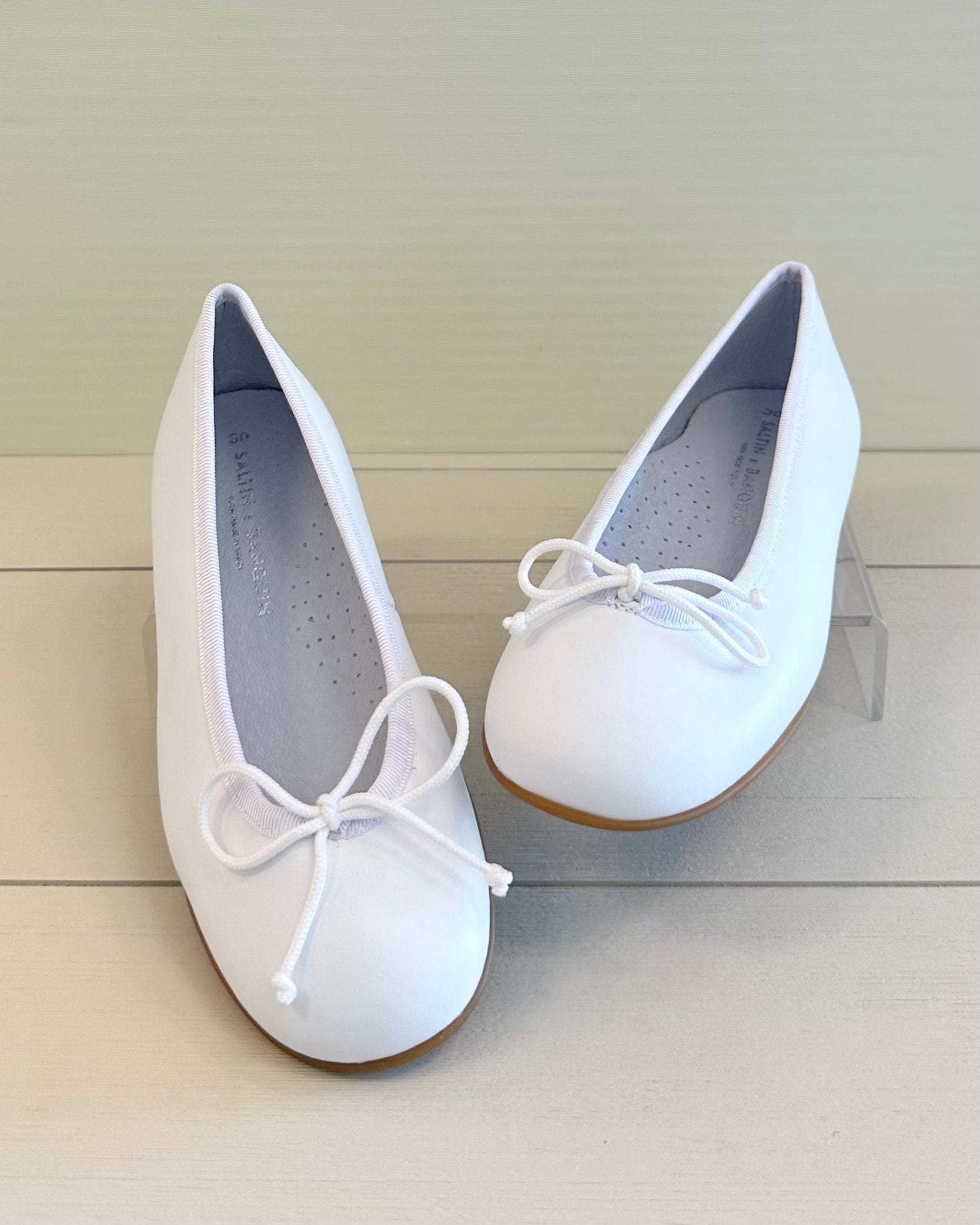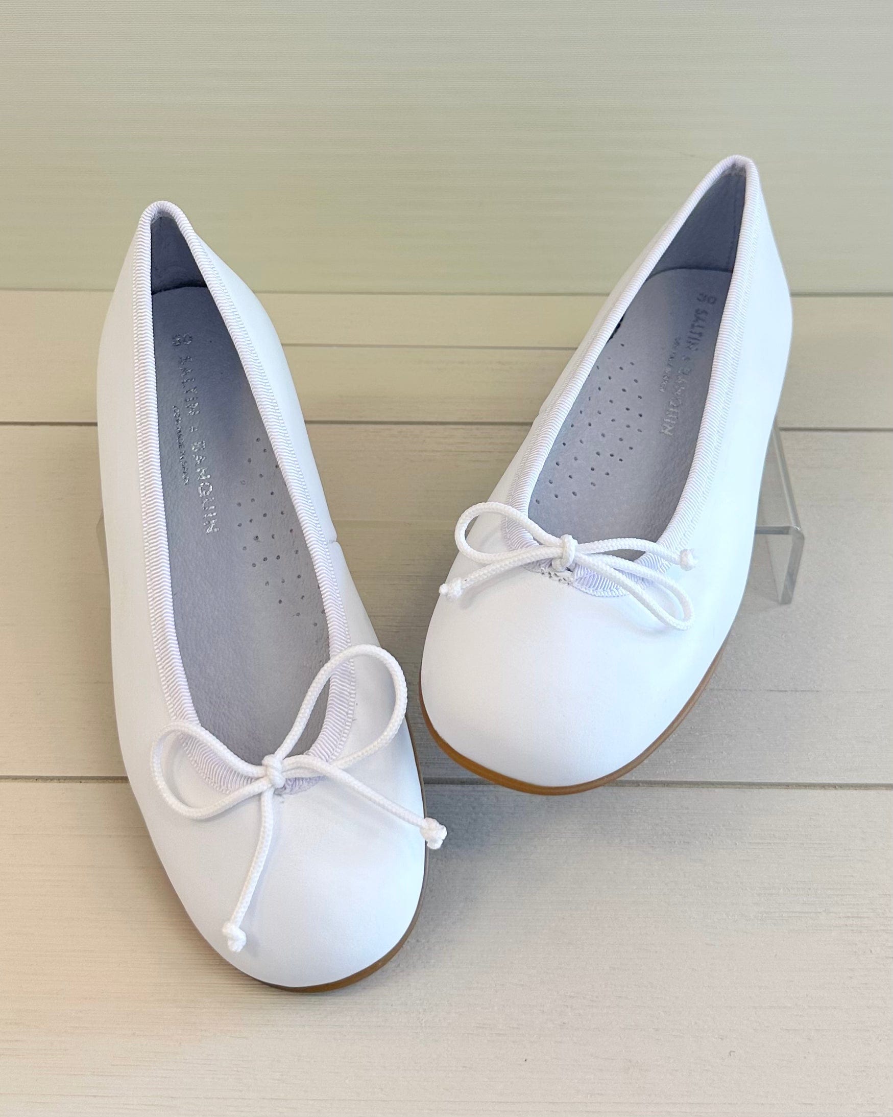 Our White Ballerina Flat Shoes are a classic and graceful choice for girls to wear on special occasions. Beautifully handcrafted in Spain from soft genuine leather, these flats feature a sleek, timeless design and a flexible rubber sole for comfort and durability. Perfect for First Communion, weddings, or formal celebrations, they add the perfect finishing touch to any elegant outfit.