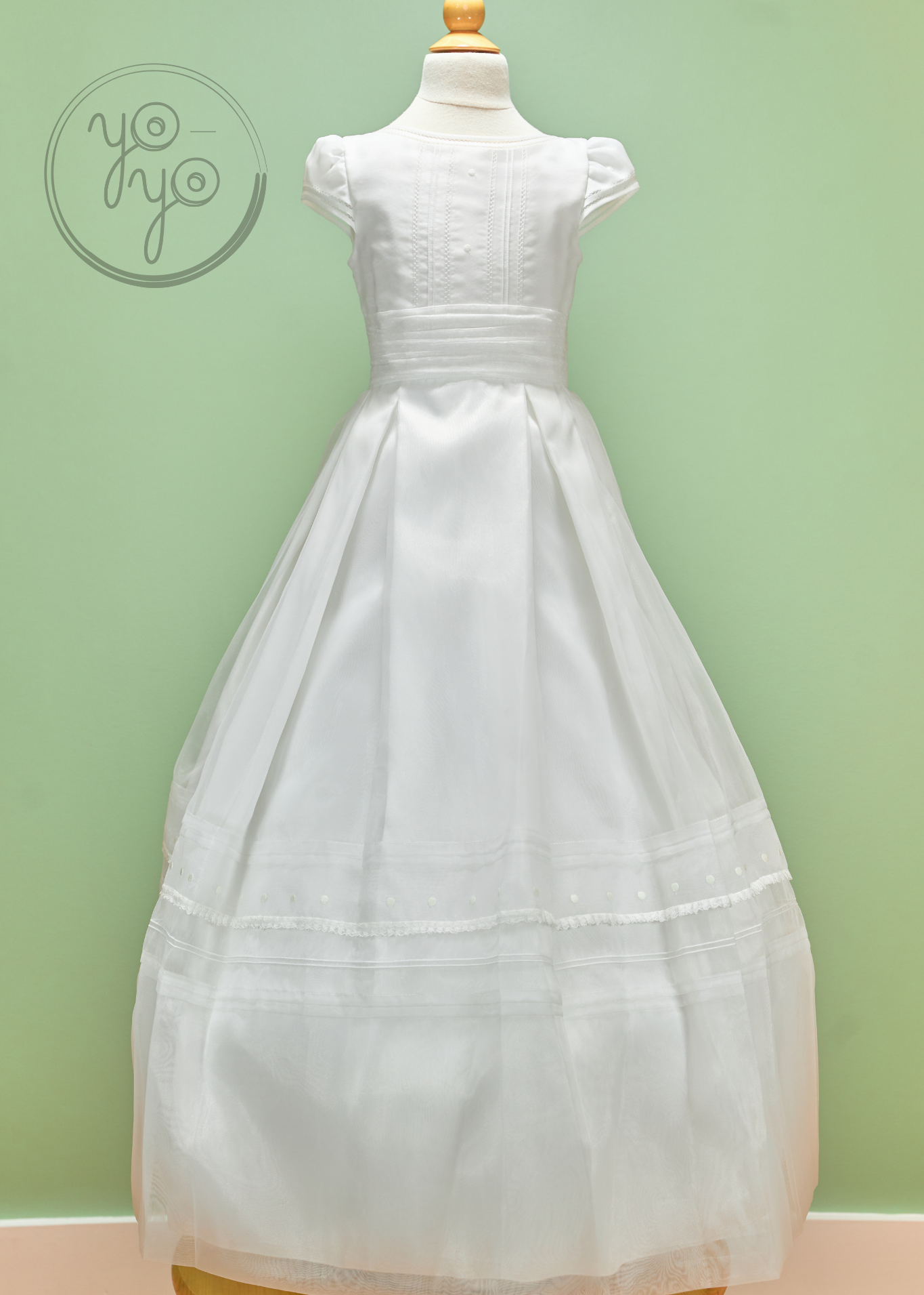 The pleated skirt showcases fine detailing with pleats and lace, creating a refined silhouette that balances tradition with youthful sweetness. Calendula is a classic and elegant choice, designed to be cherished.