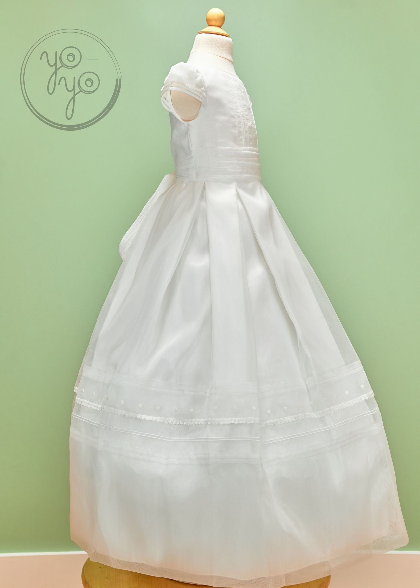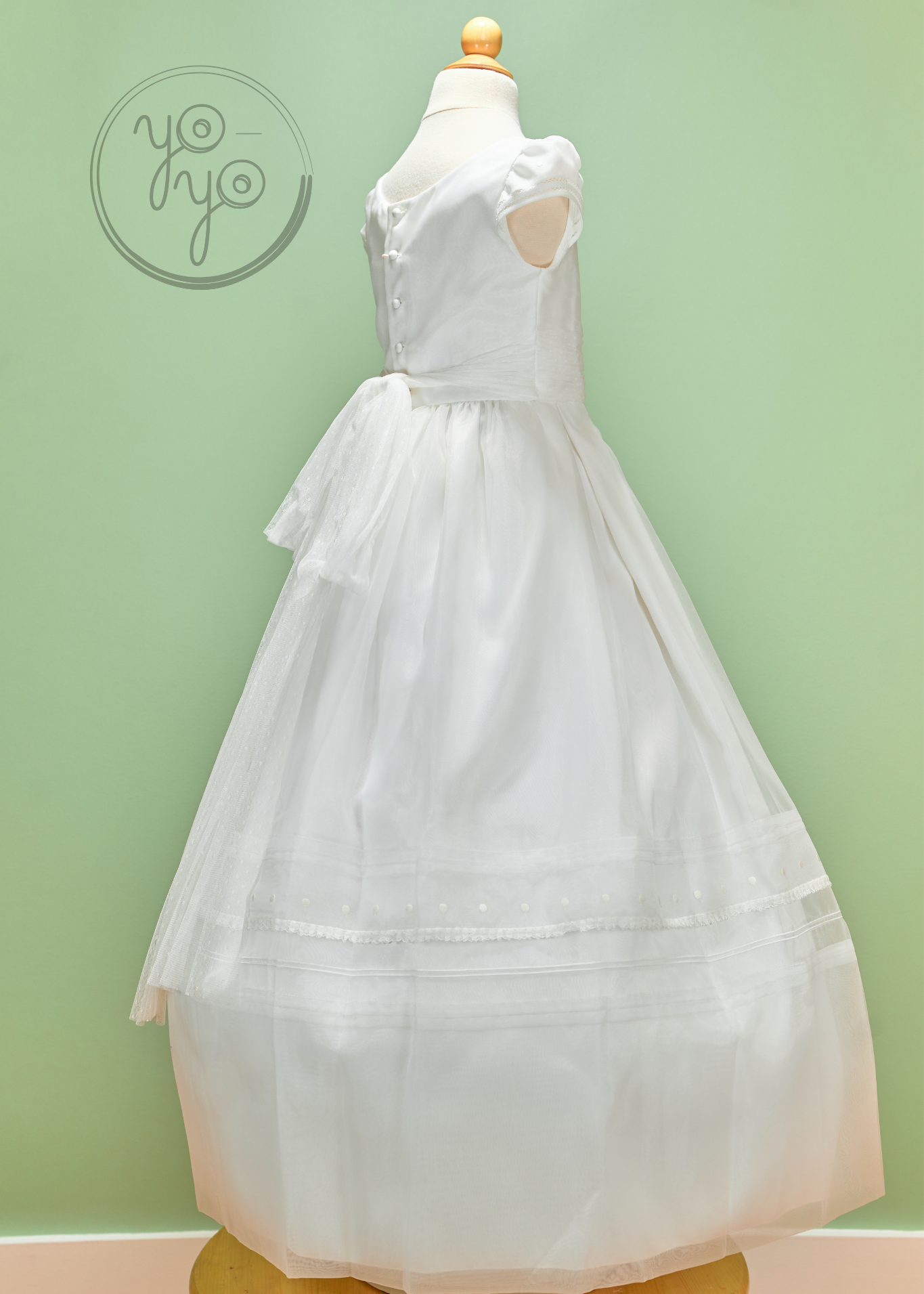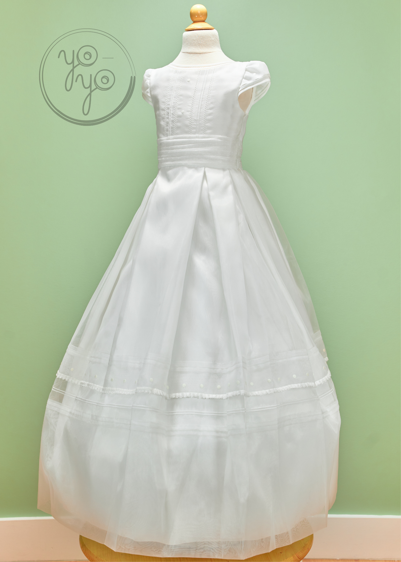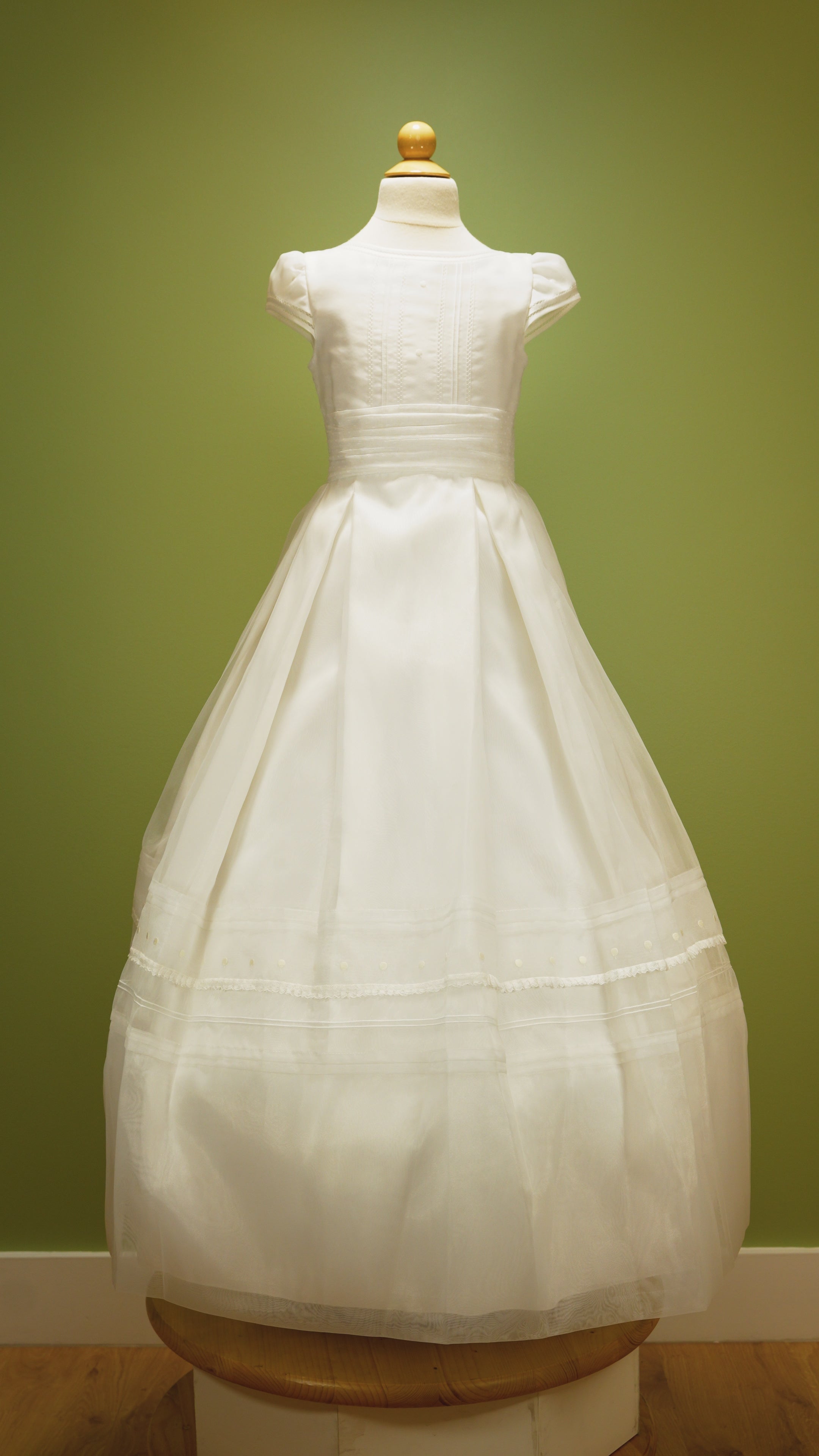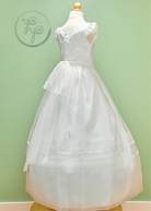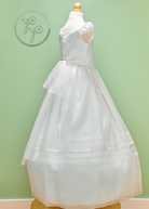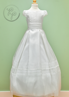 The Calendula First Communion Dress is a charming mix of classic tradition and modern elegance. Crafted in lightweight off-white organza, it is both timeless and comfortable, perfect for her big day.