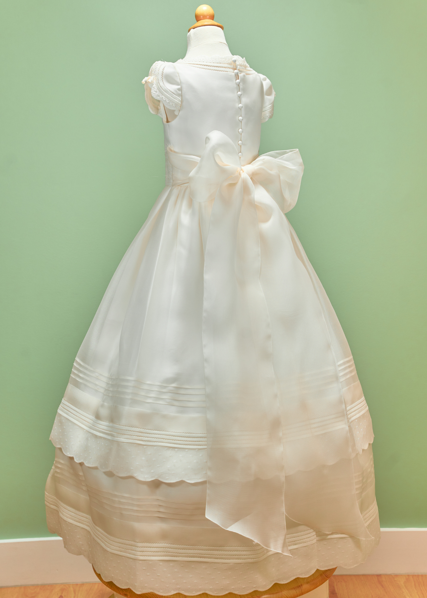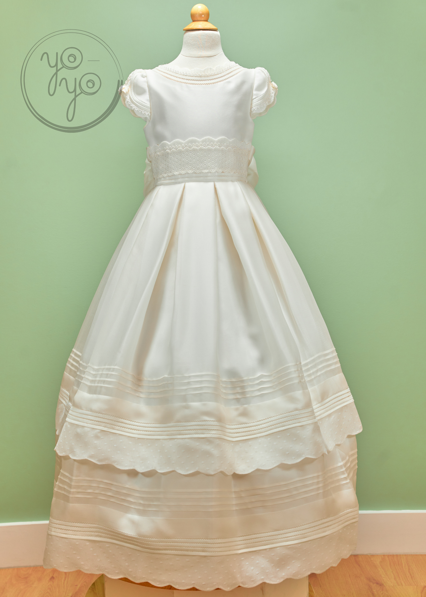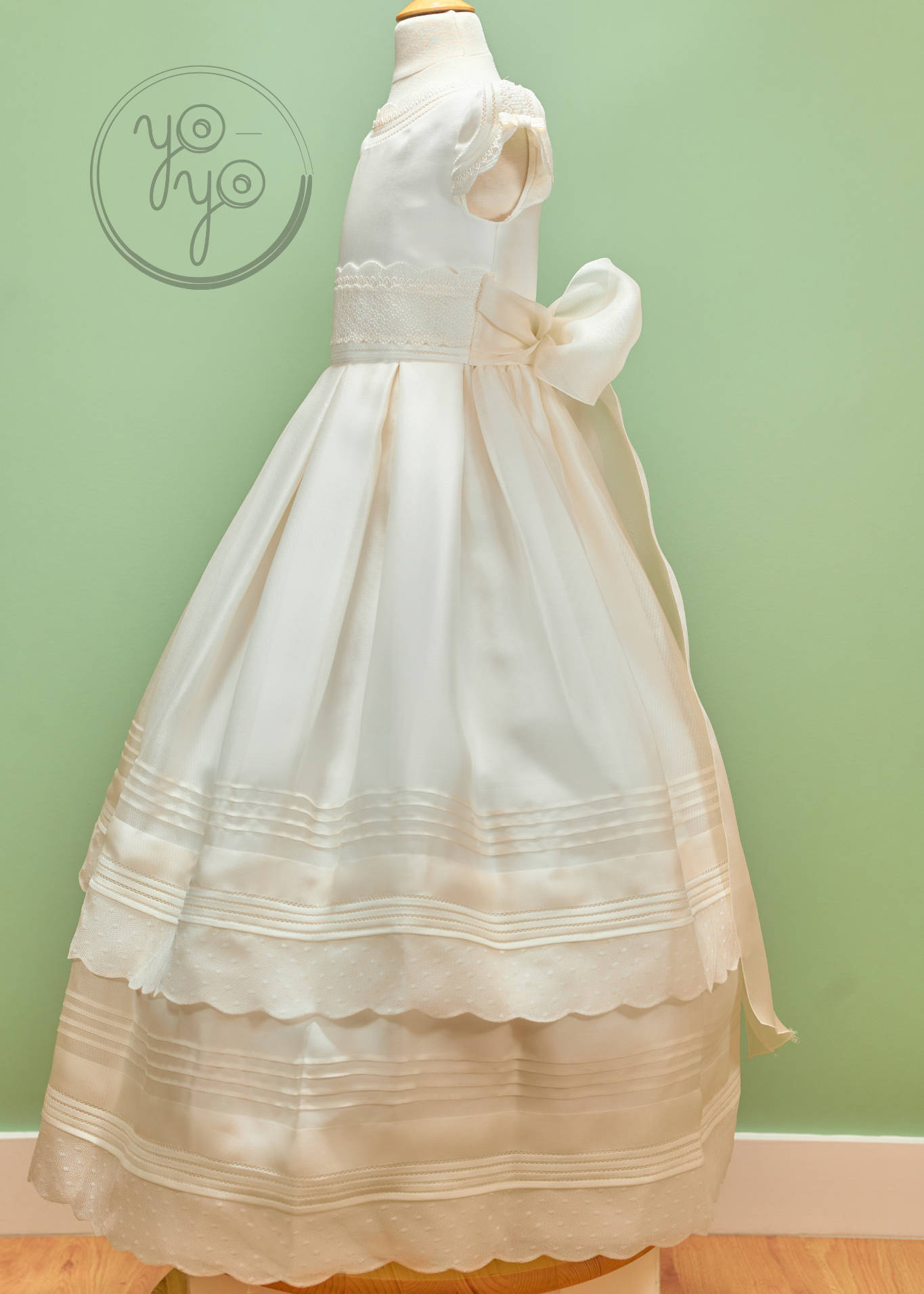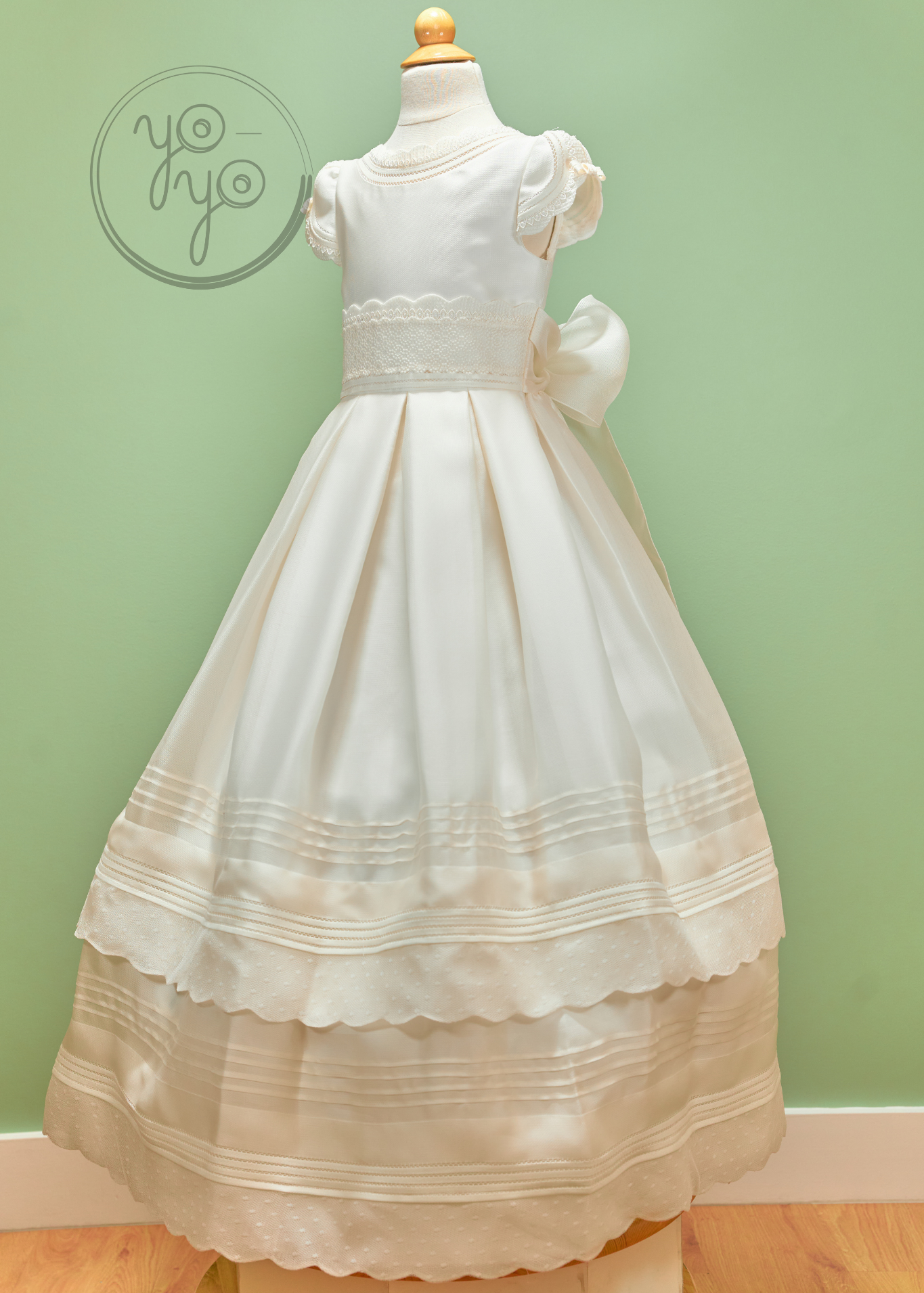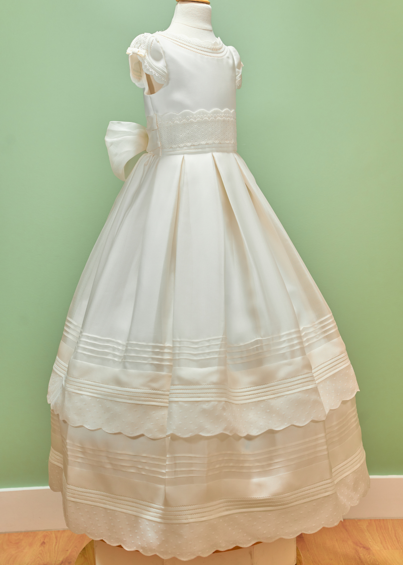 Kinabalu is a true masterpiece of Spanish craftsmanship, perfect for families seeking a Communion dress that combines traditional artistry with exquisite detail.