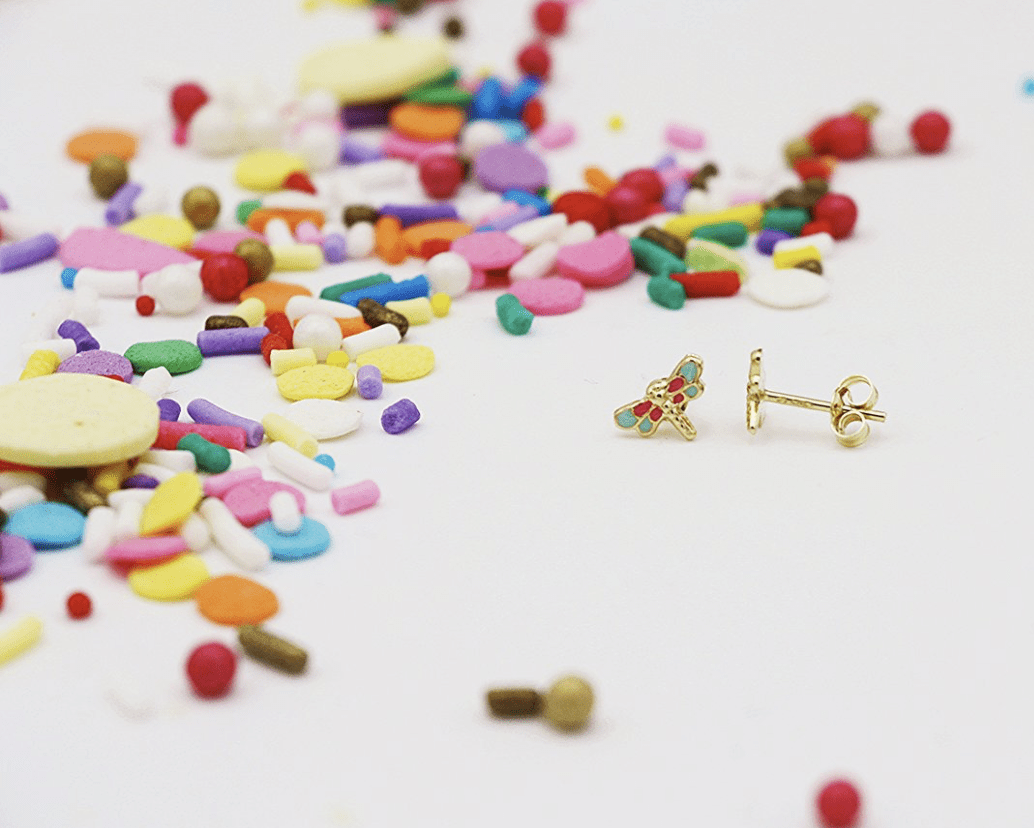 Dragonfly Enamel 18kt Yellow Gold Stud