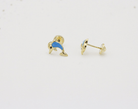 Blue Dolphin Enamel 18kt Yellow Gold Stud