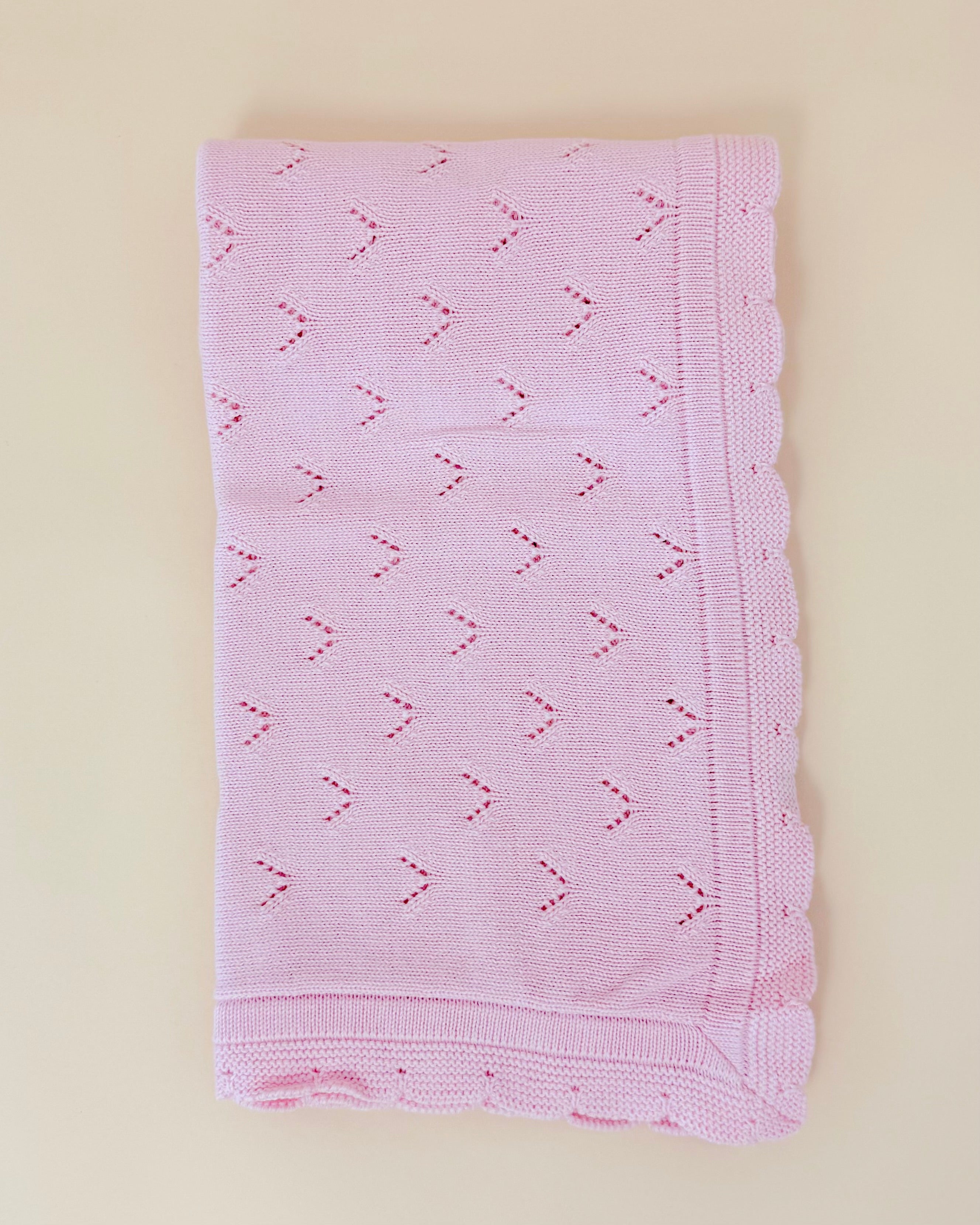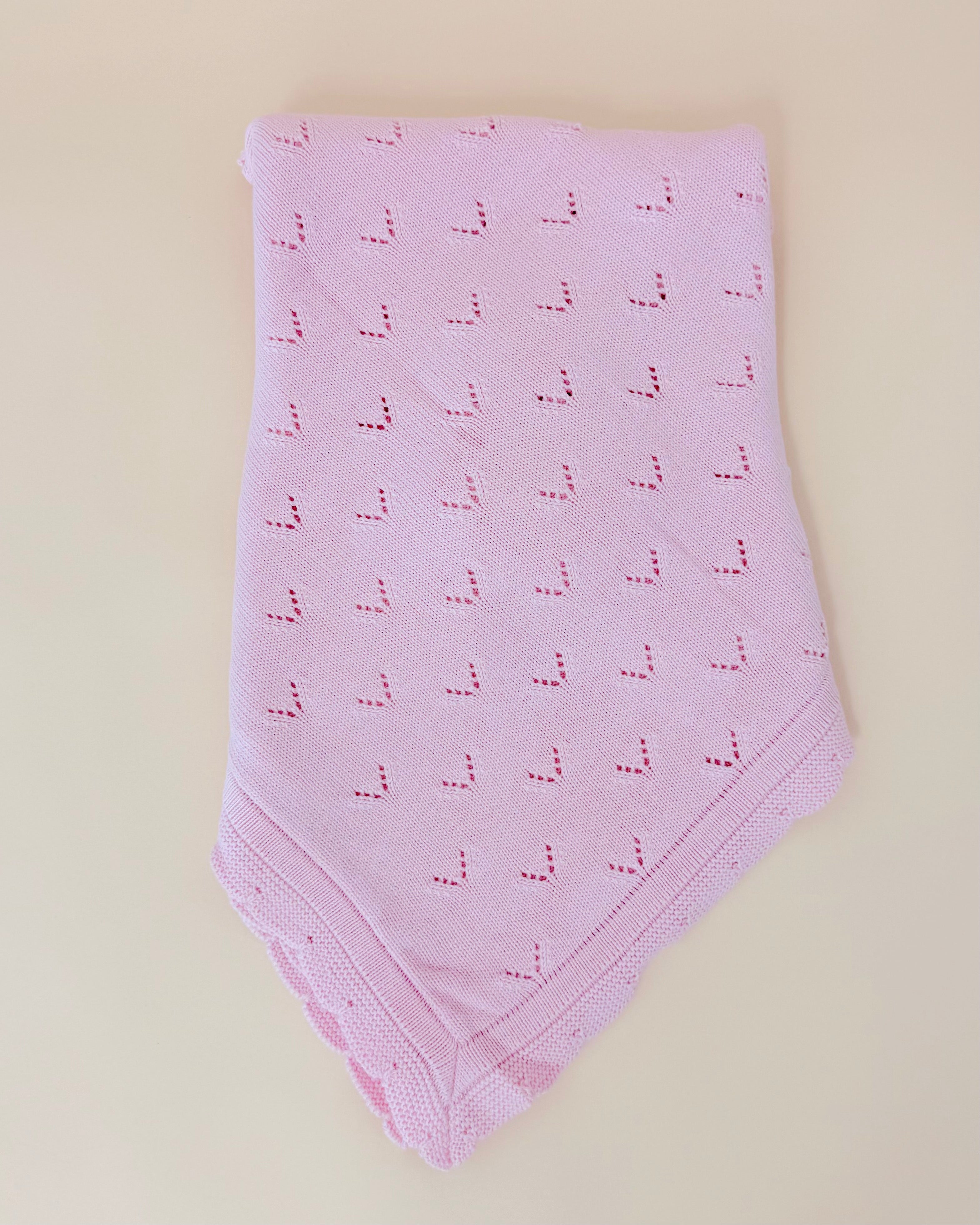 Soft, delicate, and full of charm, this pink knitted baby blanket is a beautiful essential for a newborn’s first days. Expertly handcrafted in Portugal, it’s made from gentle, breathable yarn—perfect for keeping your baby warm and cozy.