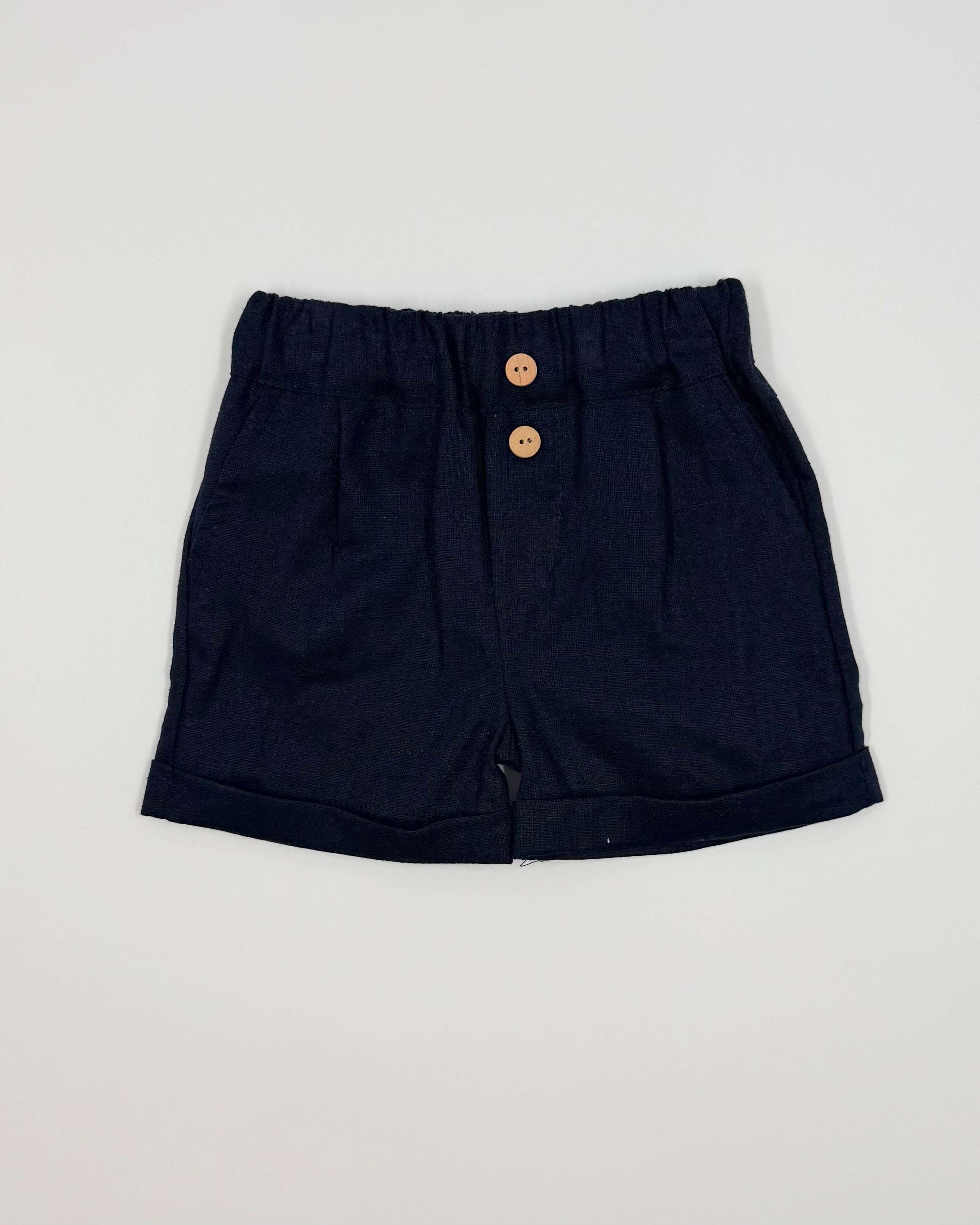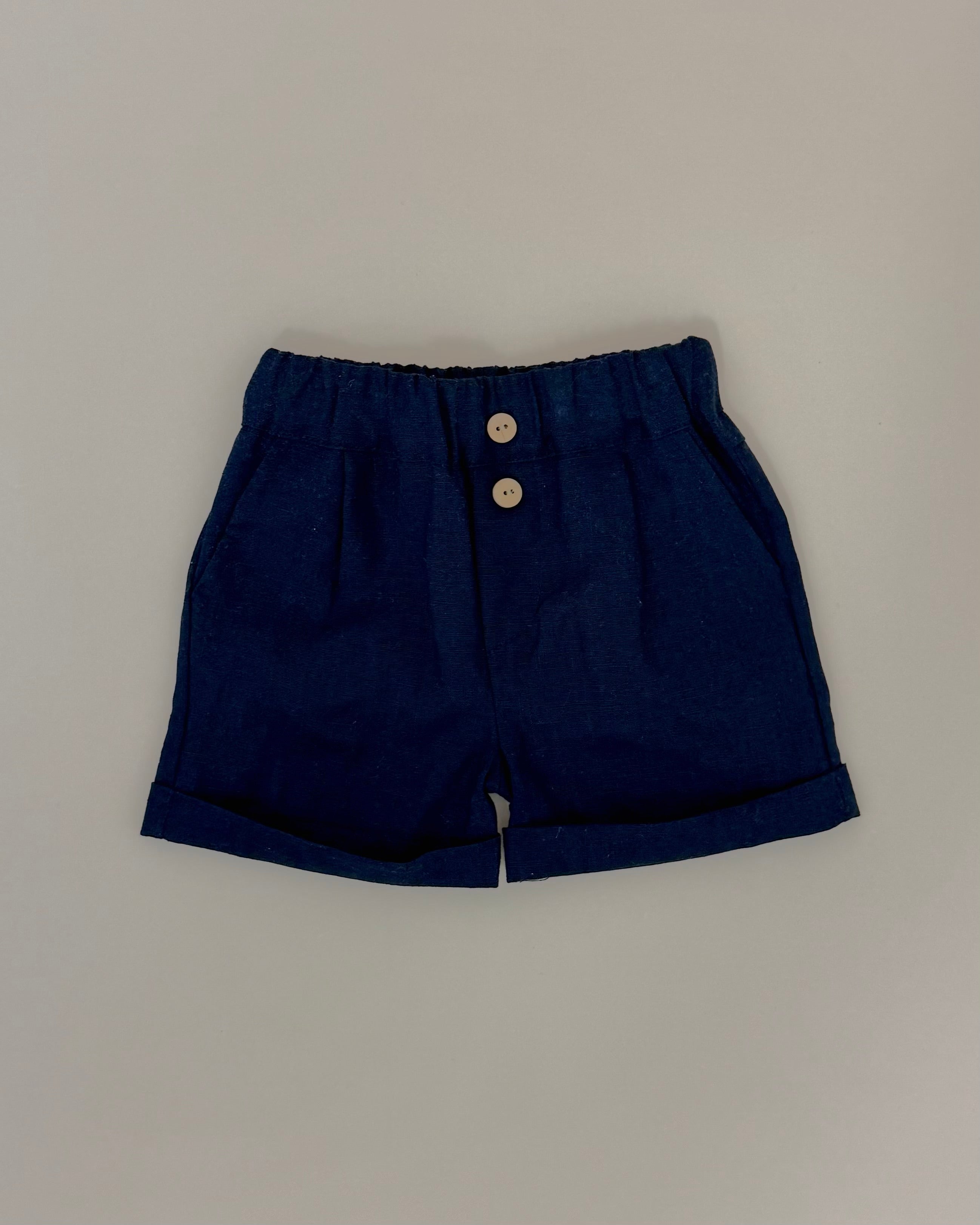 Paired with navy blue shorts, this outfit strikes the perfect balance between comfort and sophistication—ideal for special occasions, family gatherings, or stylish everyday wear.