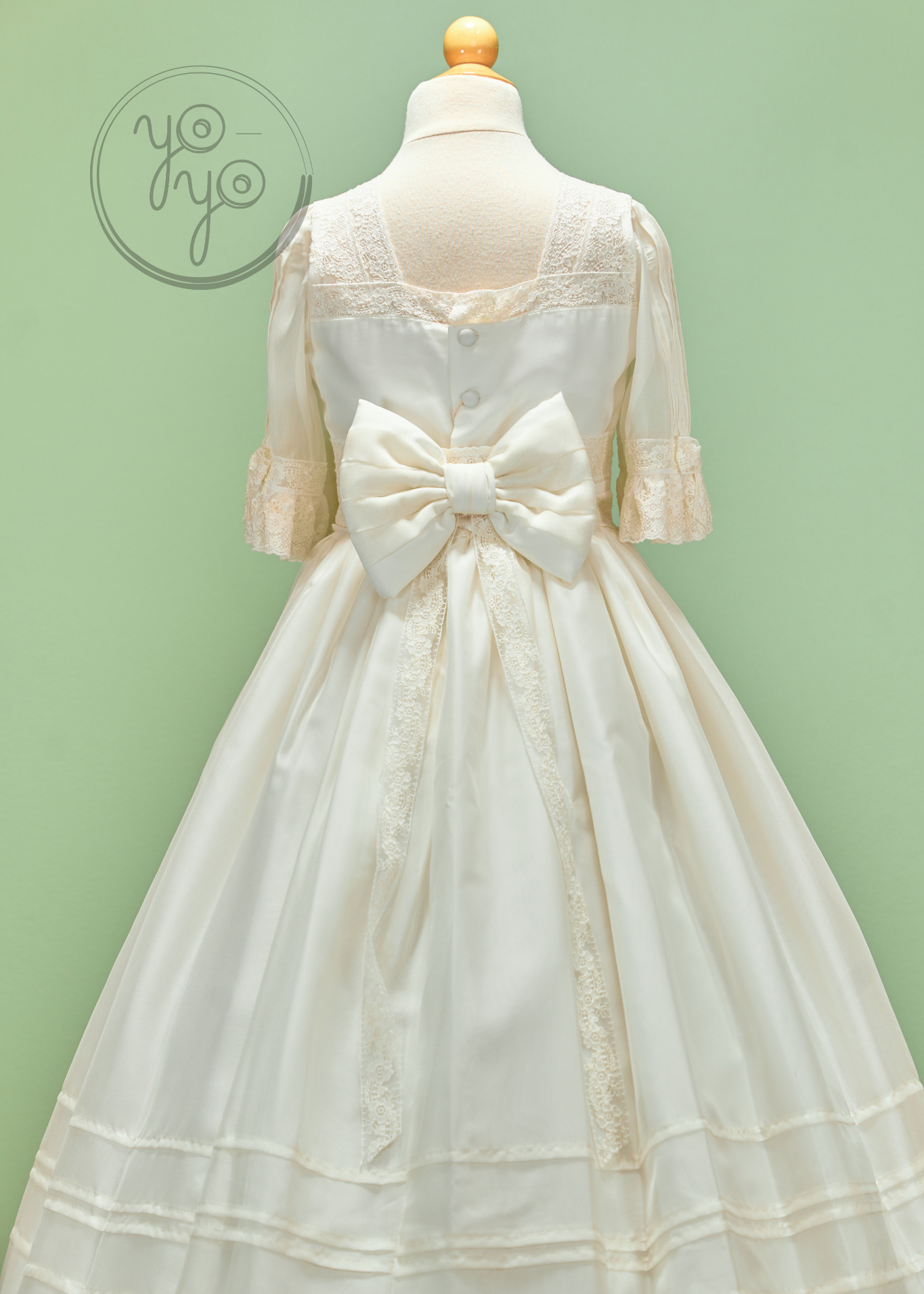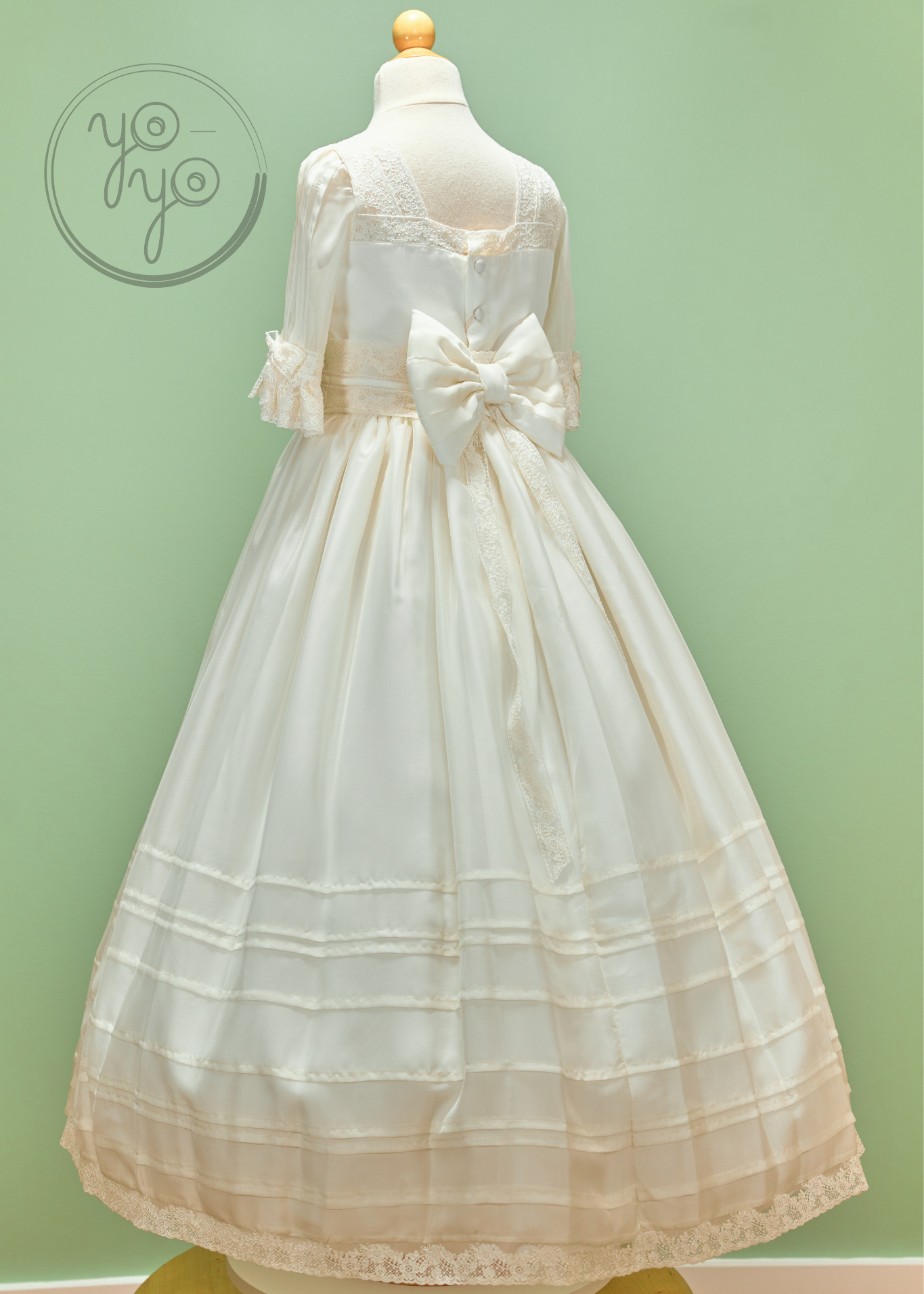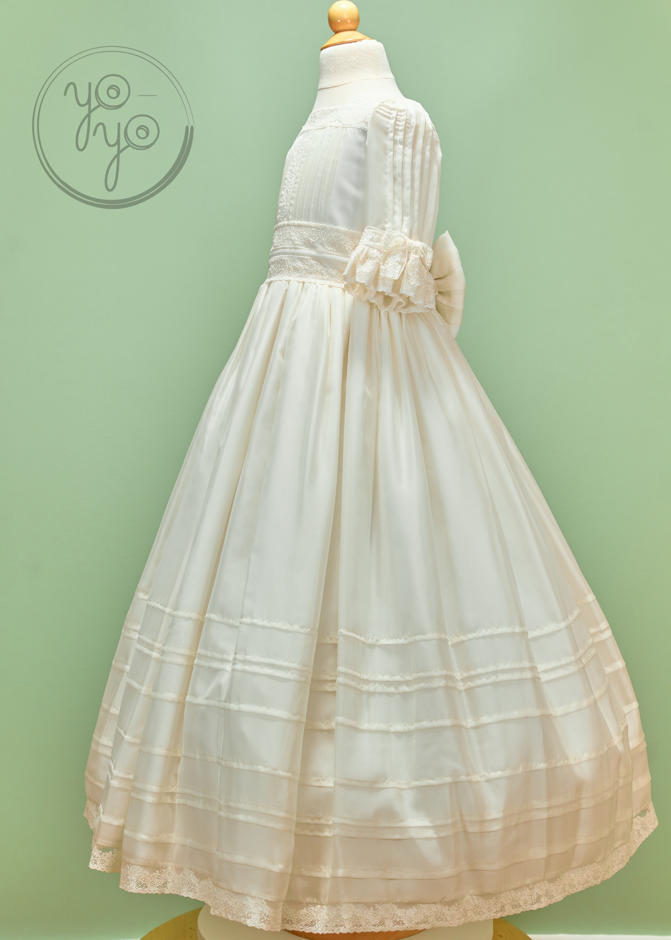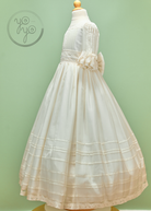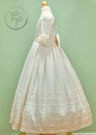 The Anna First Communion Dress is a traditional and timeless gown, handcrafted in exquisite off-white silk organdy. Lightweight yet structured, it is a refined choice for her most meaningful day.