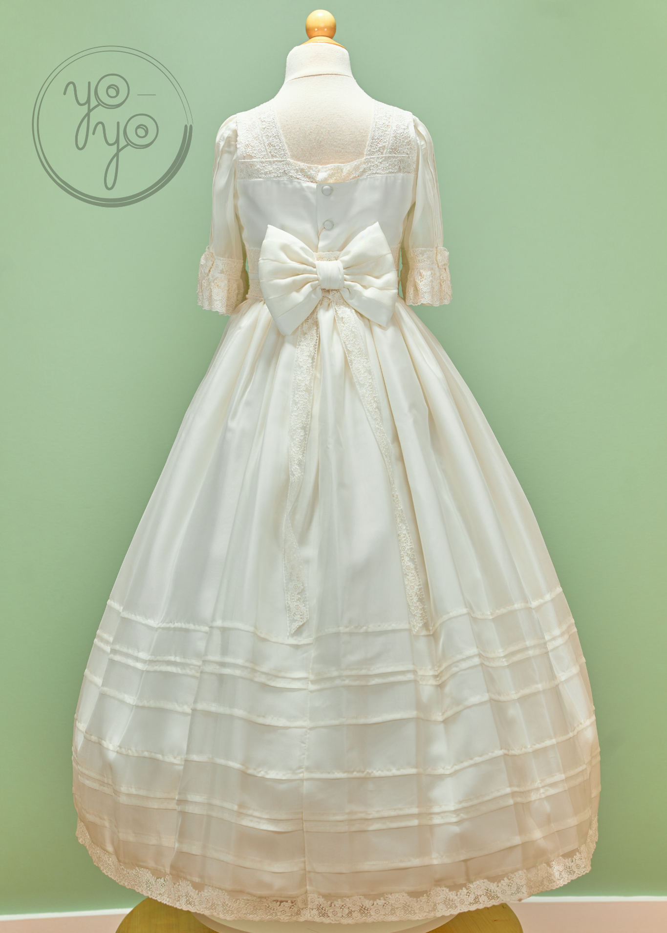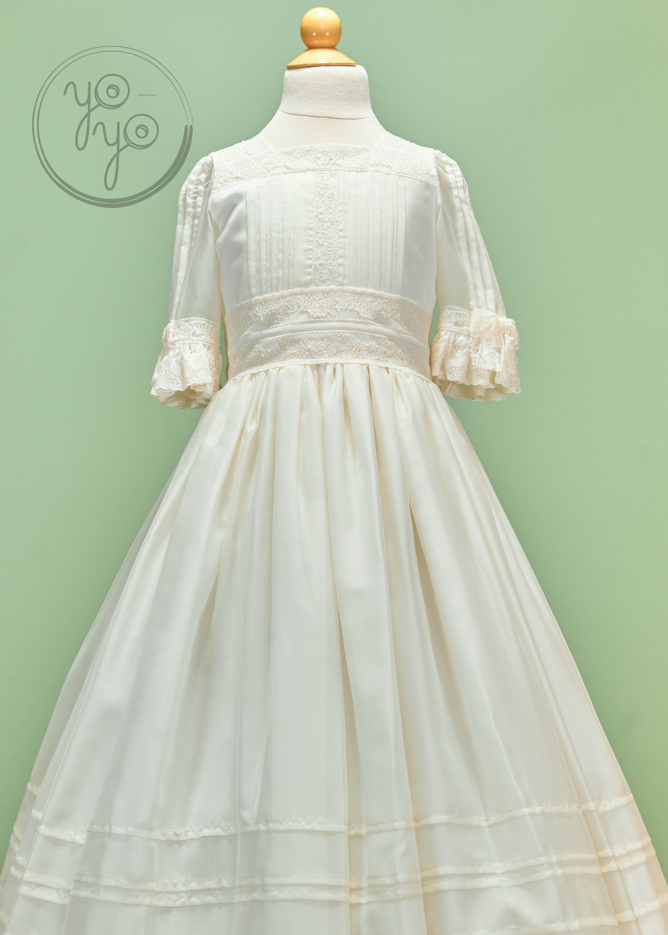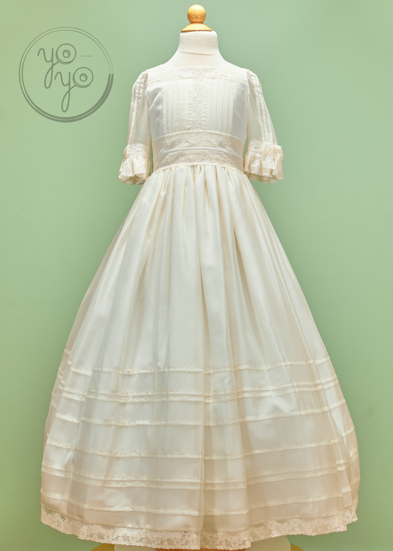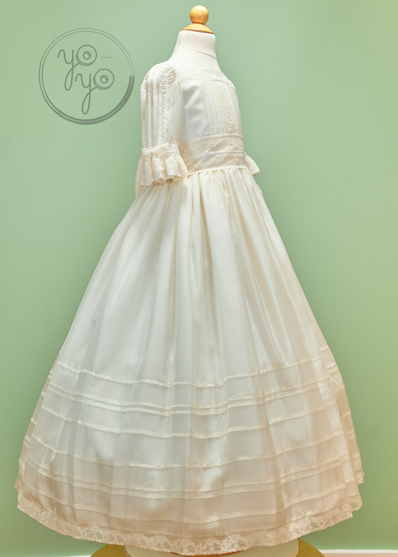 The Anna First Communion Dress is a traditional and timeless gown, handcrafted in exquisite off-white silk organdy. Lightweight yet structured, it is a refined choice for her most meaningful day.