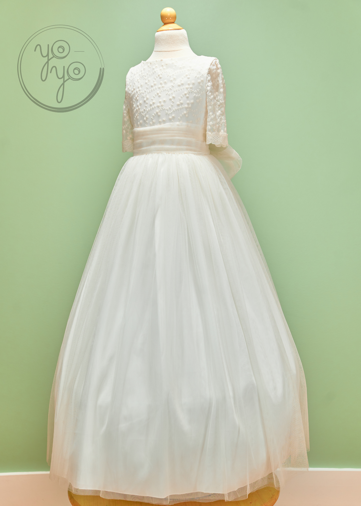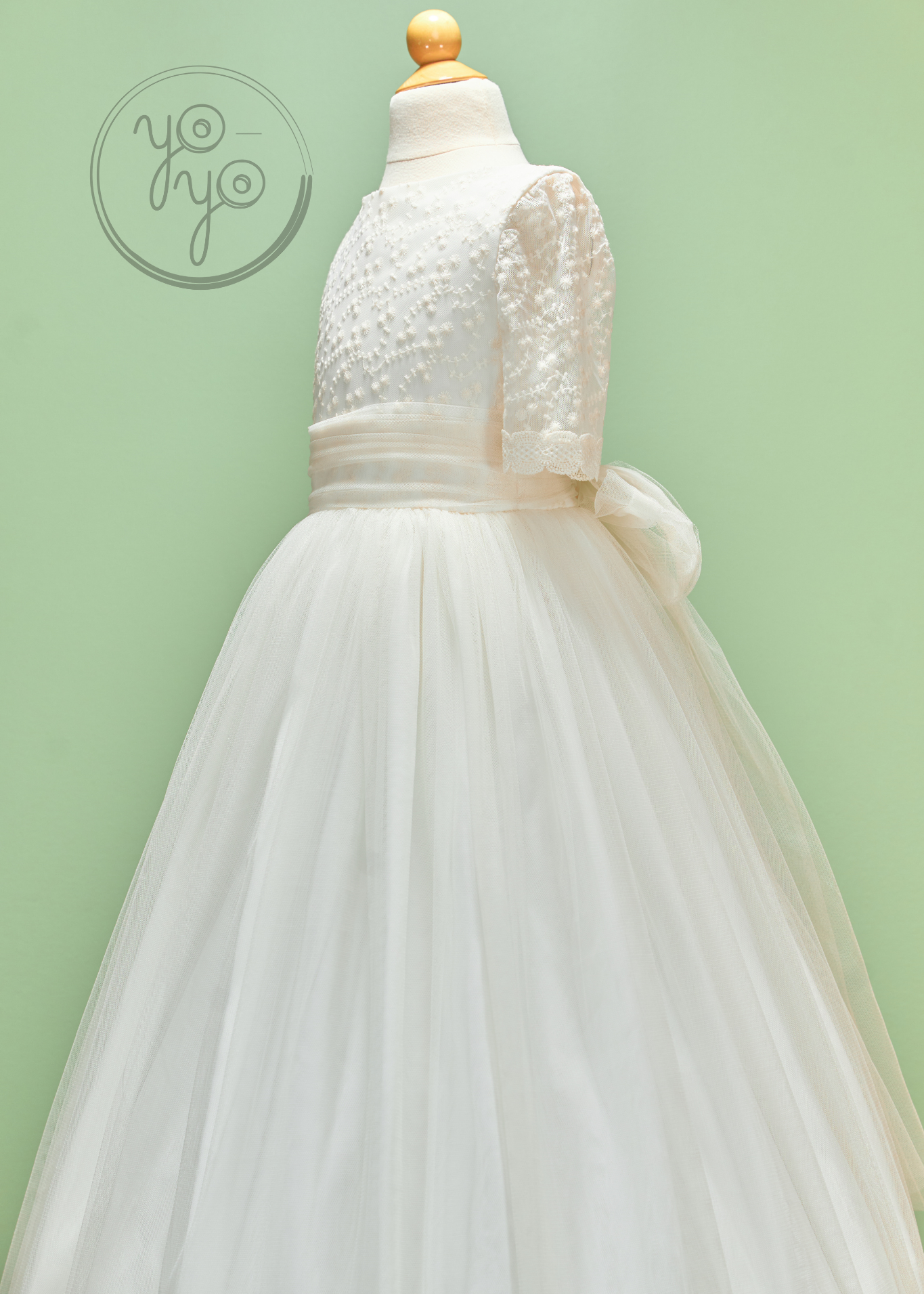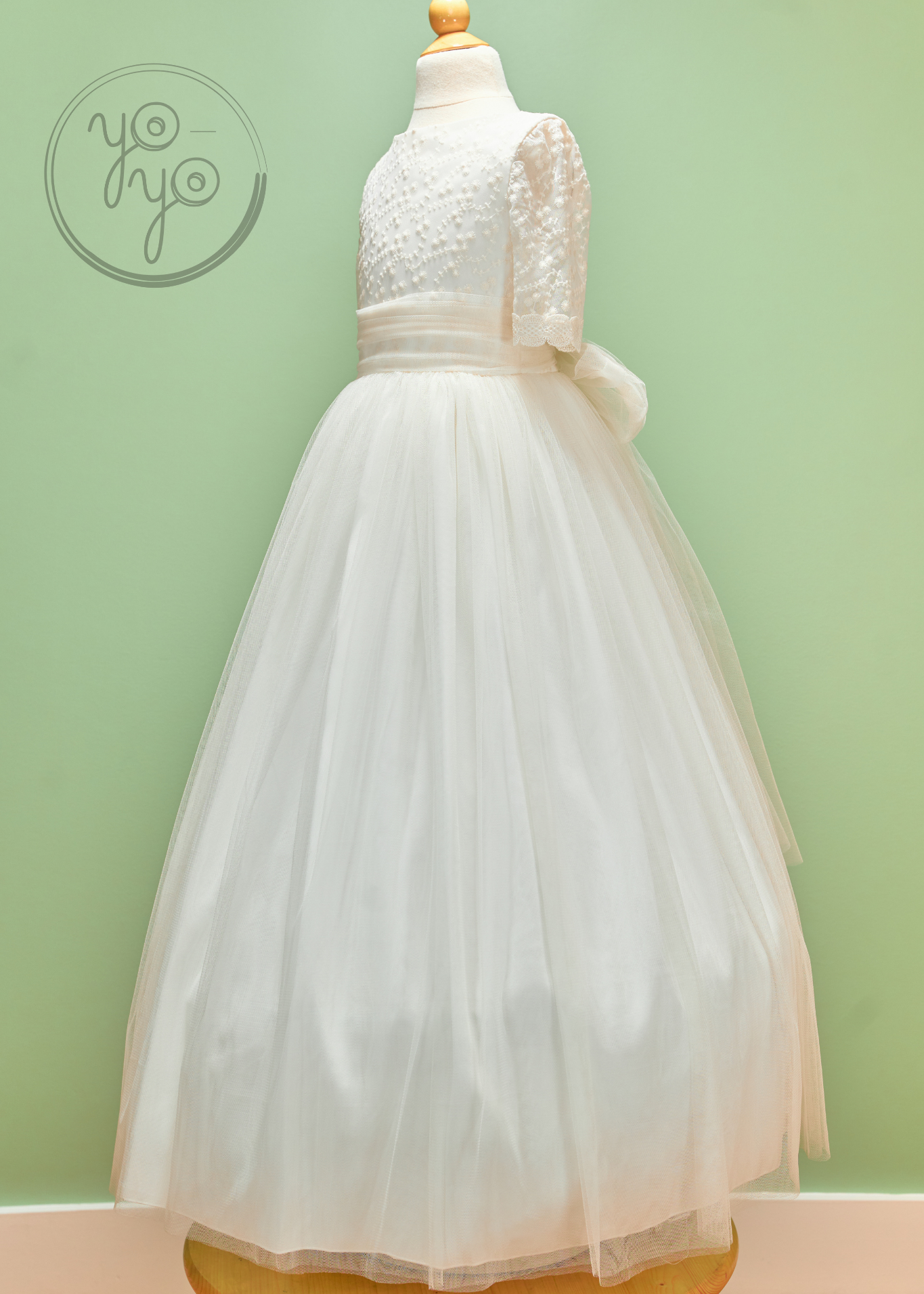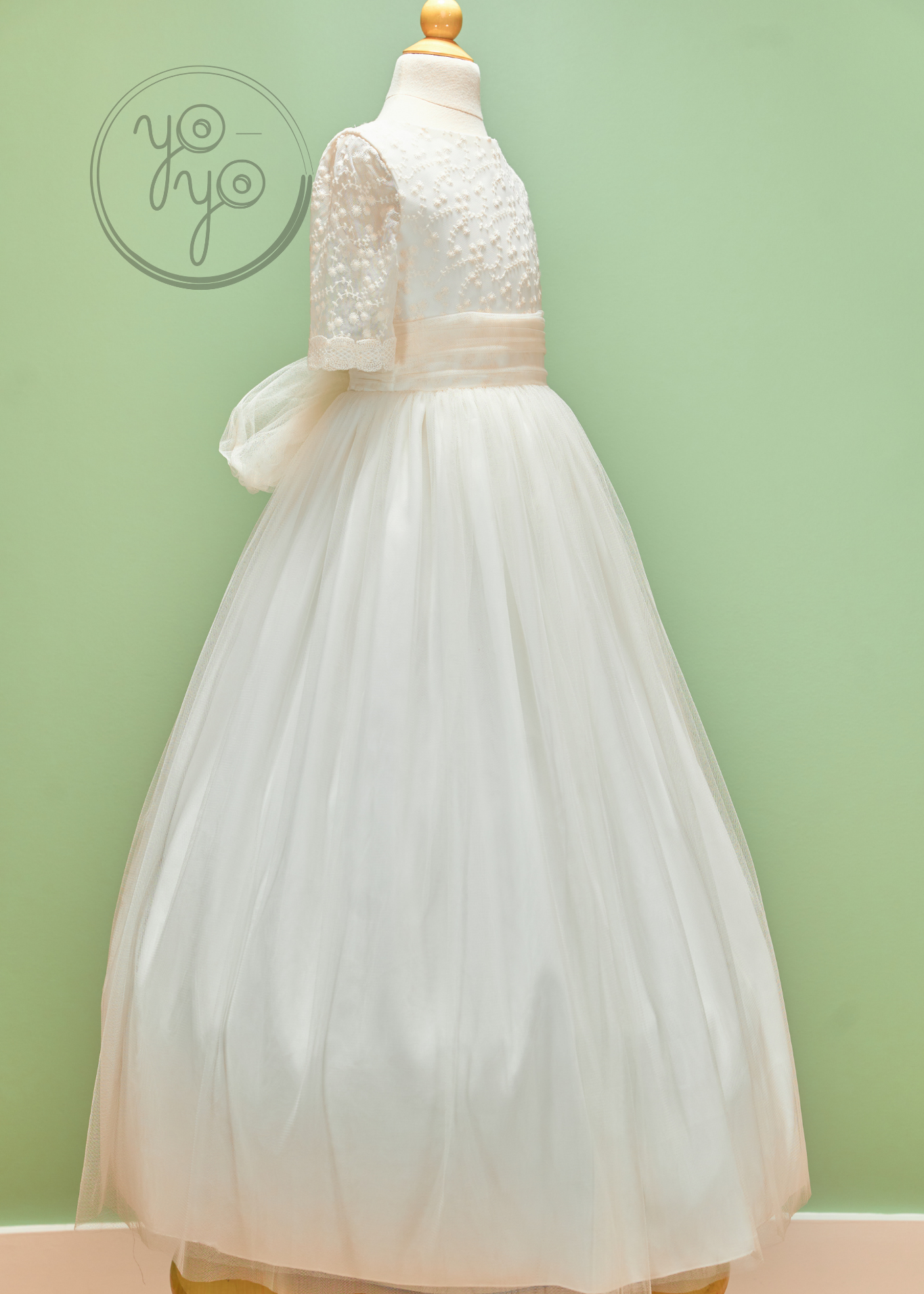 The Azahar First Communion Dress is a dreamy boho-inspired gown designed for girls who want something light, flowy, and unique. Crafted in ultra-soft off-white French tulle, it moves beautifully, creating an airy silhouette full of grace.