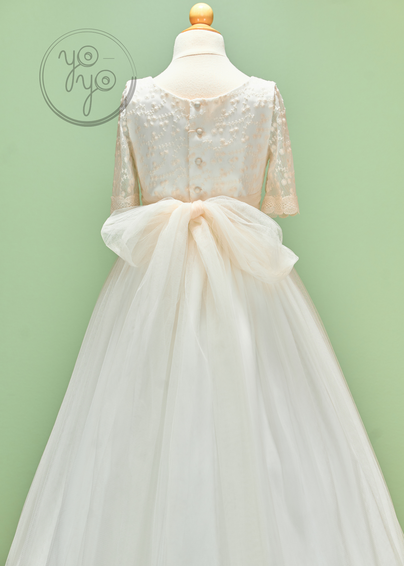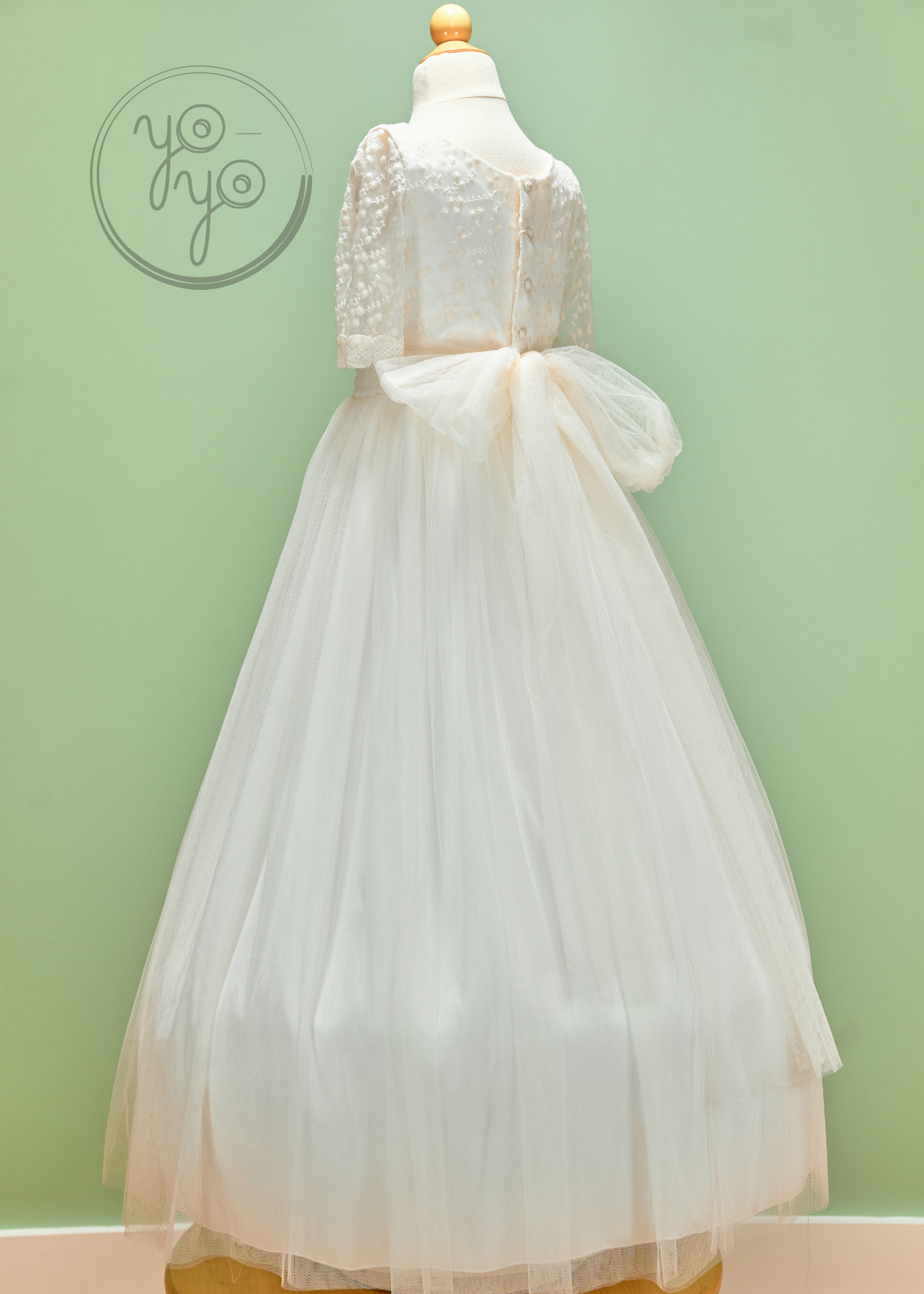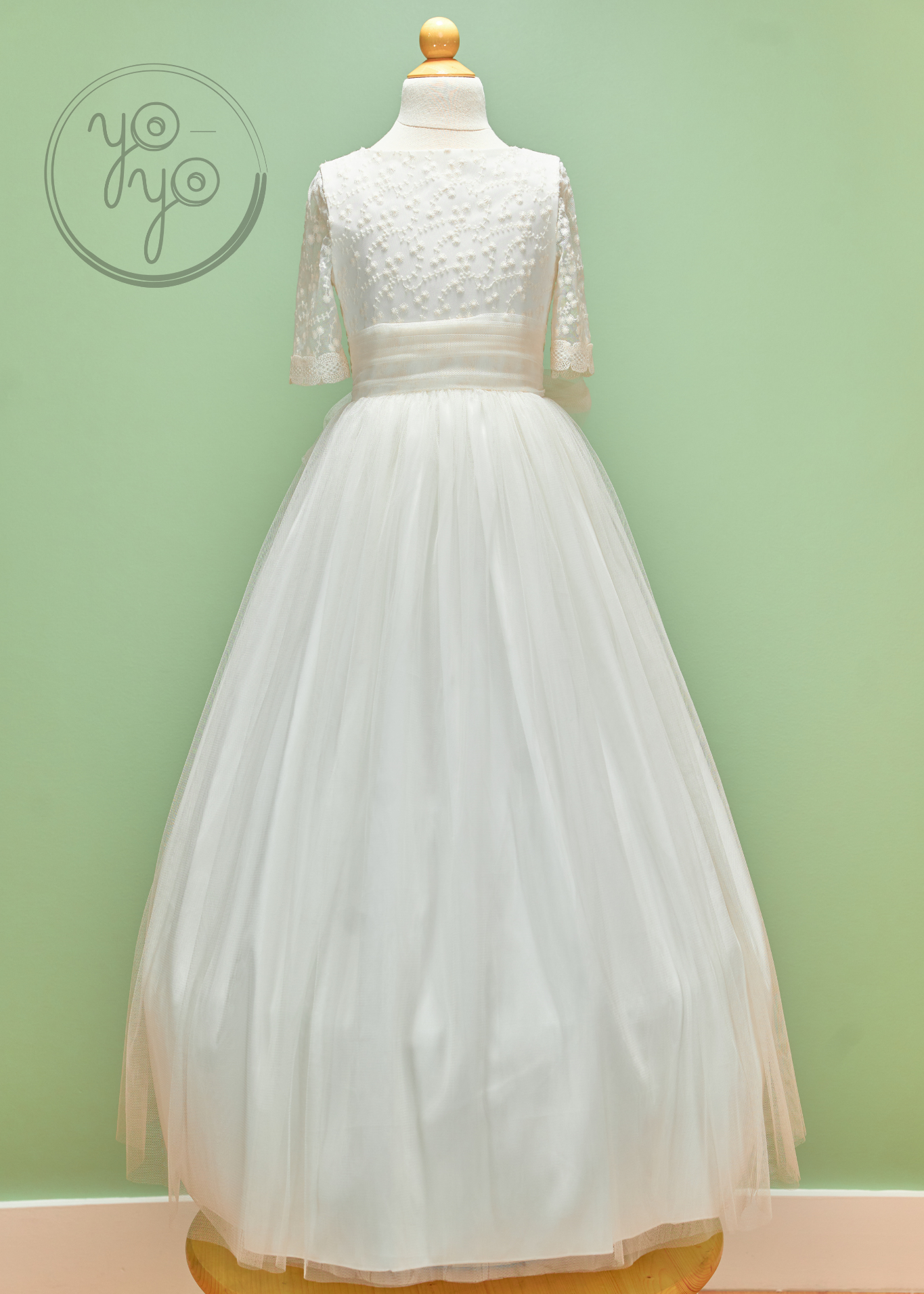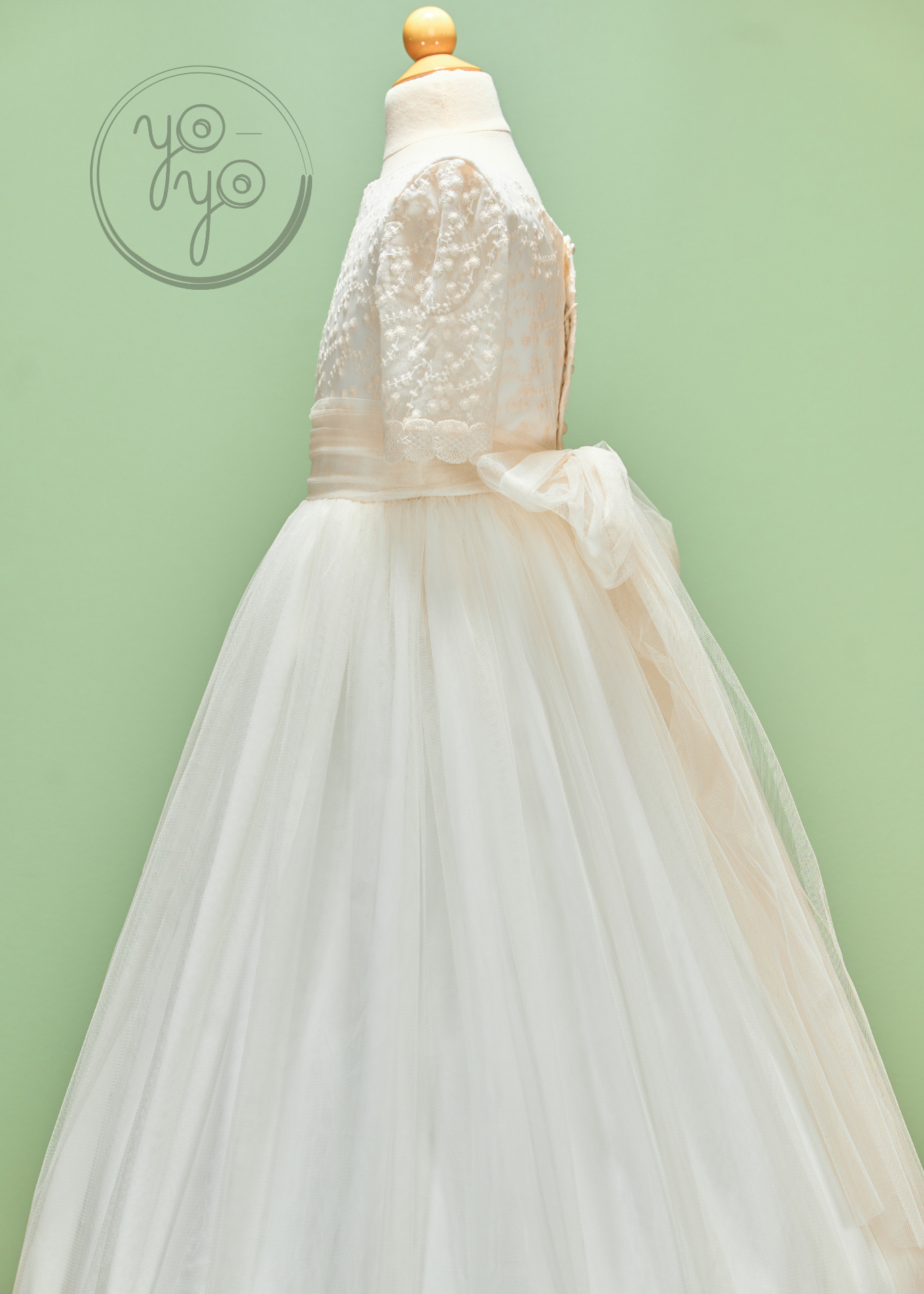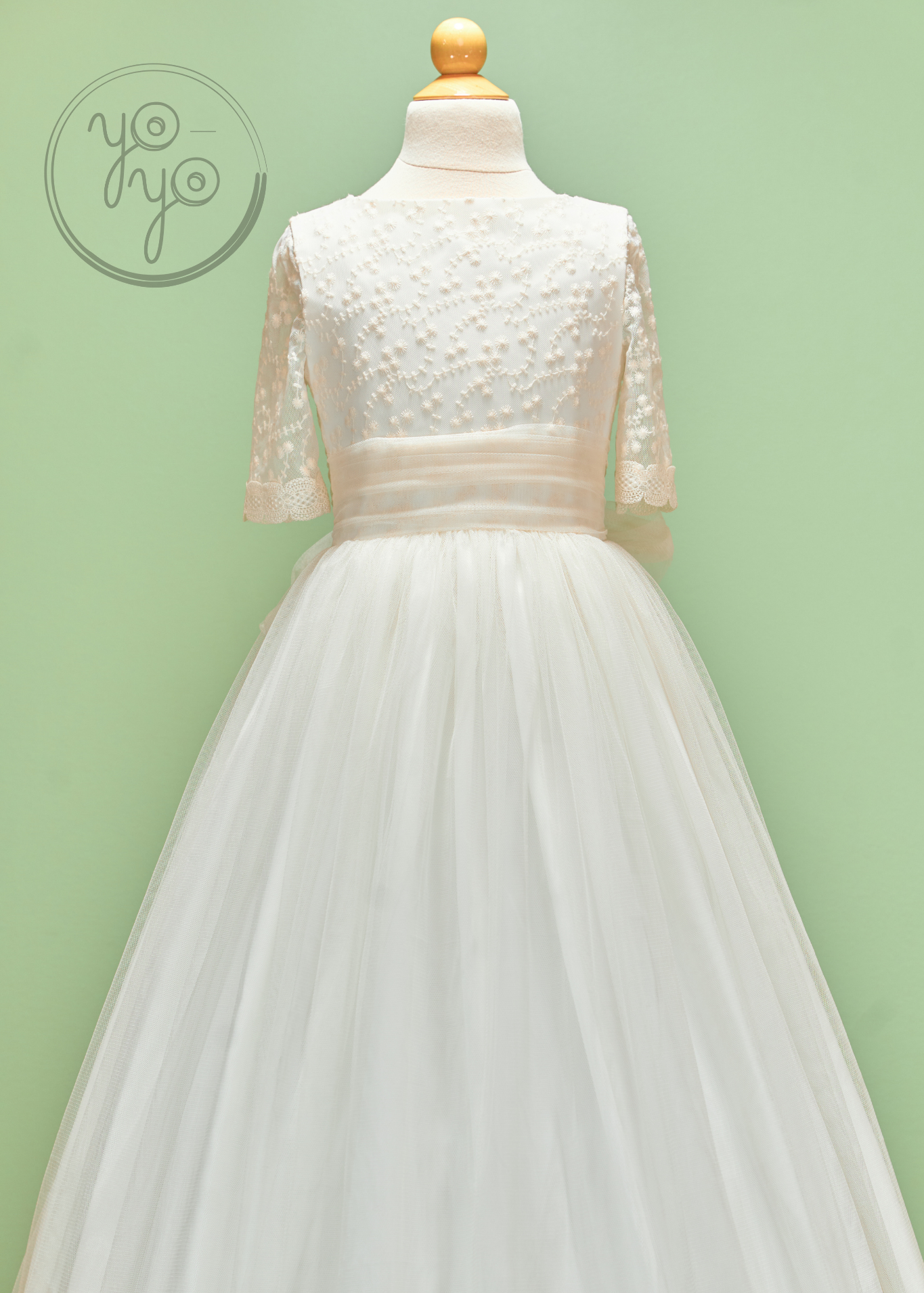 The Azahar First Communion Dress is a dreamy boho-inspired gown designed for girls who want something light, flowy, and unique. Crafted in ultra-soft off-white French tulle, it moves beautifully, creating an airy silhouette full of grace.