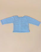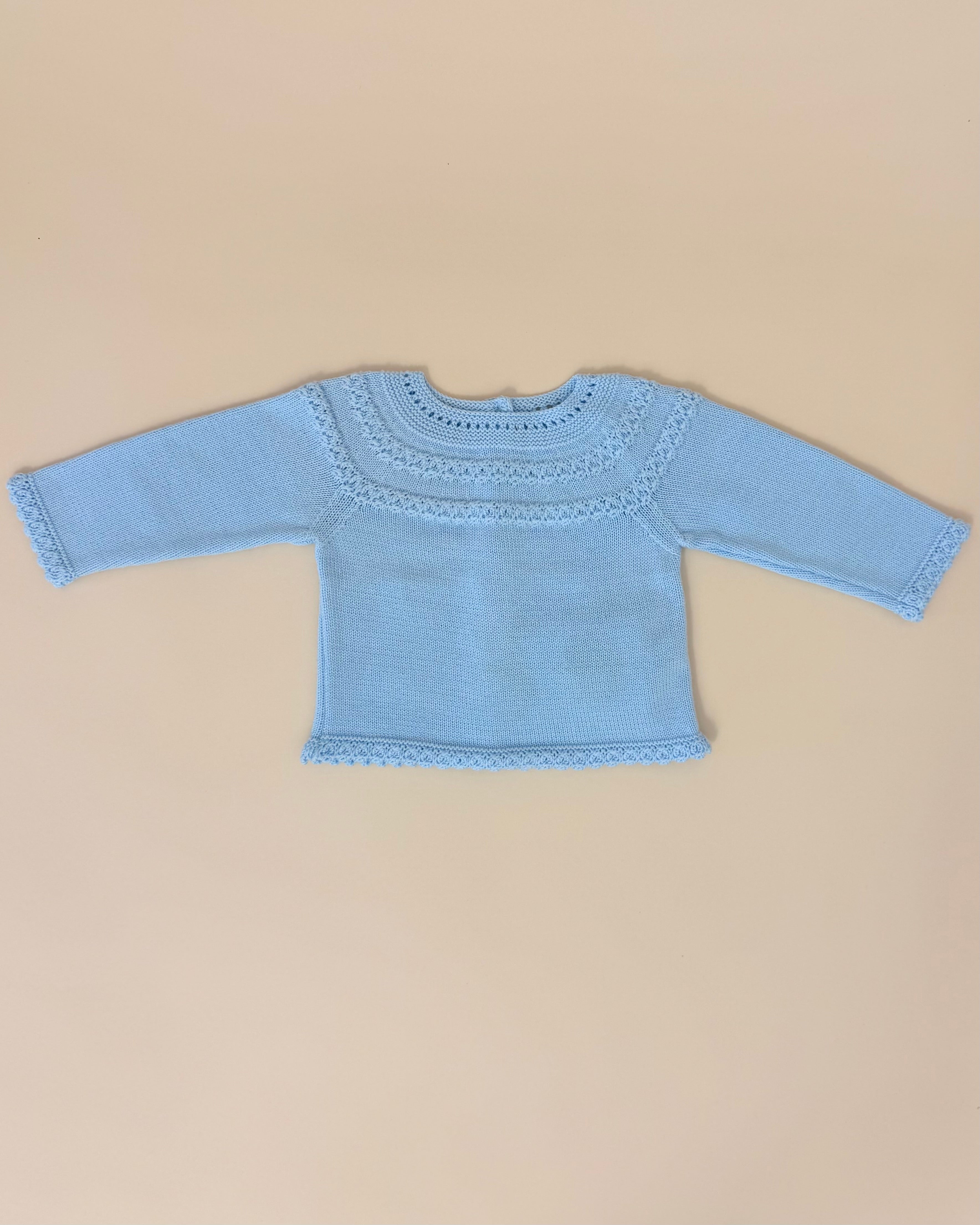 Charming and timeless, this baby blue and white knitted outfit is a beautifully minimalist and traditional choice for welcoming your baby boy with warmth and elegance.
