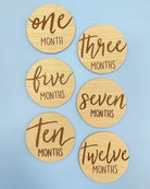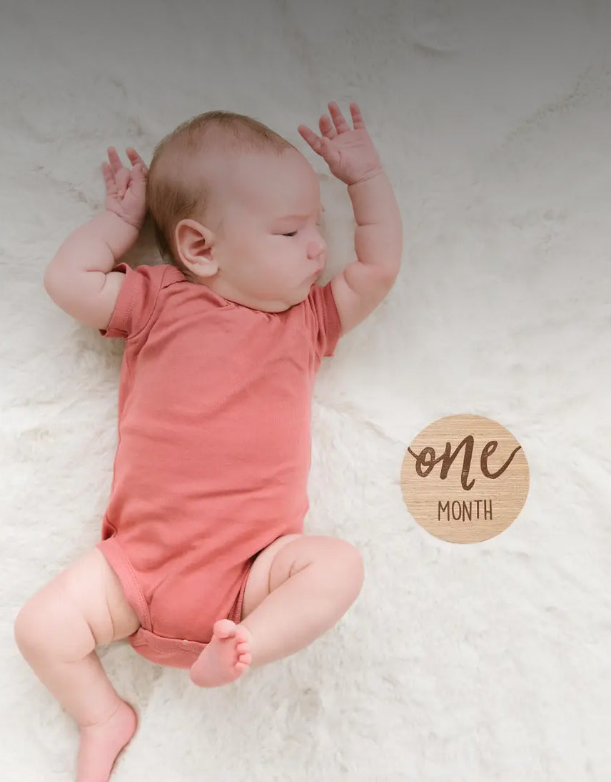 - Includes six double-sided circular wooden photo props for capturing baby's first year and monthly milestone