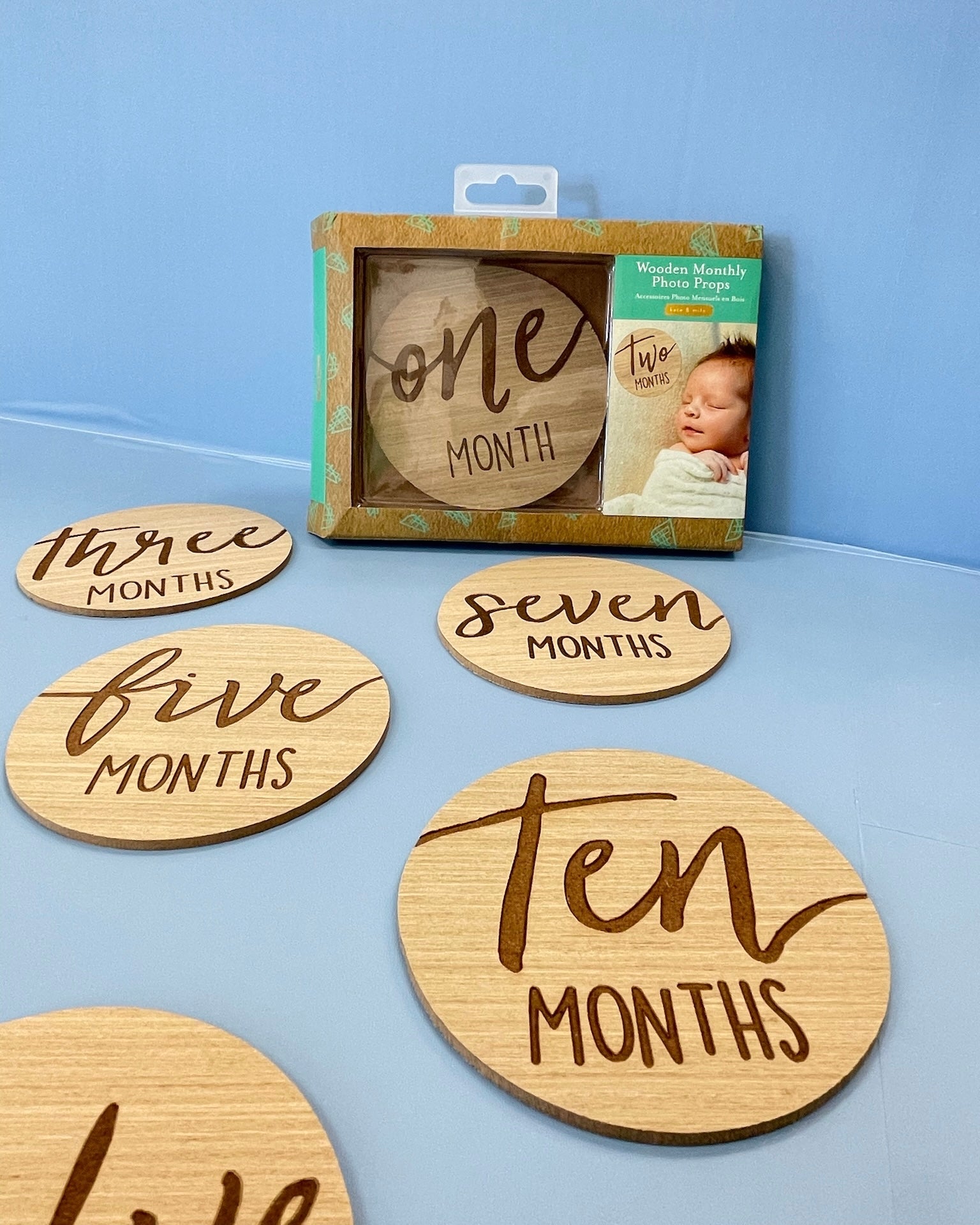 - Use these adorable wooden photo props to capture every baby milestone and watch baby grow during your little one's first year
