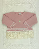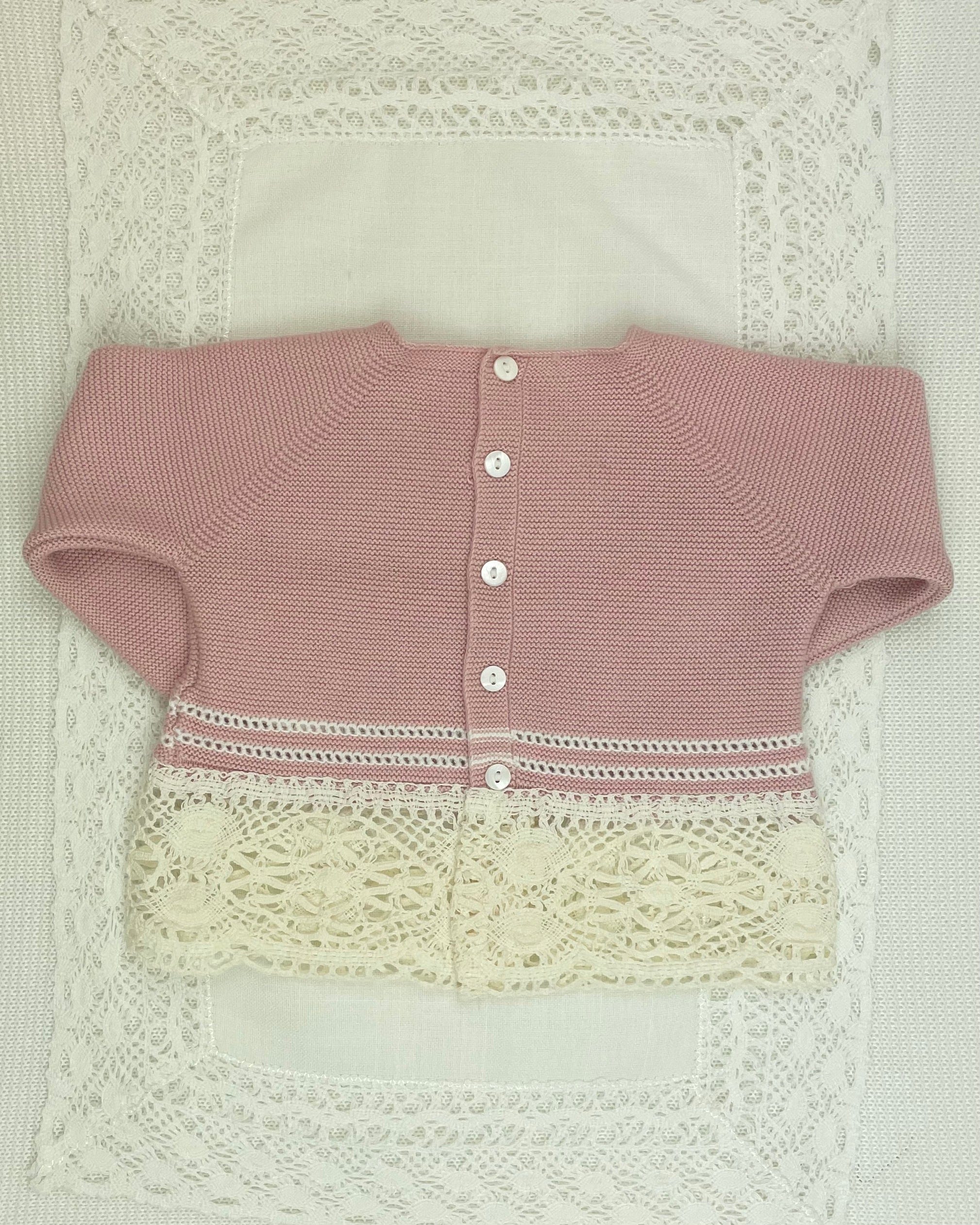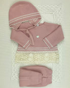 Soft and timeless, this dusty rose knitted outfit is the perfect blend of modern charm and traditional elegance, thoughtfully designed to celebrate your baby girl’s first days in style.