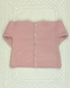 Soft, elegant, and timeless—this dusty rose knitted outfit is the perfect blend of modern charm and traditional craftsmanship, designed to welcome your baby girl in warmth and style.