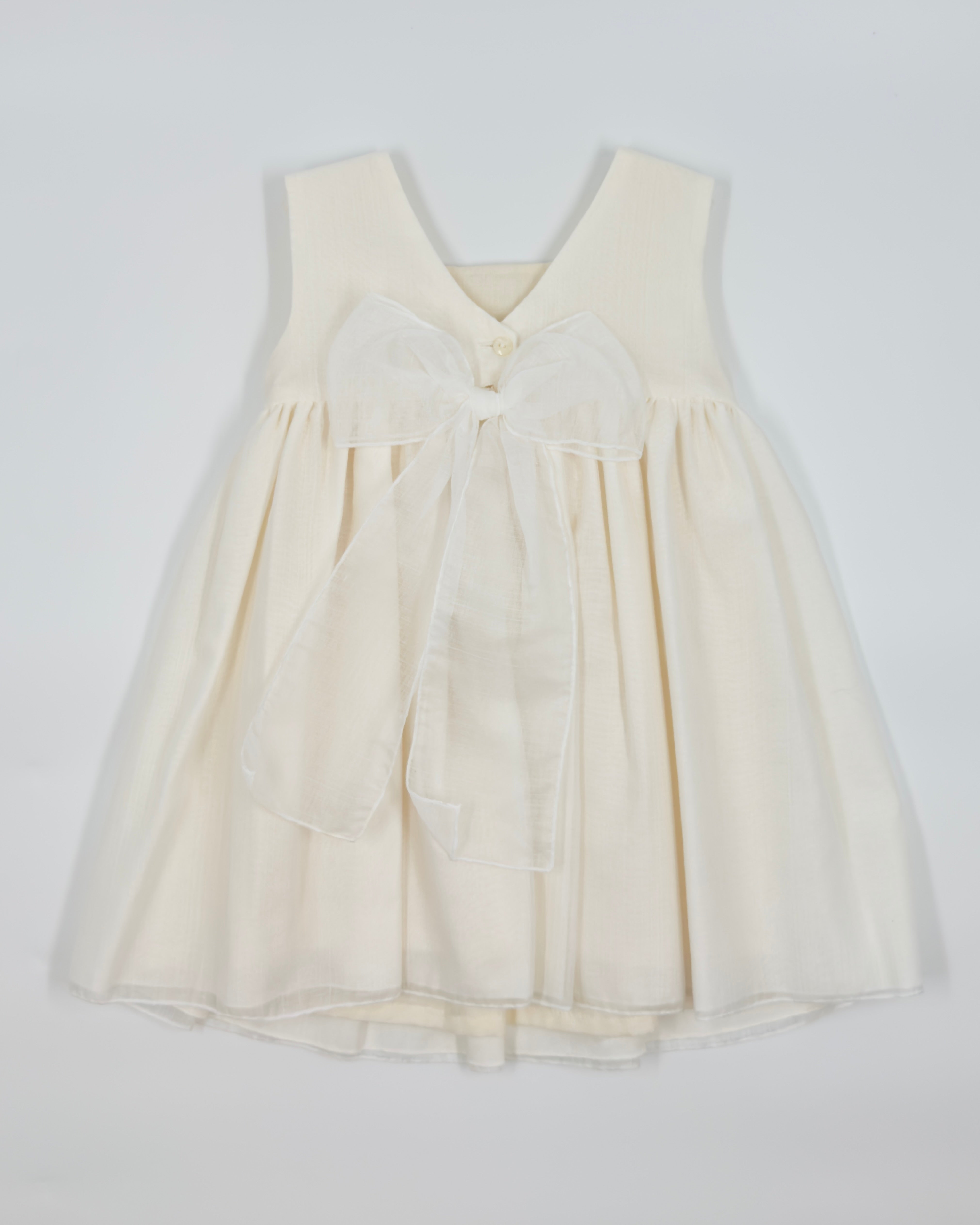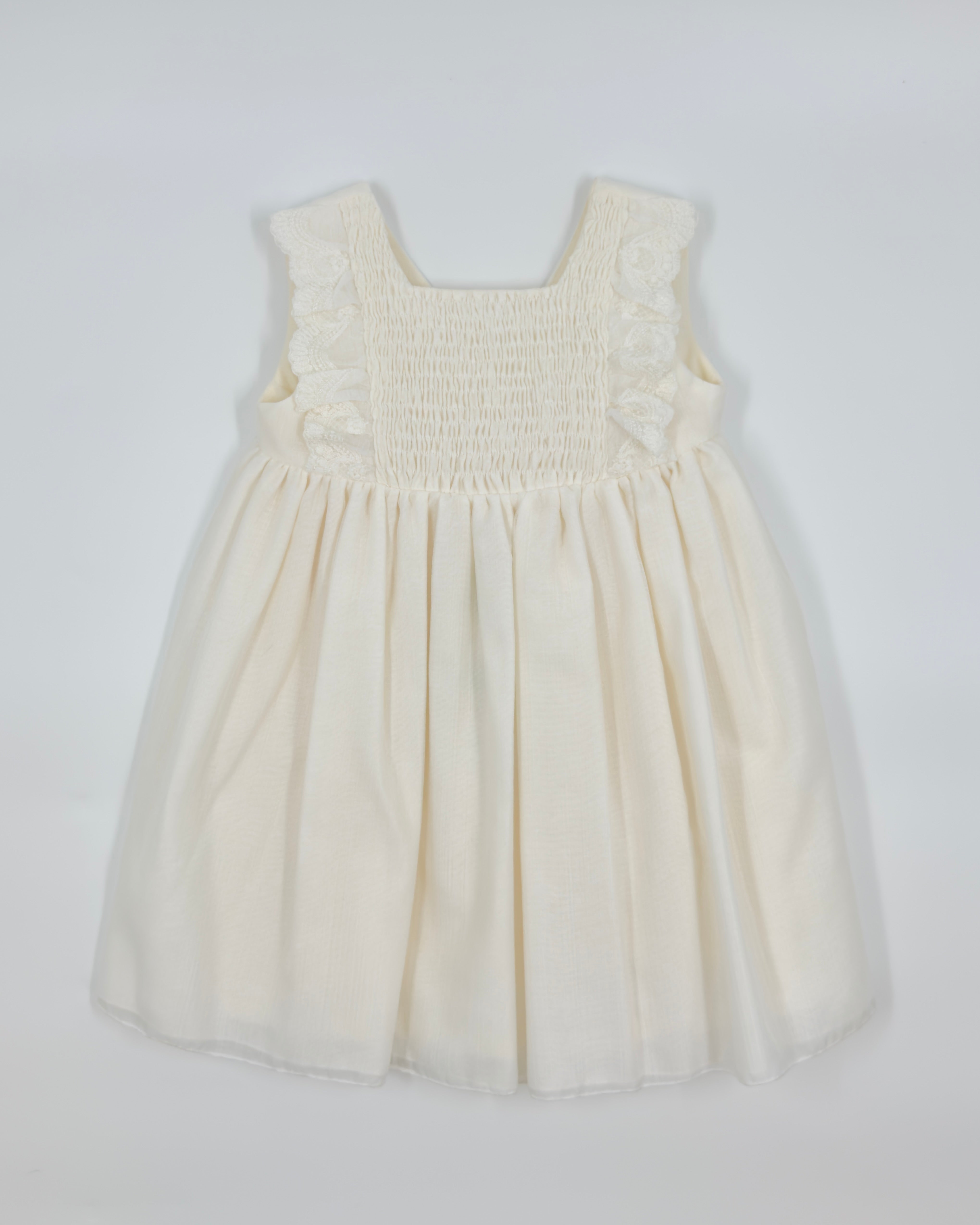 The Emma dress is a timeless and airy design, perfect for warm-weather celebrations. Crafted from soft off-white English muslin, it features a sleeveless silhouette and a delicately hand-smocked bodice that adds a touch of classic charm. Lightweight and graceful, Emma is ideal for birthdays, christenings, and other special occasions.