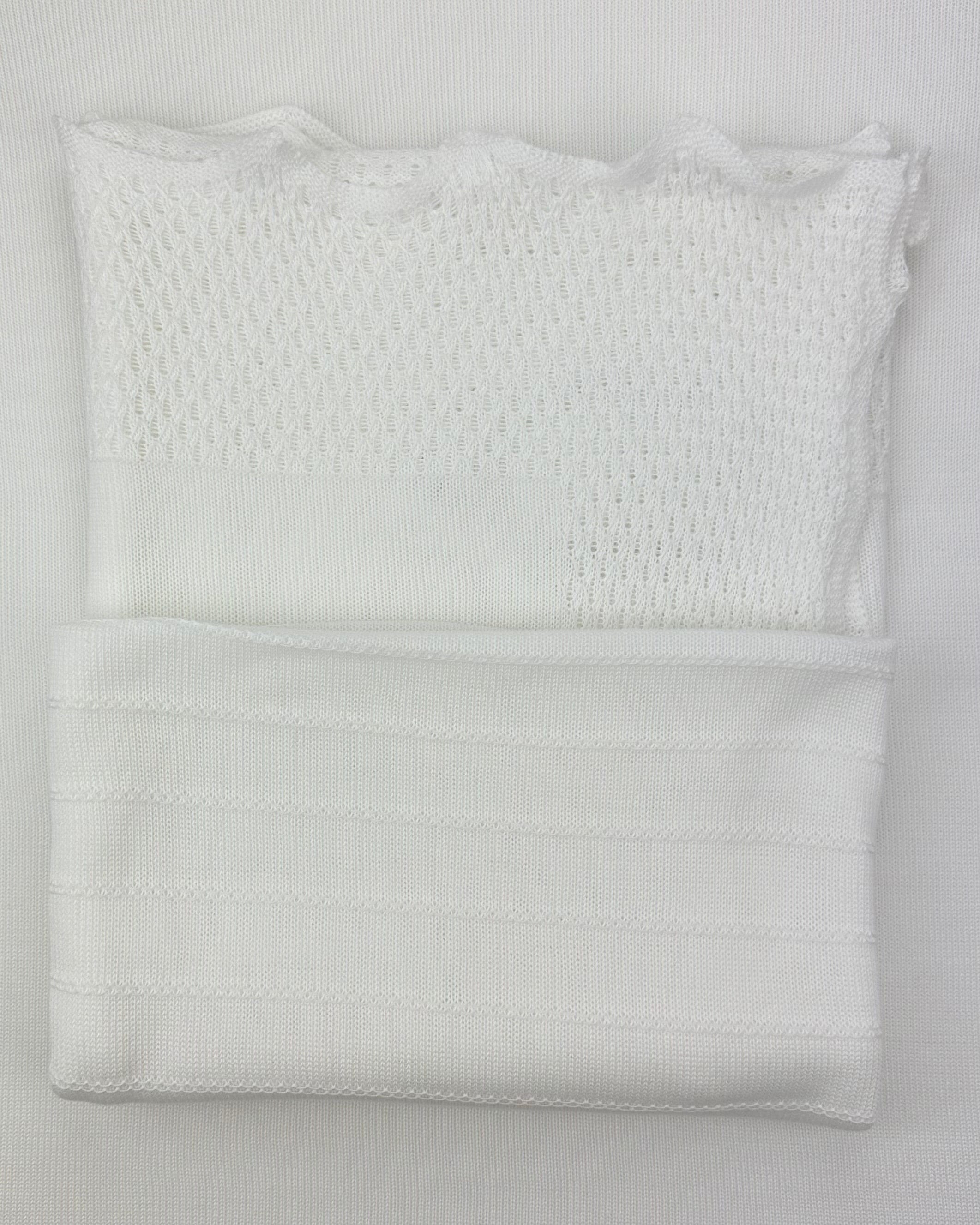 Soft, elegant, and timeless—our white knitted baby blanket is a beautiful essential for your little one’s first moments.