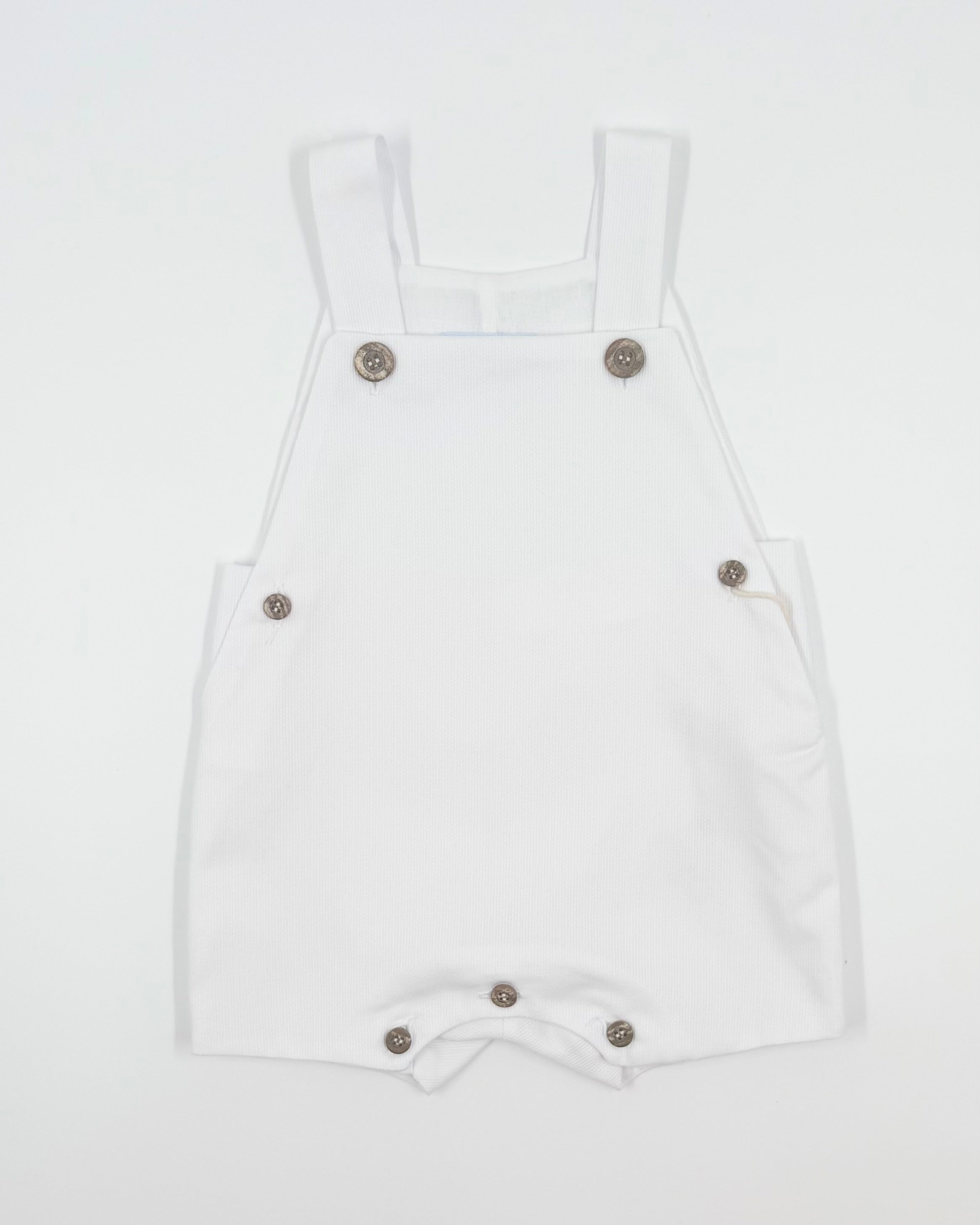 This charming baby boy romper is crafted in a soft, waffle-textured cotton fabric in an elegant white color. Designed with both style and practicality in mind, it features convenient buttons at the bottom for easy diaper changes. Made in Spain with exceptional craftsmanship, it’s a timeless piece ideal for everyday comfort or special outings. A gentle and breathable choice for your little one.