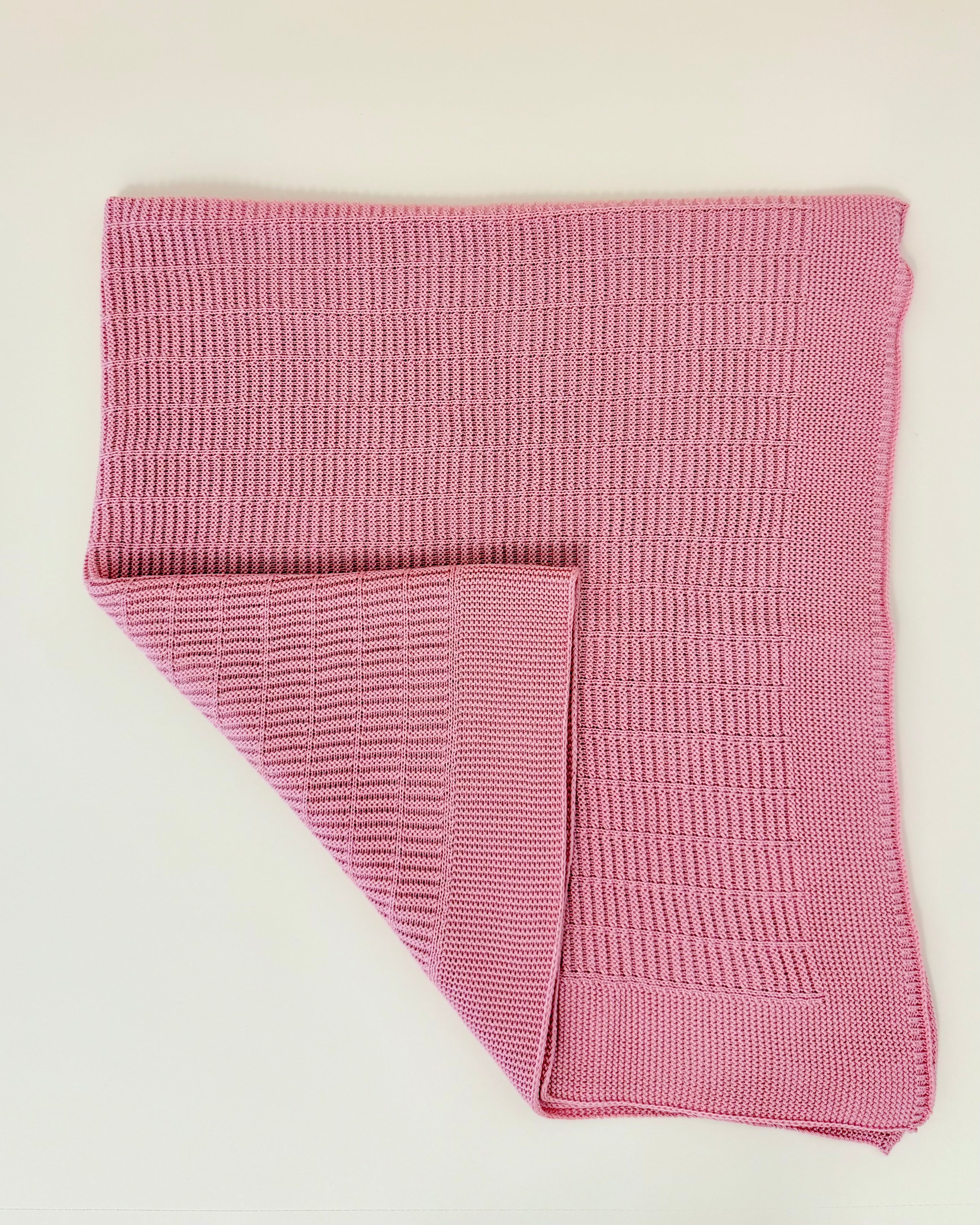 Soft, feminine, and timeless, this dusty rose knitted blanket is a beautiful essential for baby girls. Expertly handcrafted in Spain, it’s made from a cozy and breathable blend of 50% cotton and 50% acrylic—perfect for year-round comfort.