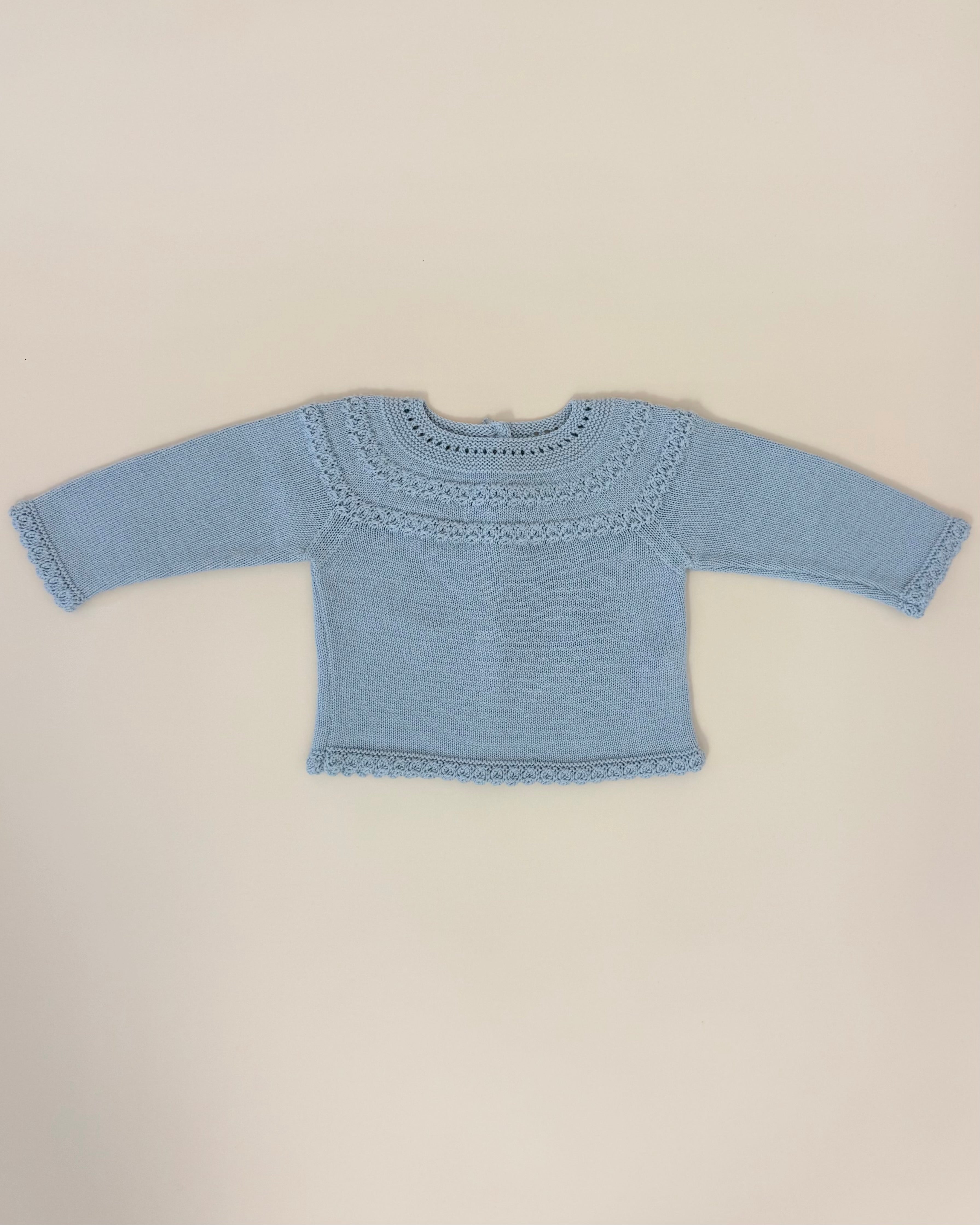 Elegant and understated, this grey knitted outfit is a perfect minimalist and traditional choice for welcoming your baby boy with warmth and style.
