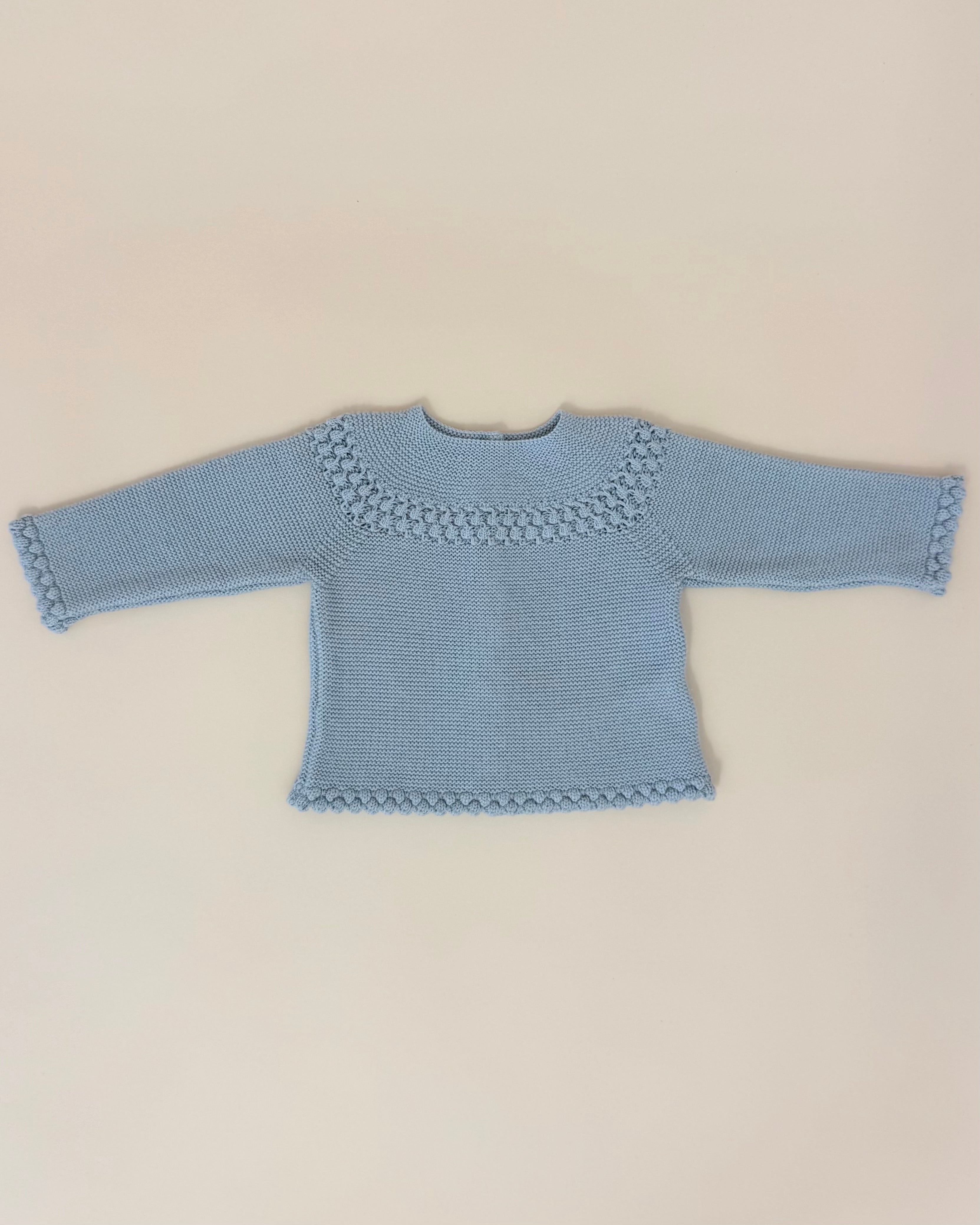 Modern simplicity meets timeless tradition in this grey and white knitted outfit—an elegant, gender-neutral choice for your baby’s first moments.