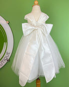 A white satin sash. The dress must be purchased separately.