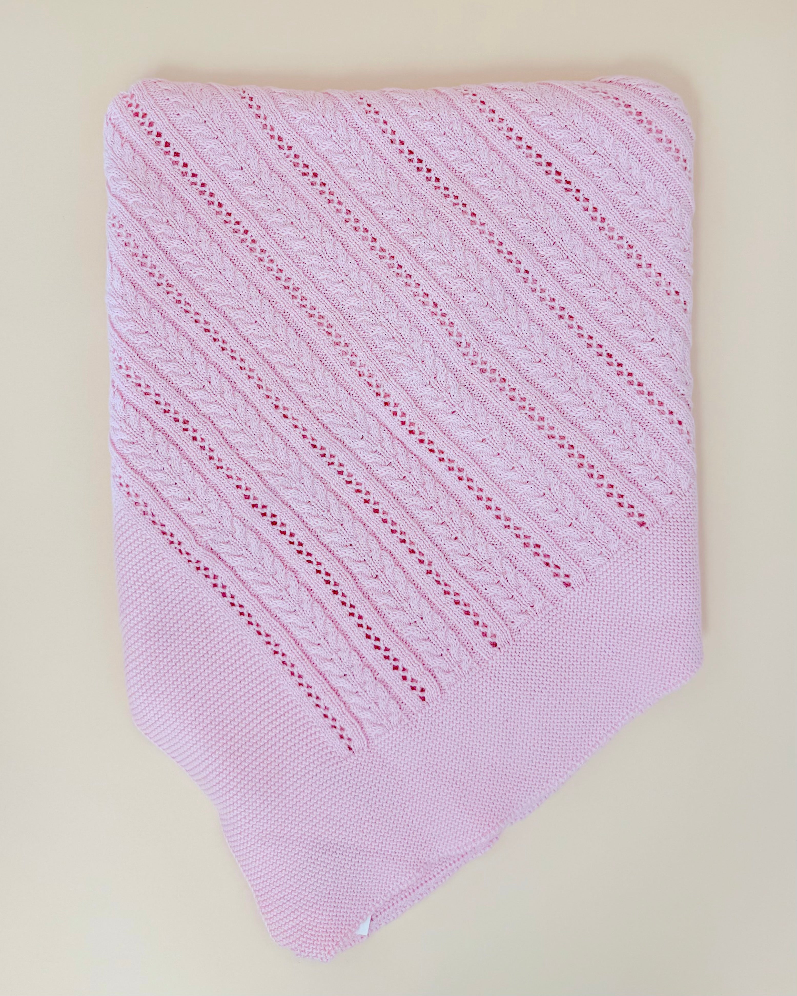 Sophisticated and cozy, this steel blue baby blanket features a classic cable knit design that adds texture and timeless charm. Meticulously handcrafted in Portugal, it’s made from soft, breathable yarn that keeps your little one warm and comfortable throughout the day.