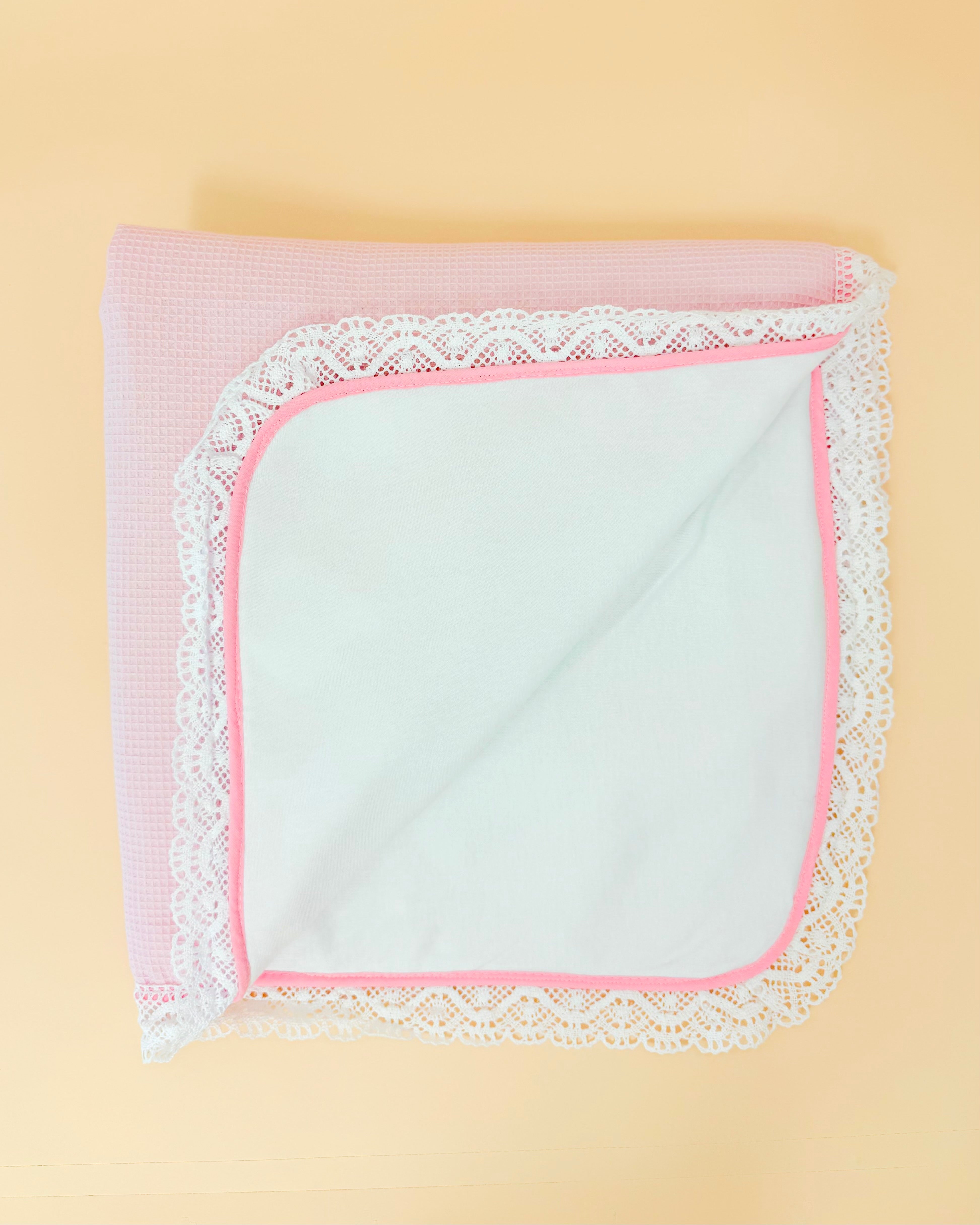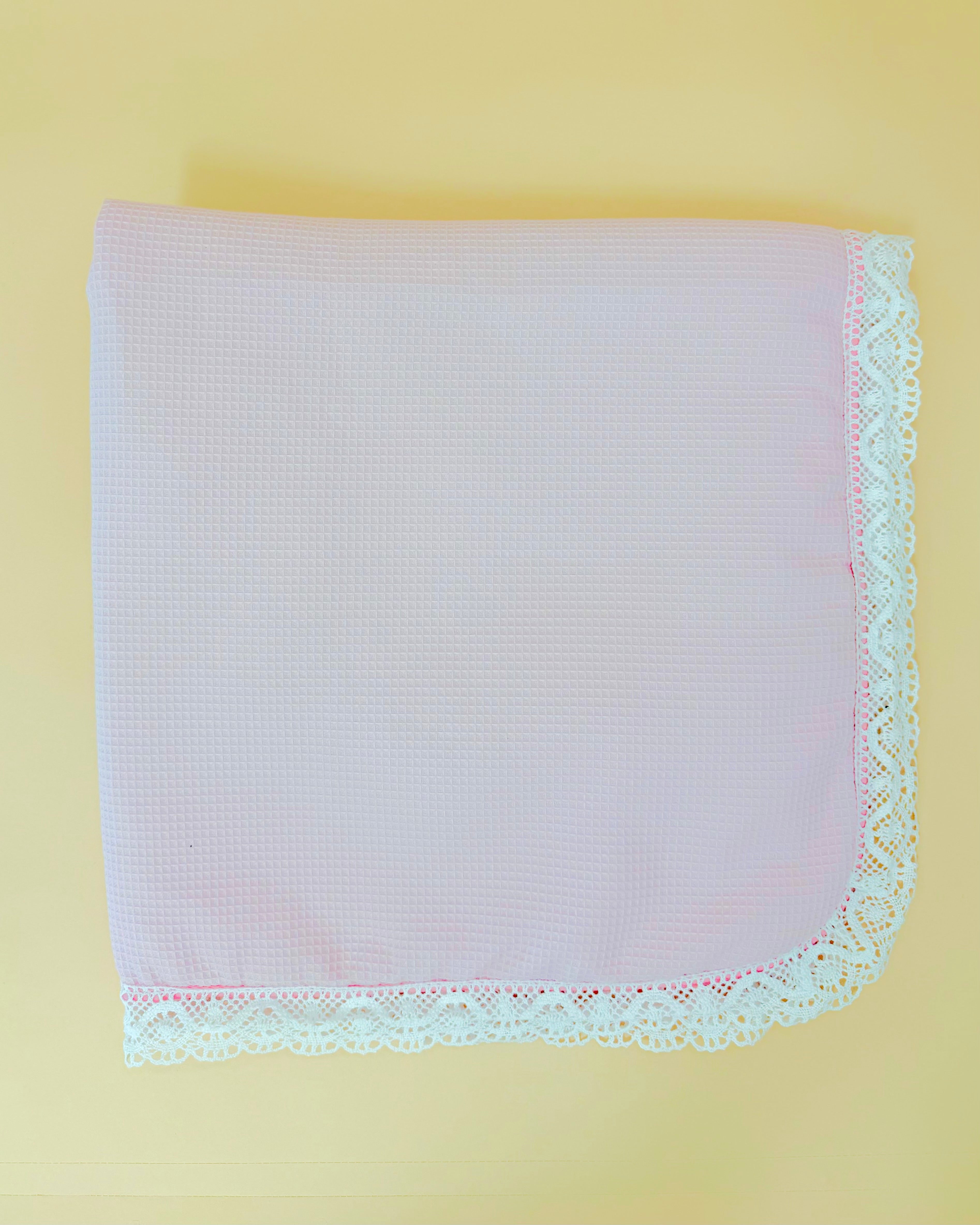 Soft, delicate, and timeless, this pink piqué blanket is a beautiful choice for baby girls. Expertly made in Portugal from 100% cotton, it offers a lightweight and breathable feel—perfect for warmer days or layering in cooler weather.